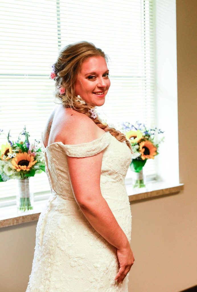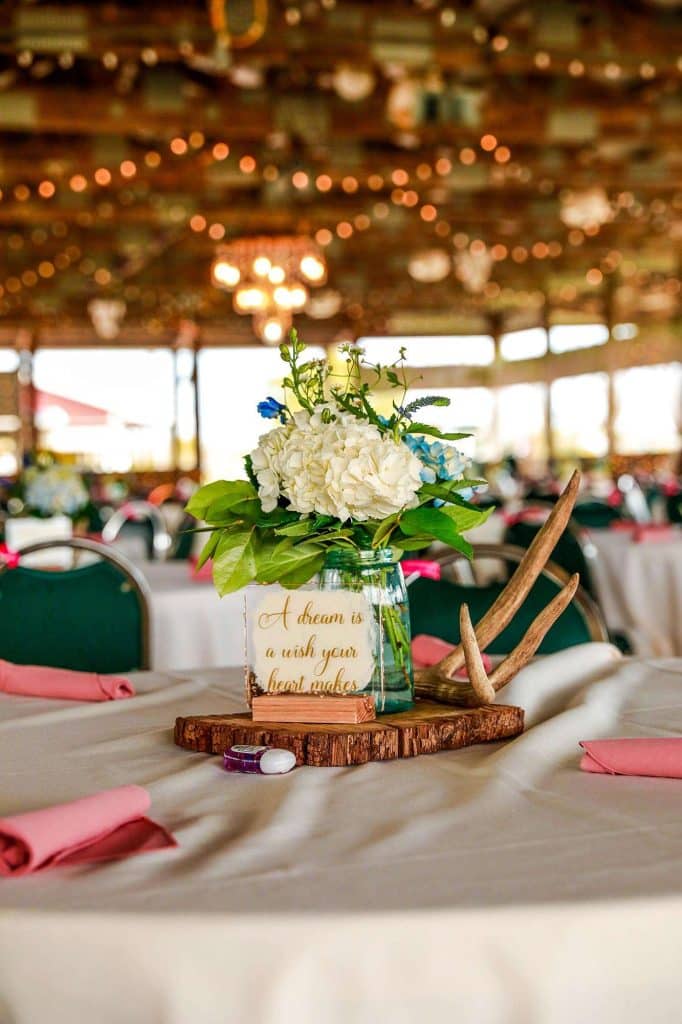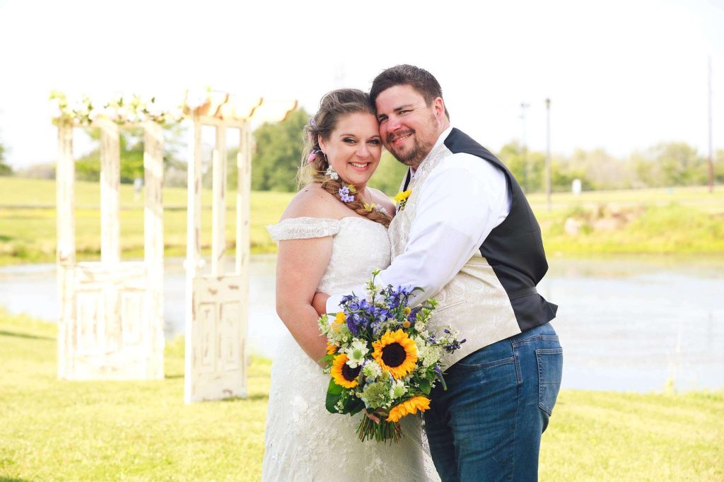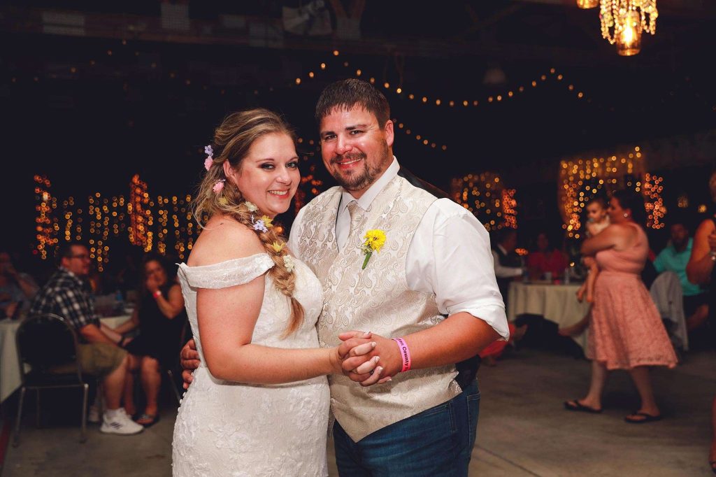 While planning their big day, Bethany and Justin stopped by the wedding show at Washington County Fair Park. They also decided to host their wedding in one of the barns there. “The theme was country and rustic, with touches of Disney. Colors were dusty rose, ivory, and wildflowers.”