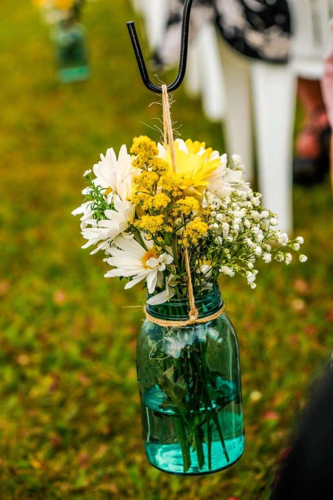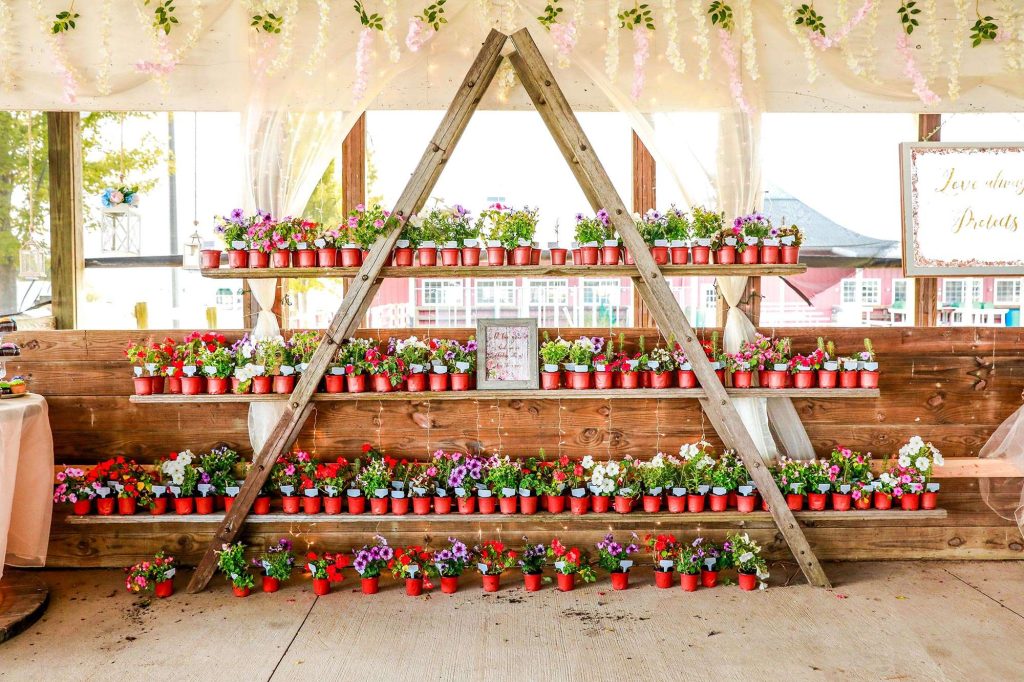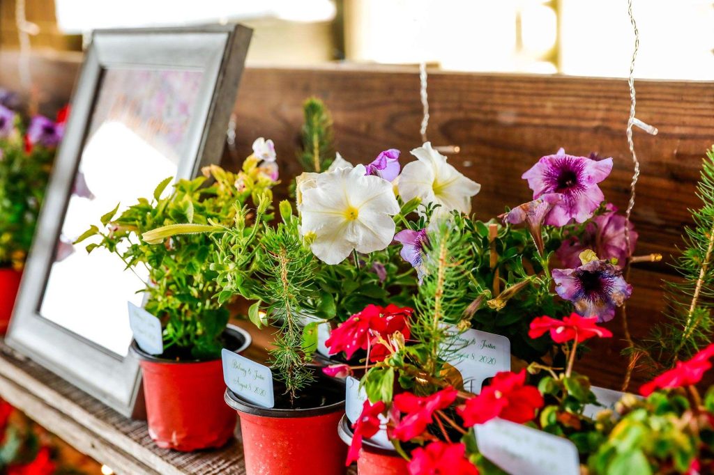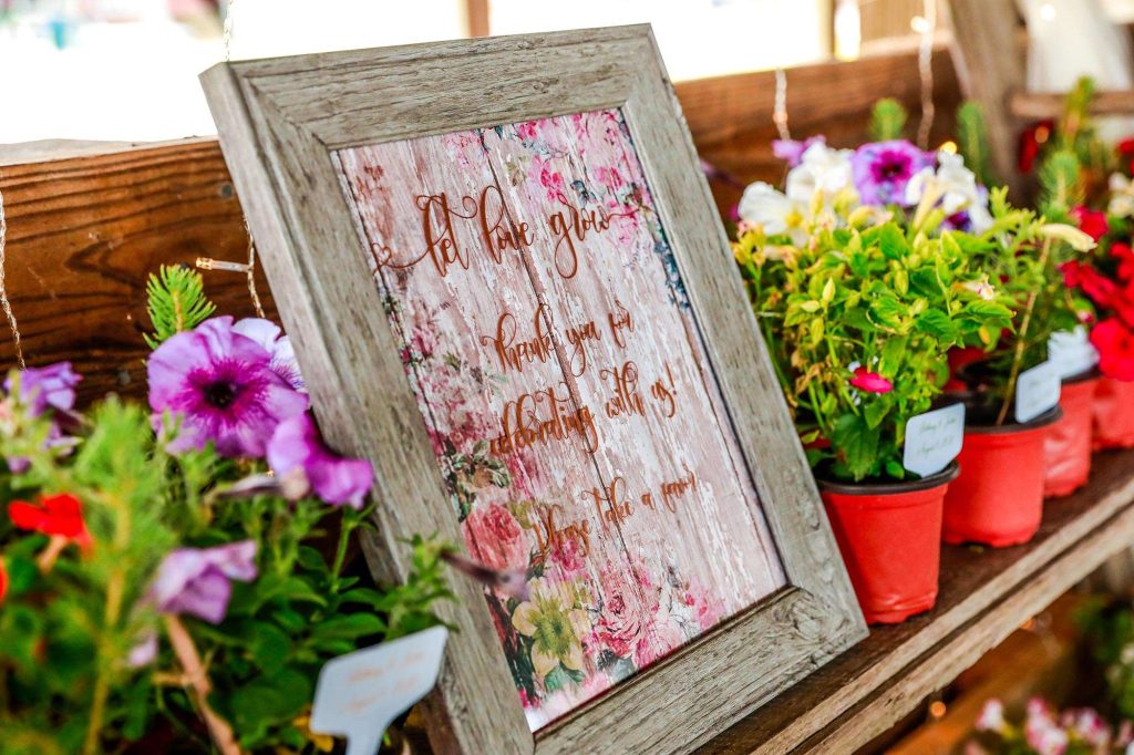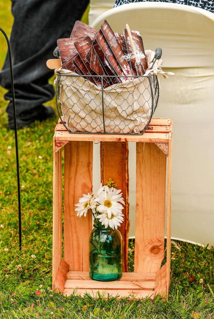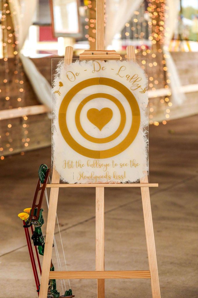 Most, if not all, of the decorations at Justin and Bethany’s wedding were made with DIY love. “Since we chose the sheep and swine barn at Washington County Fair Park, it meant we needed to bring in all of the decorations,” Bethany says. “It also meant I could make my vision a reality. Both Justin and I are DIY-ers, so this was just another project to tackle.”