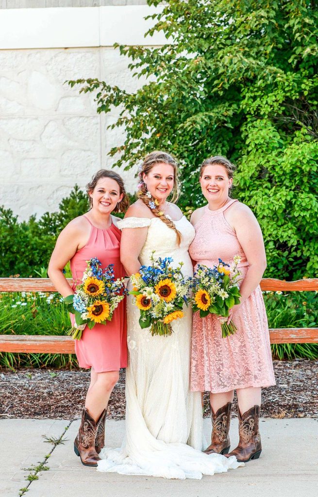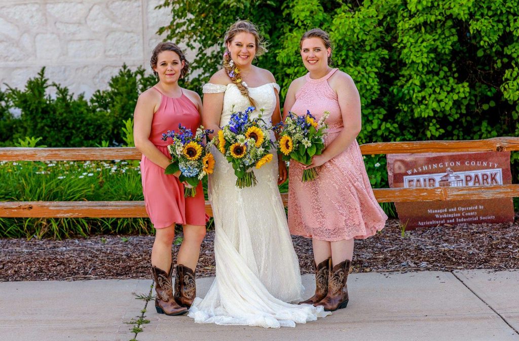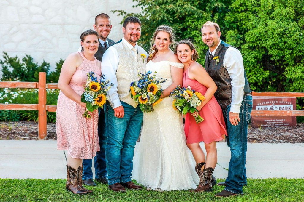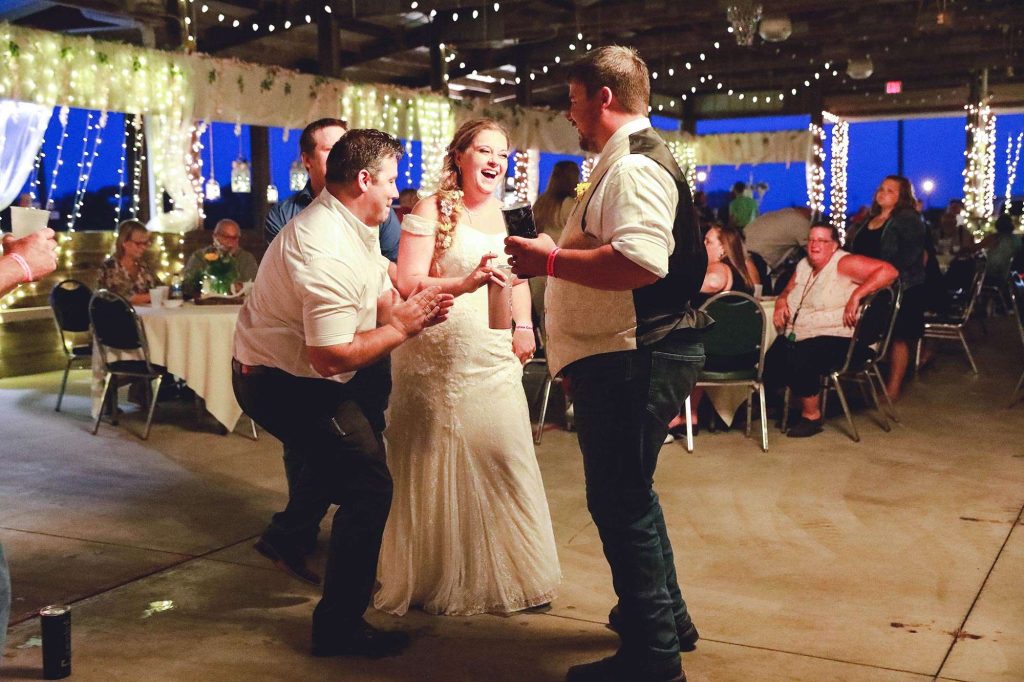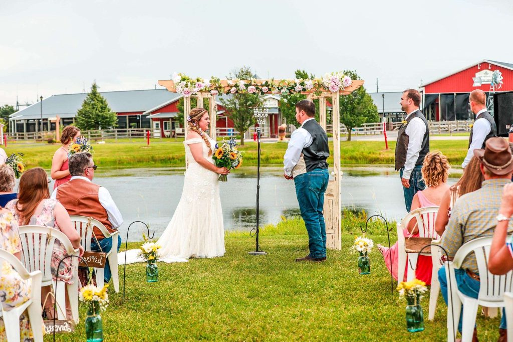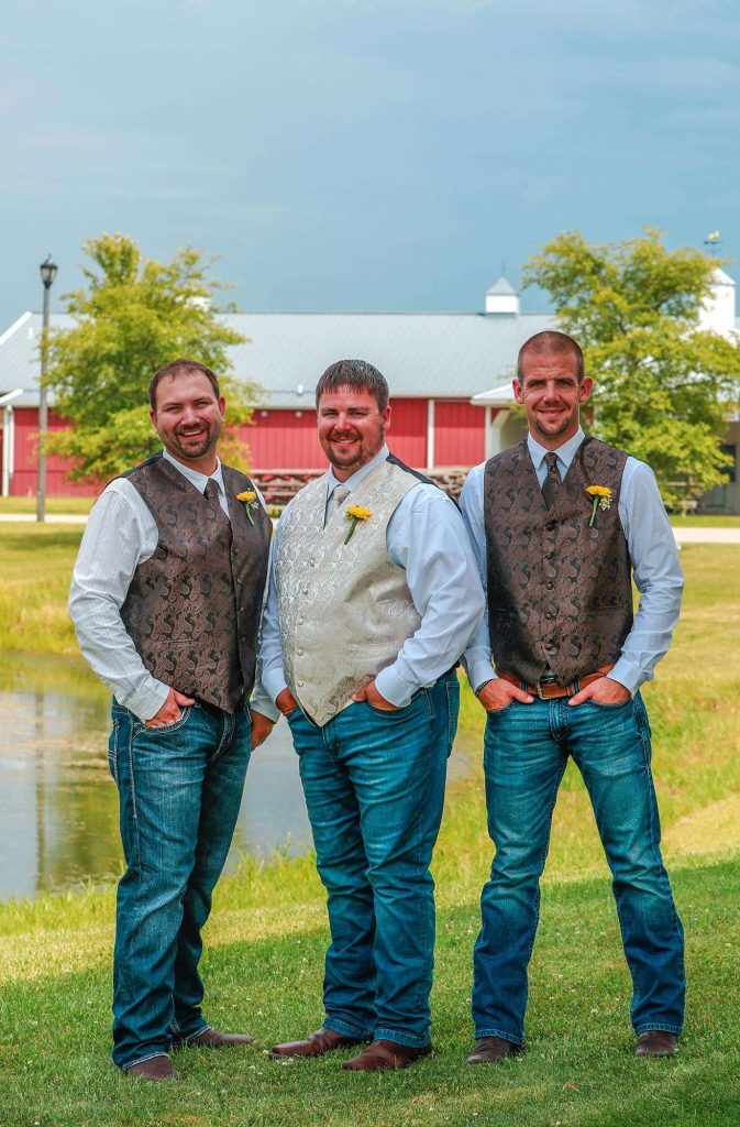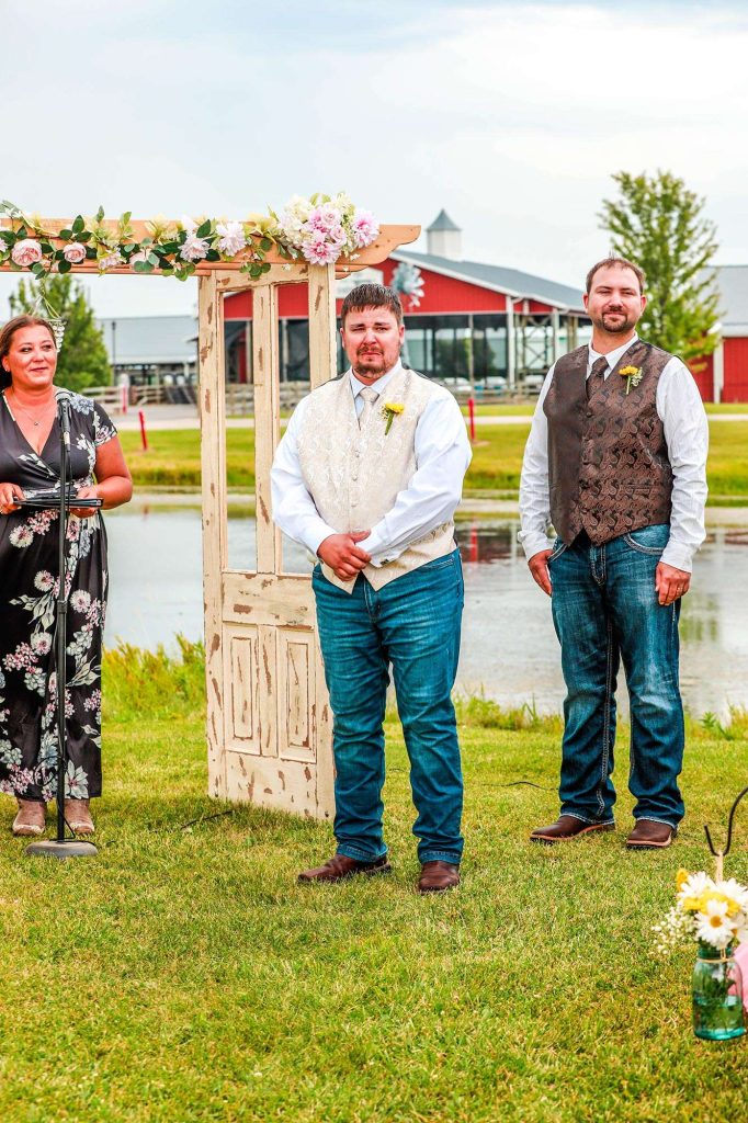 Both the ceremony and reception were held at Washington County Fair Park. The bride and groom said “I do” alongside one of the retention ponds. “It was a casual ceremony,” Bethany describes. “All the guys were in boots and jeans, and myself and the girls were in boots too.”