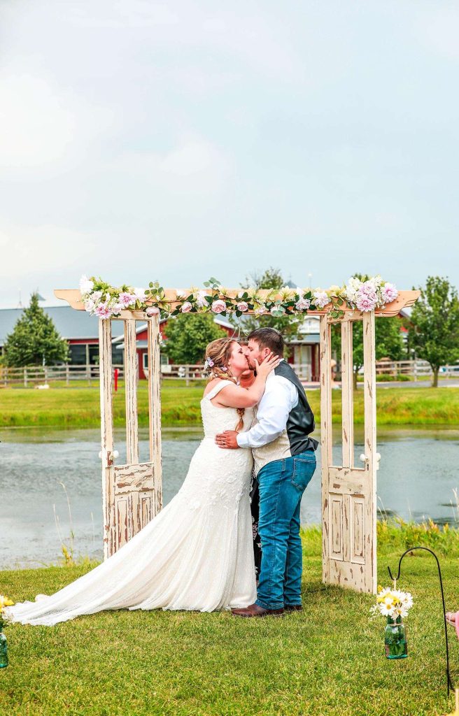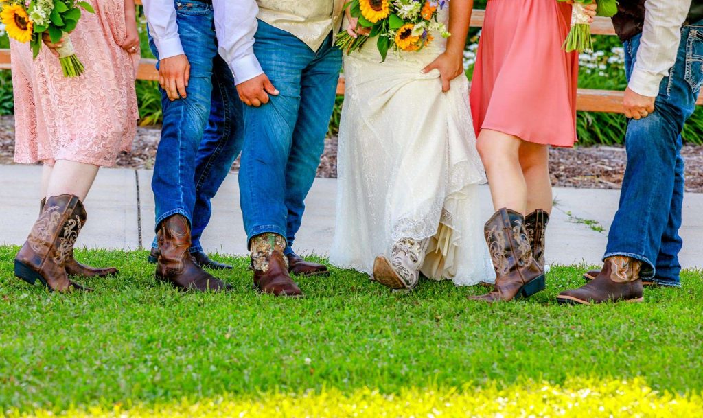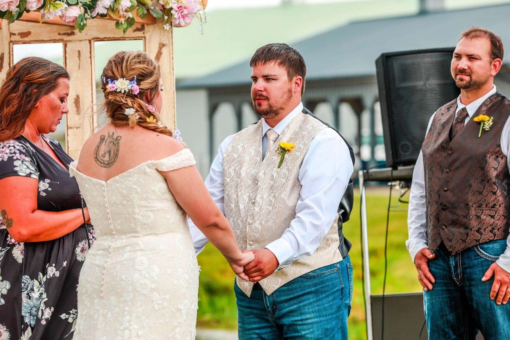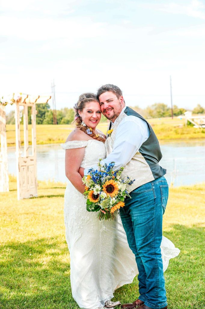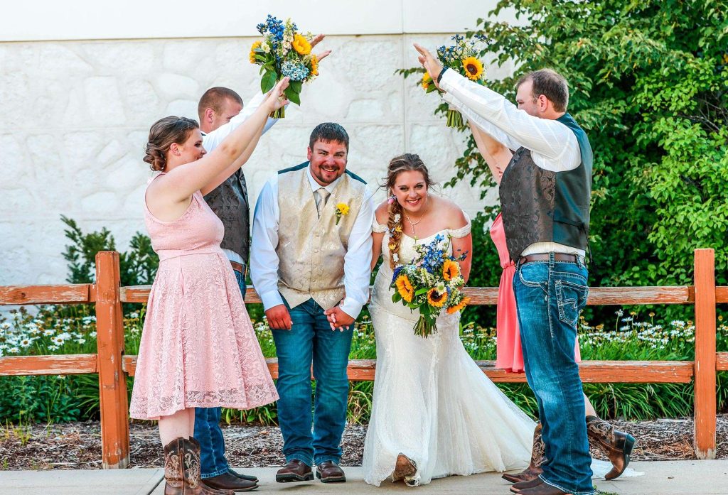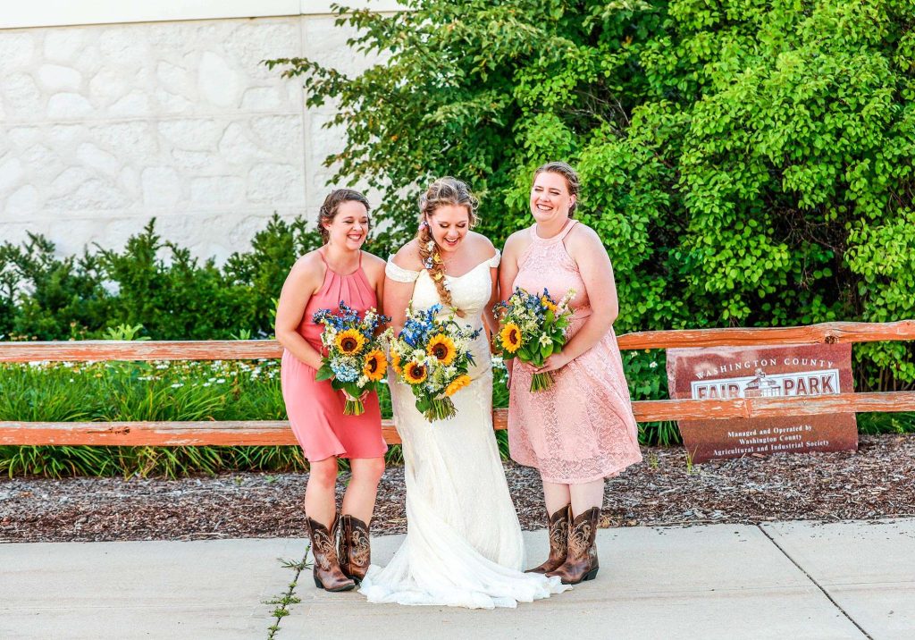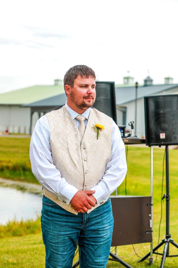 Both the ceremony and reception were held at Washington County Fair Park. The bride and groom said “I do” alongside one of the retention ponds. “It was a casual ceremony,” Bethany describes. “All the guys were in boots and jeans, and myself and the girls were in boots too.”
