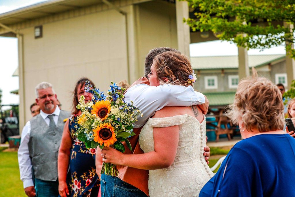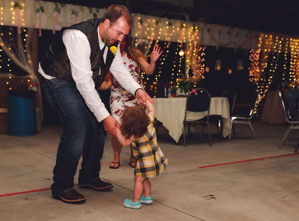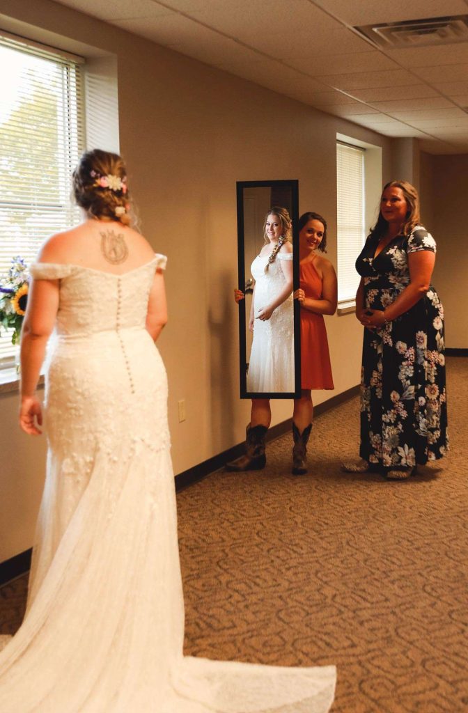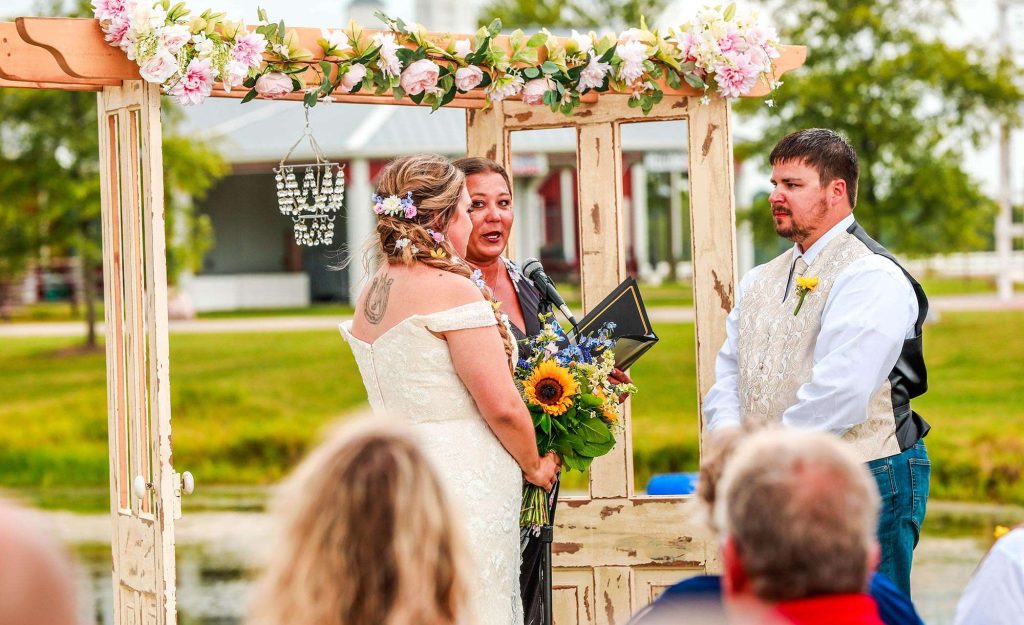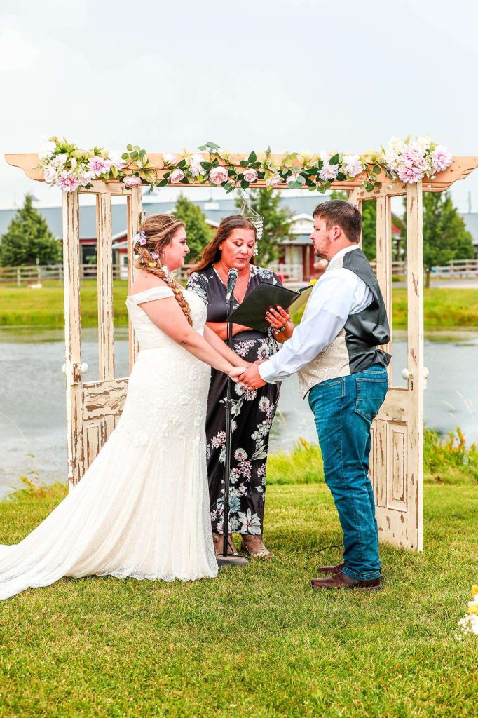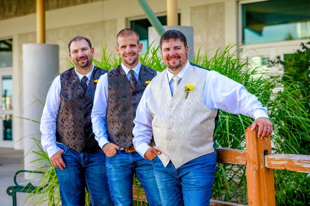 Both the ceremony and reception were held at Washington County Fair Park. The bride and groom said “I do” alongside one of the retention ponds. “It was a casual ceremony,” Bethany describes. “All the guys were in boots and jeans, and myself and the girls were in boots too.”