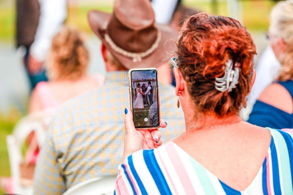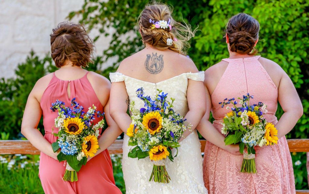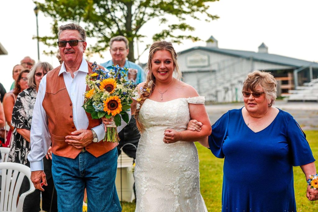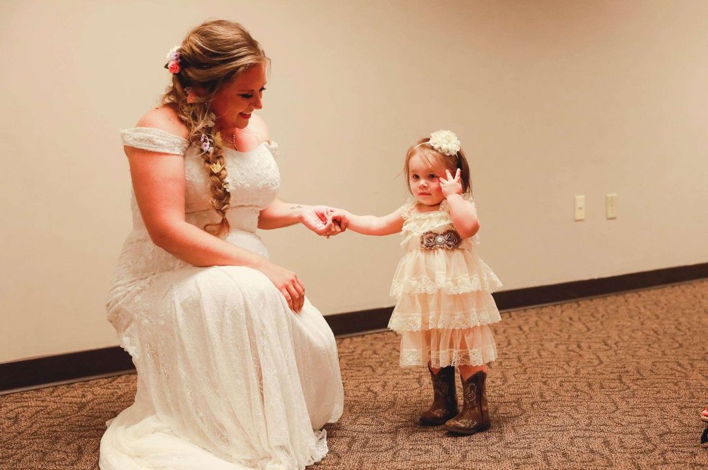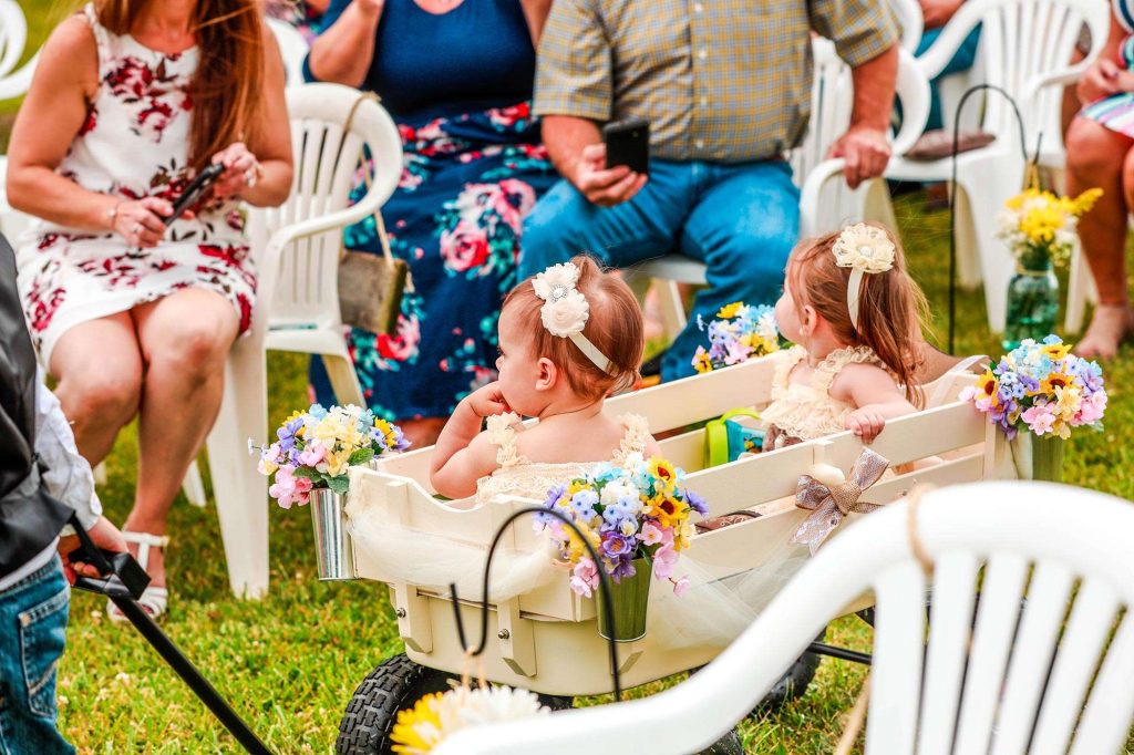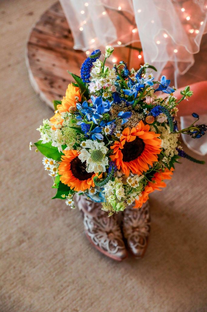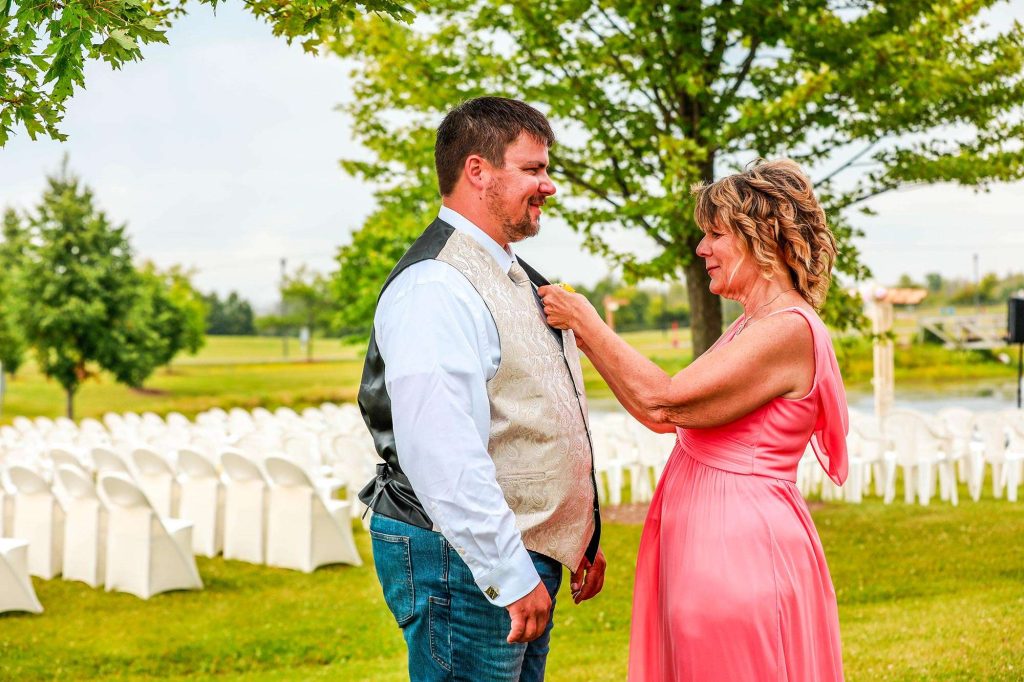 Both the ceremony and reception were held at Washington County Fair Park. The bride and groom said “I do” alongside one of the retention ponds. “It was a casual ceremony,” Bethany describes. “All the guys were in boots and jeans, and myself and the girls were in boots too.”