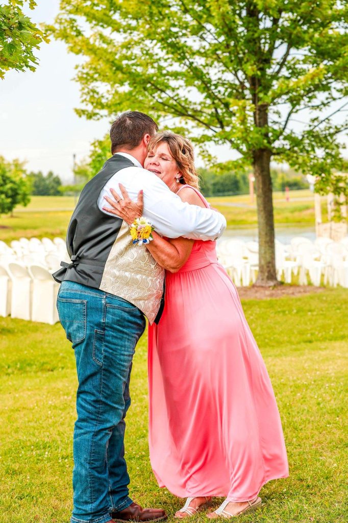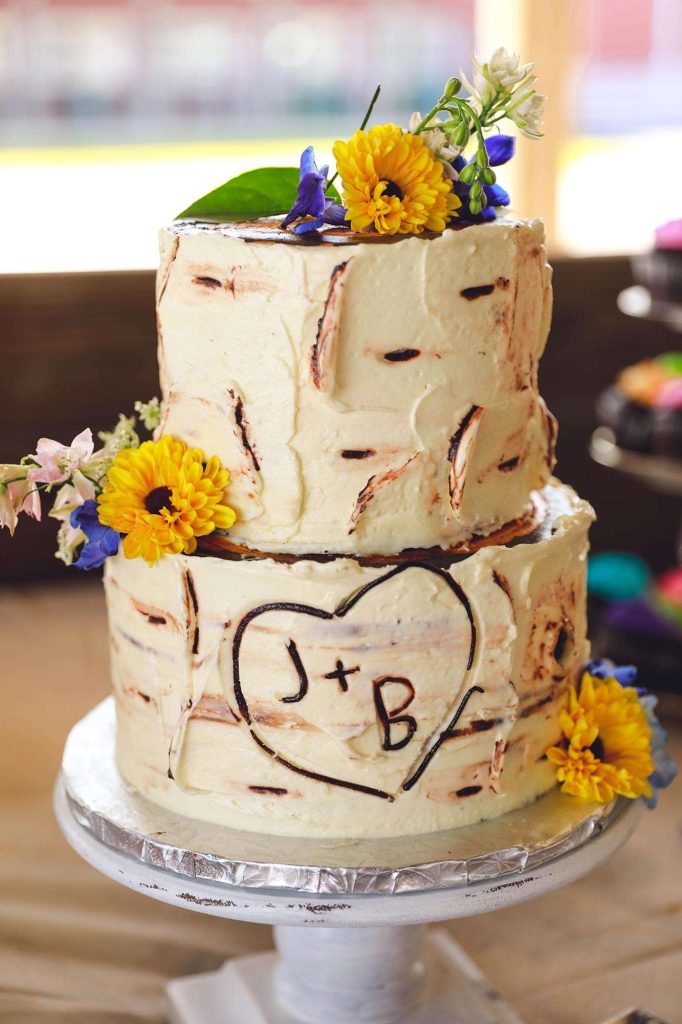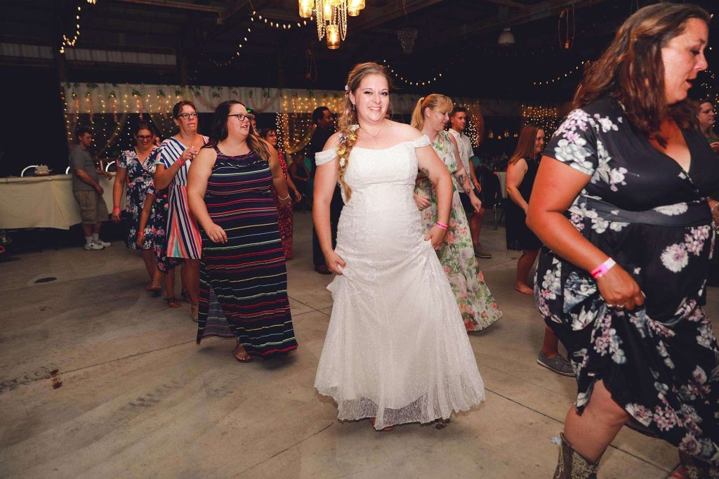 Justin and Bethany aimed to throw a reception that was relaxed and casual. “Everyone was just there to celebrate. We turned the barn into a beautiful space that encouraged the relaxed atmosphere.” The couple opted for a dinner of comfort food favorites from Catering by Bryan. “There was roast beef, turkey, mashed potatoes, and at Justin’s request, mac and cheese. The bar was provided by Washington County Fair Park—they did an awesome job!”