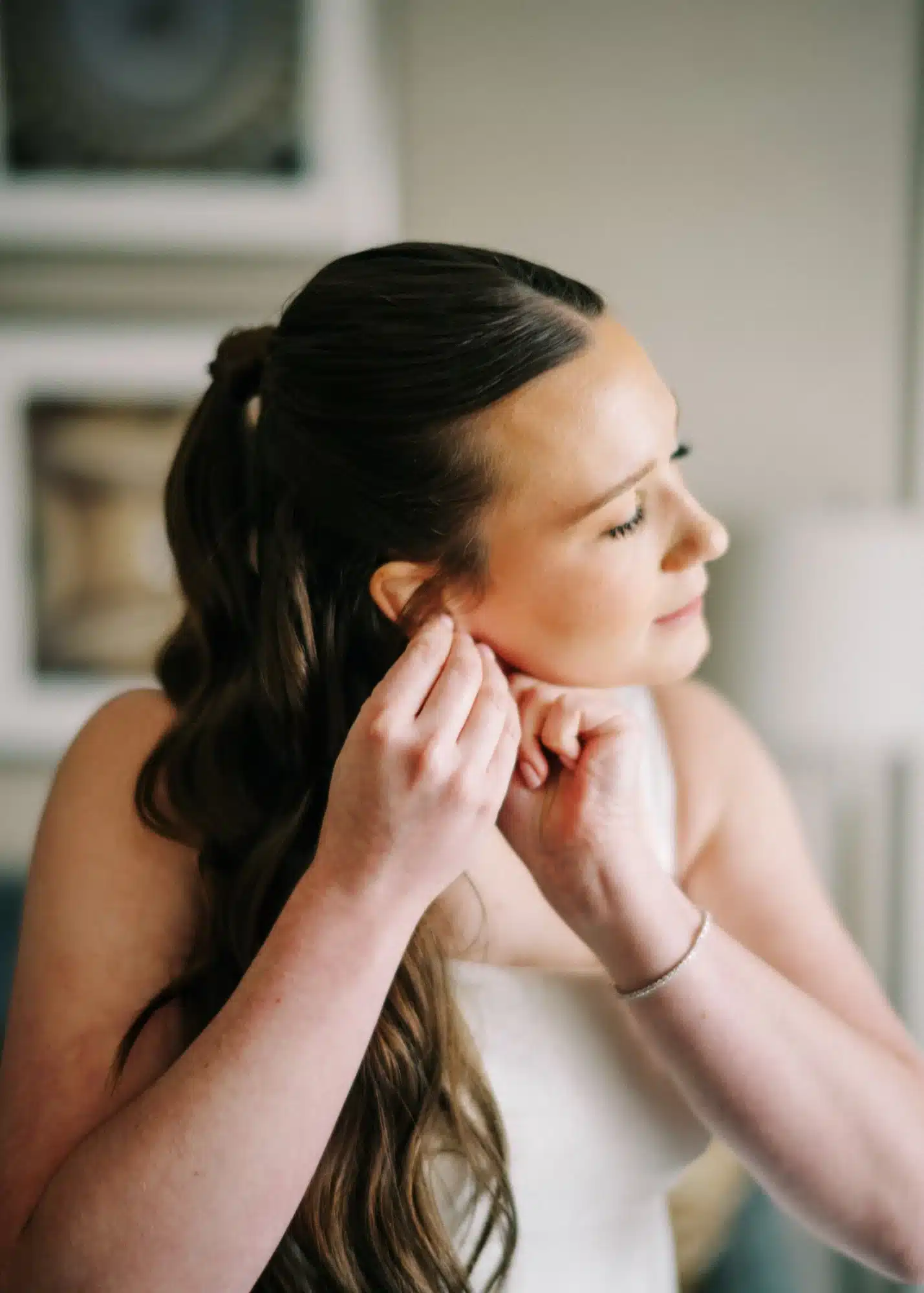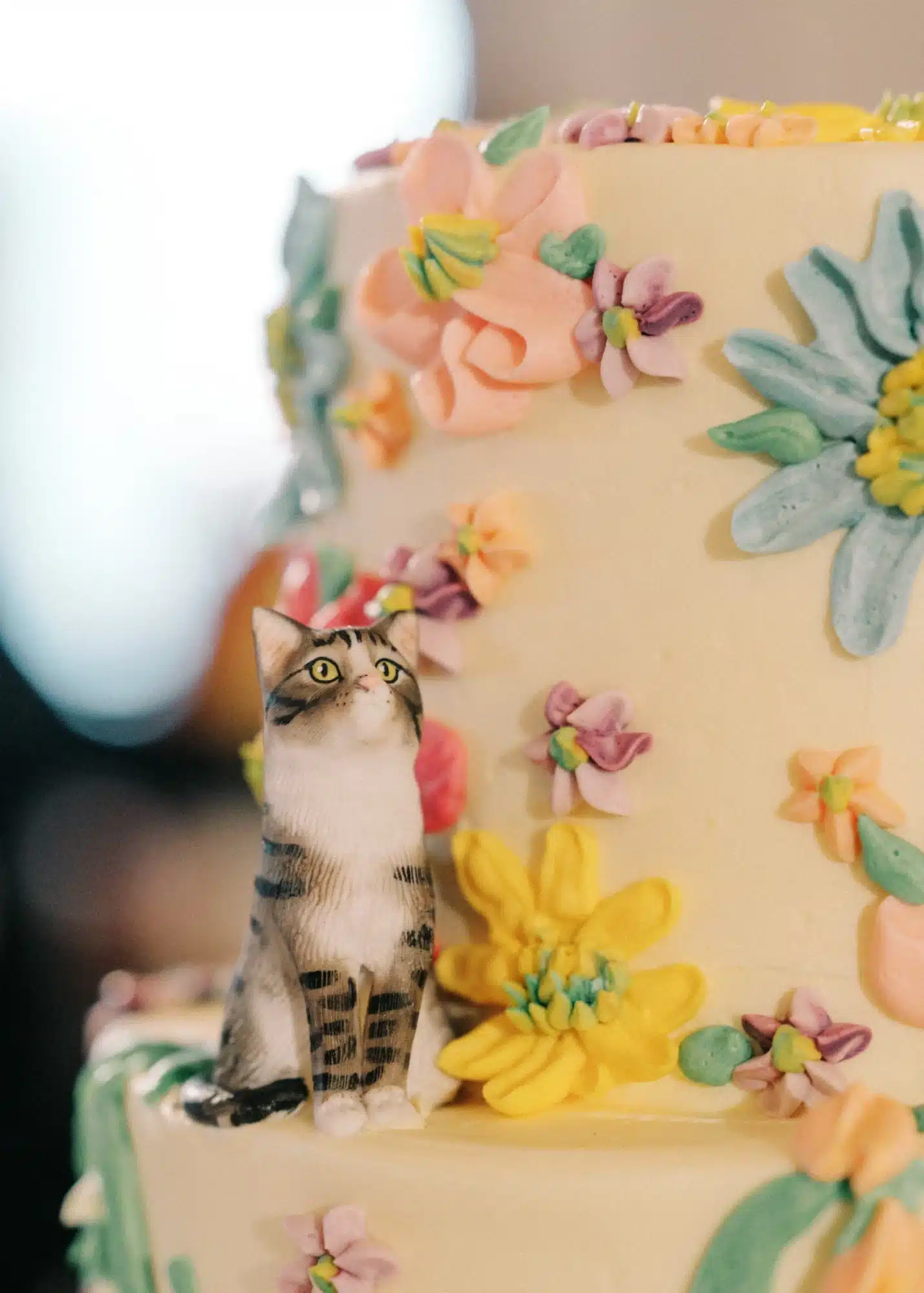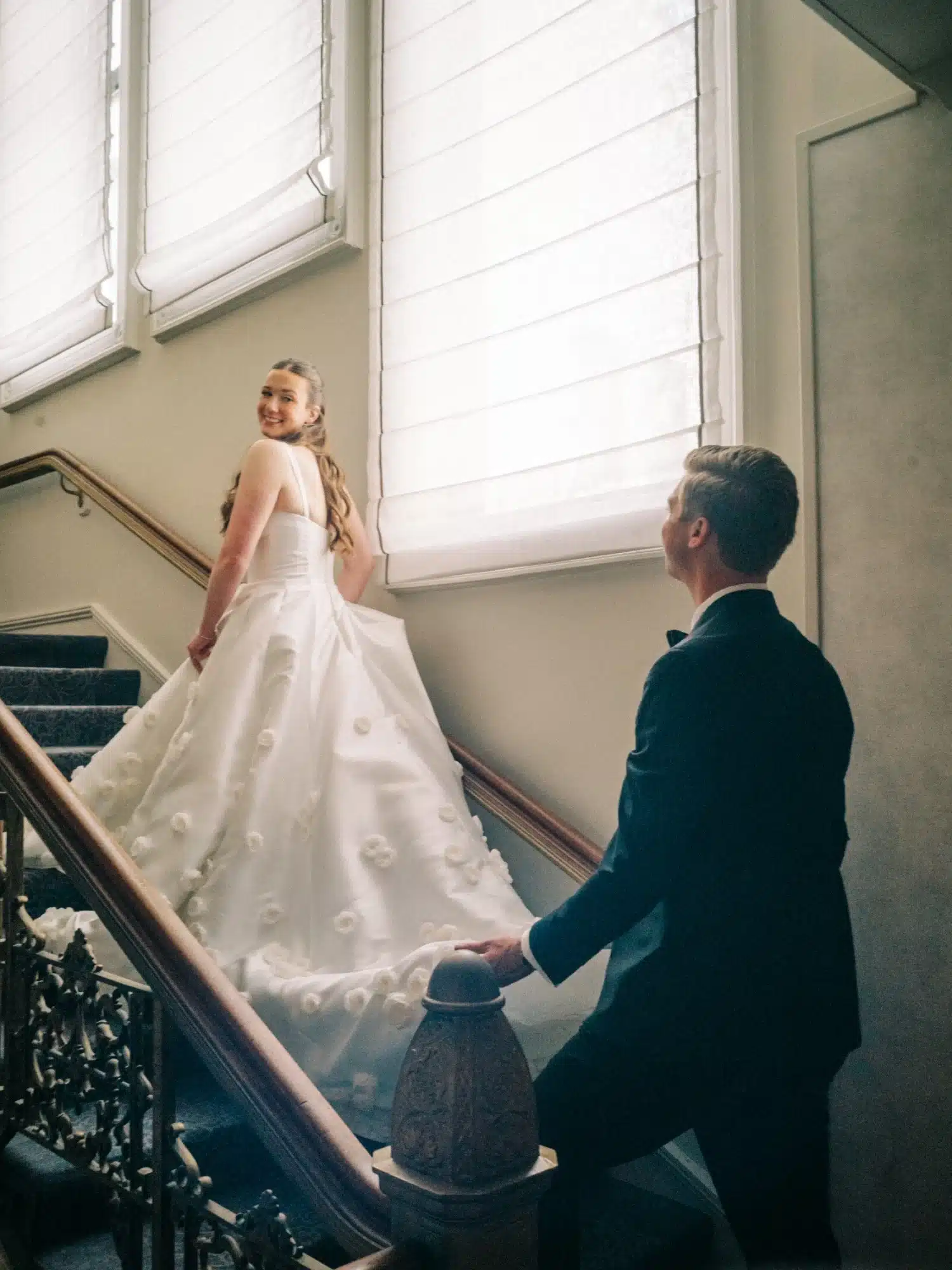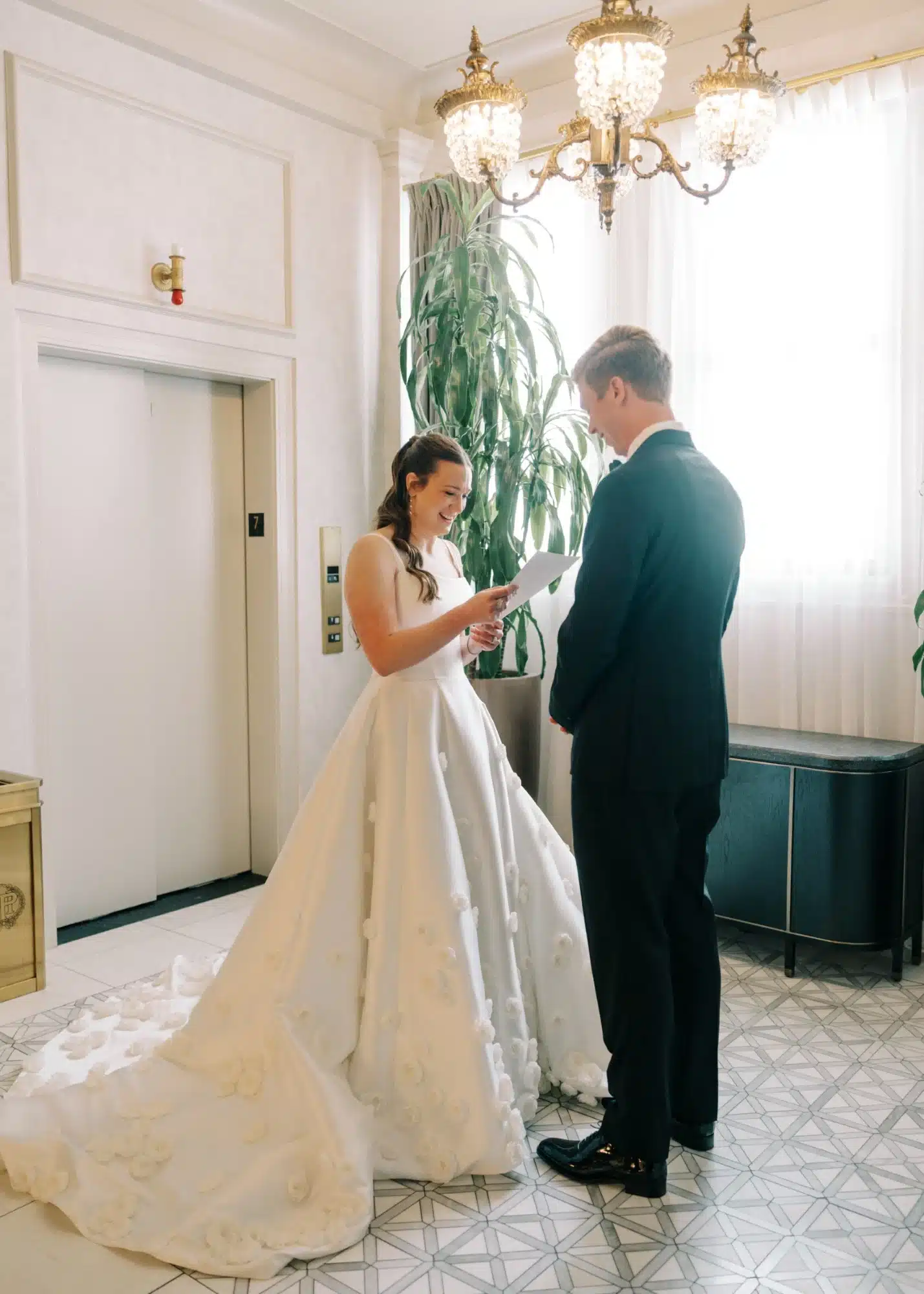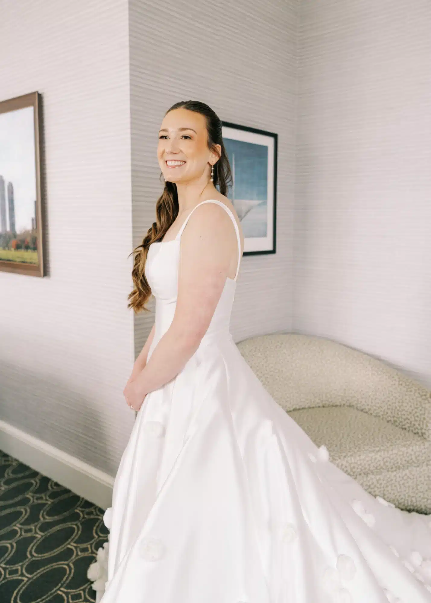 “As a Taylor Swift fan, I looked up the designers of the dresses she wore during “Enchanted” on the Eras Tour. I immediately loved a specific dress by Nicole + Felicia and had it brought into a bridal salon in Chicago. I changed the neckline and removed the sleeves to give it a more spring/summery feel.”
