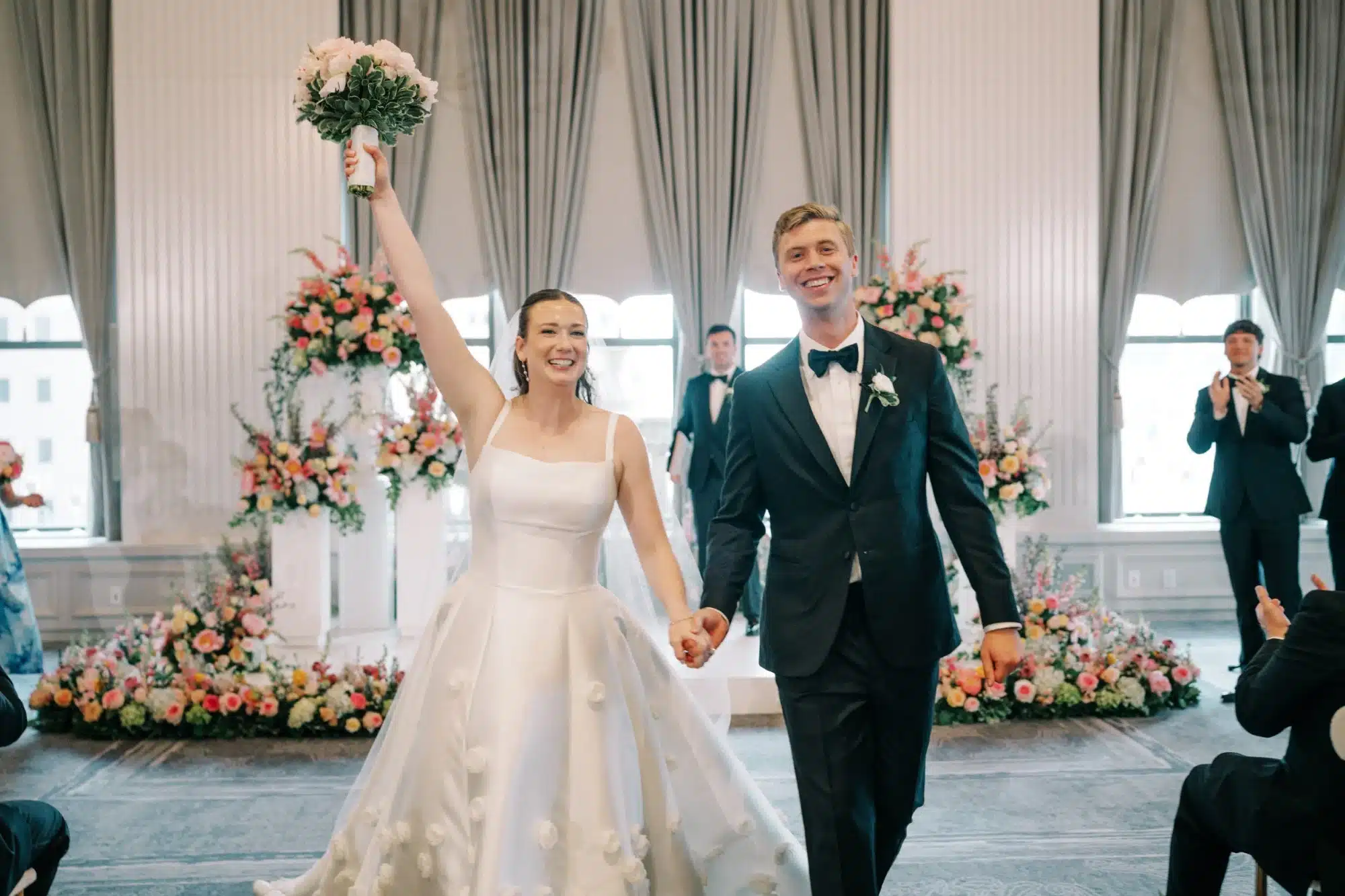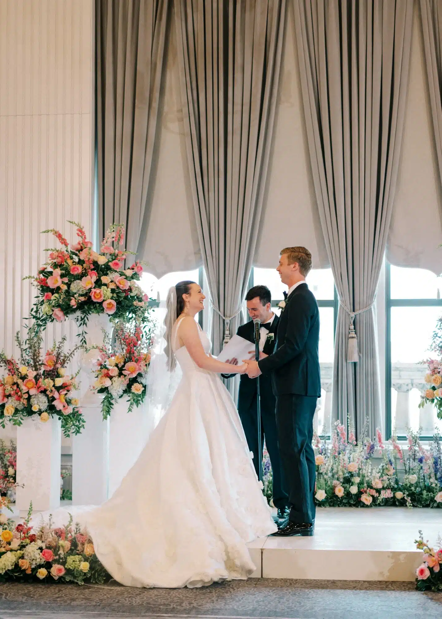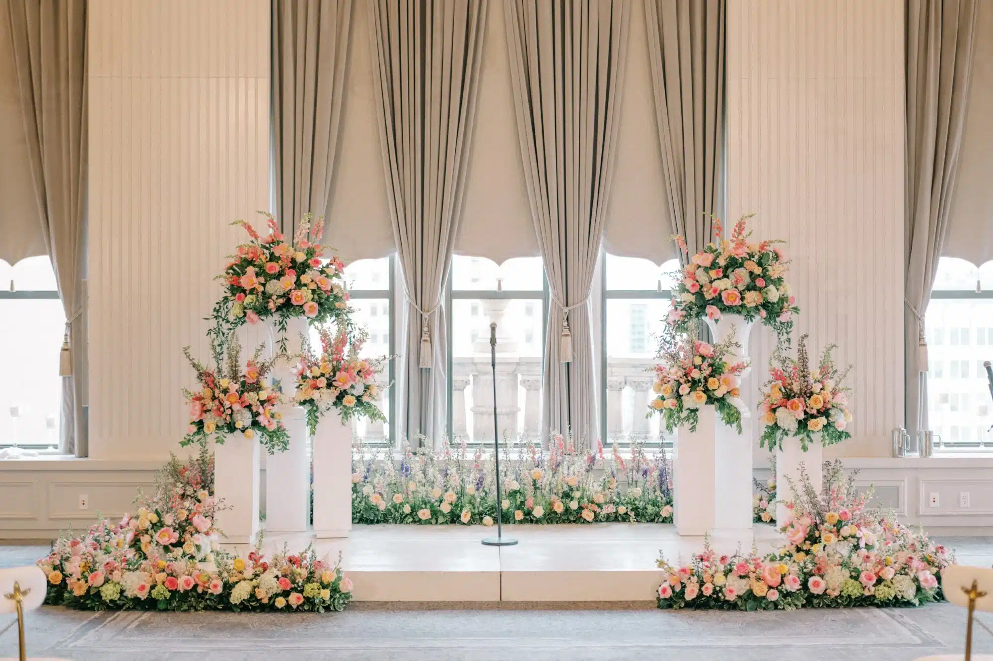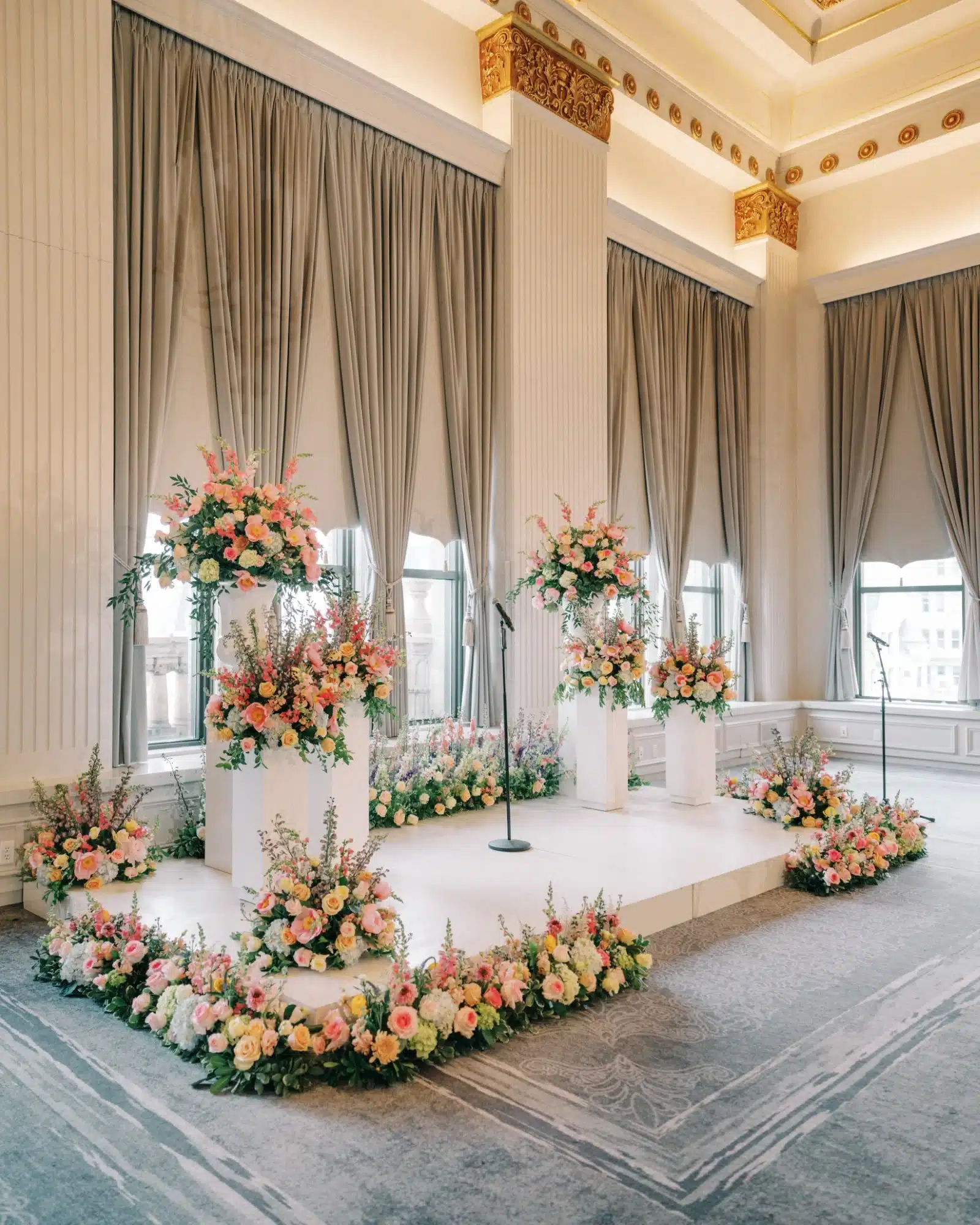 “We had a floral focused ceremony. Florals lined the aisle and encompassed the stage where we said ‘I Do’.”