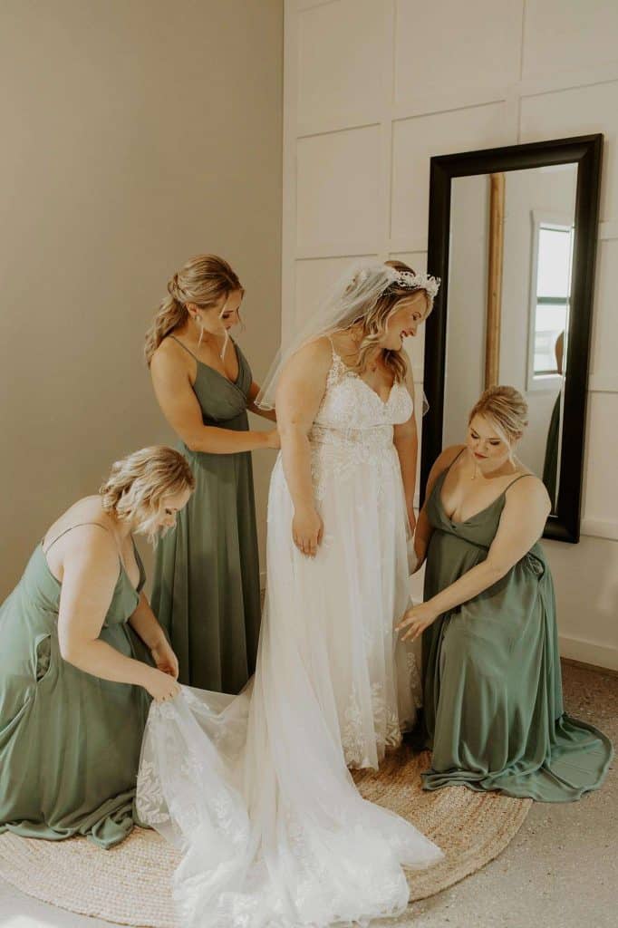 The bride found her Stella York gown at Bucci’s Bridal in Pewaukee, Wisconsin. “Bucci’s was such an amazing experience! I worked with Nicole, who helped me stay on budget and find my dream dress without getting overwhelmed.”