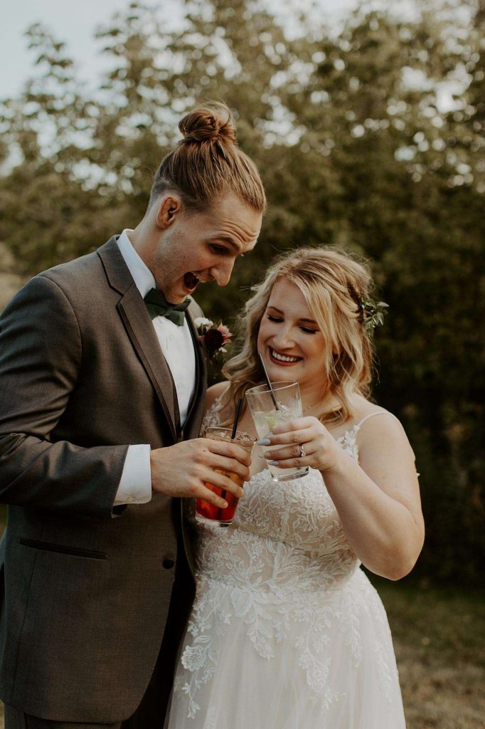 To start the day, Kyle and Bridgette had a morning meal catered for their bridal party by Cornerstone Restaurant in Genesee. “We wanted to support a local business, and we know how long wedding mornings get for the groomsmen and bridesmaids. We opted for pulled pork, Greek salad, and two crostini options.”