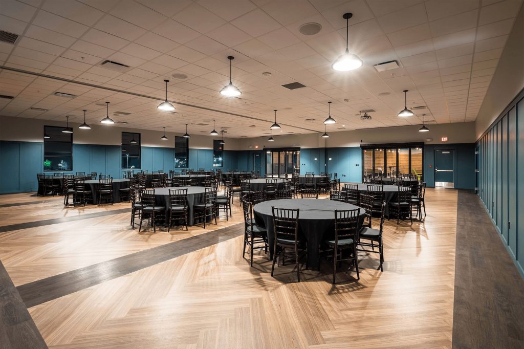 WhirlyBall’s Brookfield, Wisconsin venue features a private event space that is perfect for the wedding of your dreams, with a capacity of anywhere between 25 and 300. Amenities include an outdoor rooftop terrace, private bathrooms and bridal suites, and a stunning ballroom and dance floor. The venue offers three different full-service wedding packages for everything you’ll need all in one place. You’ll work with a sales manager to plan your event, including every detail down to the décor.