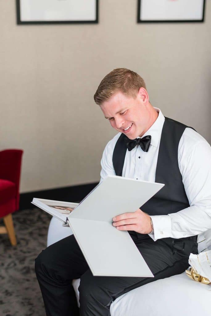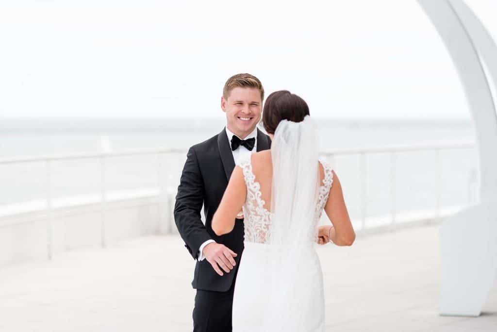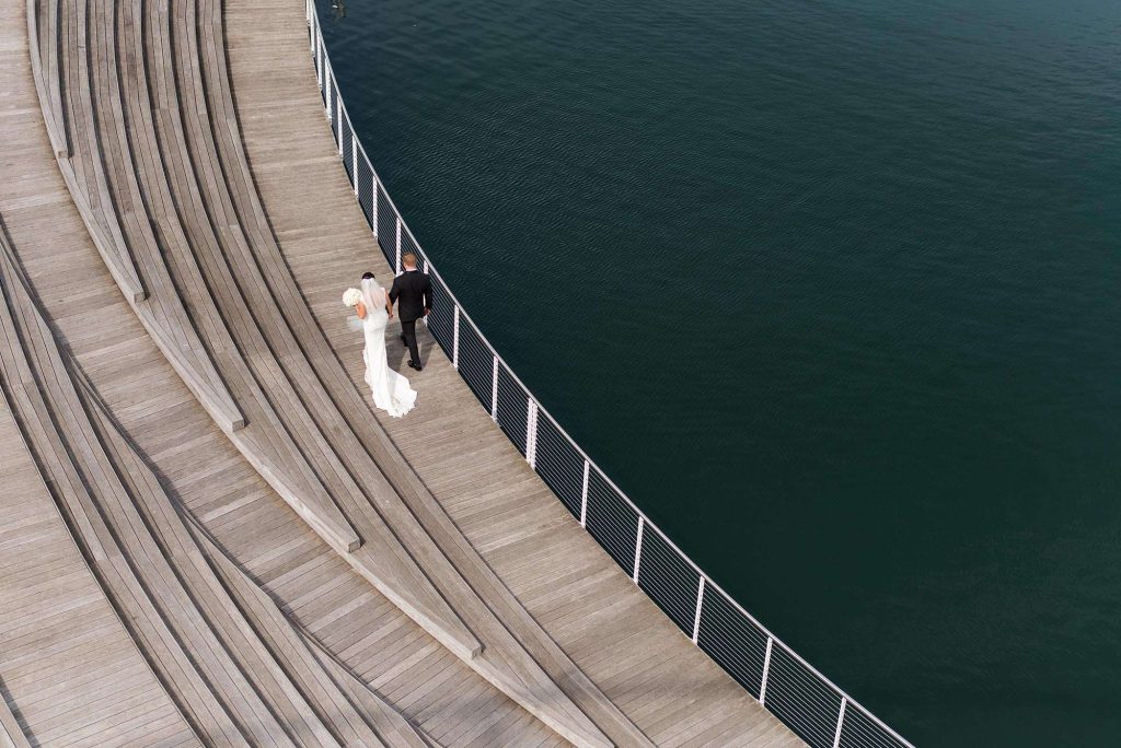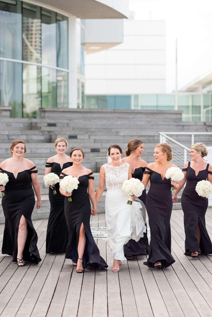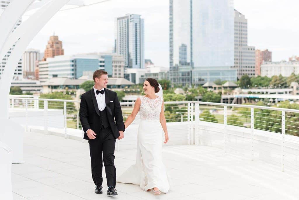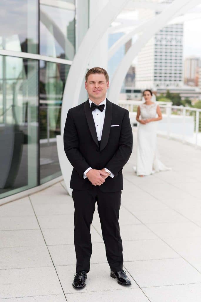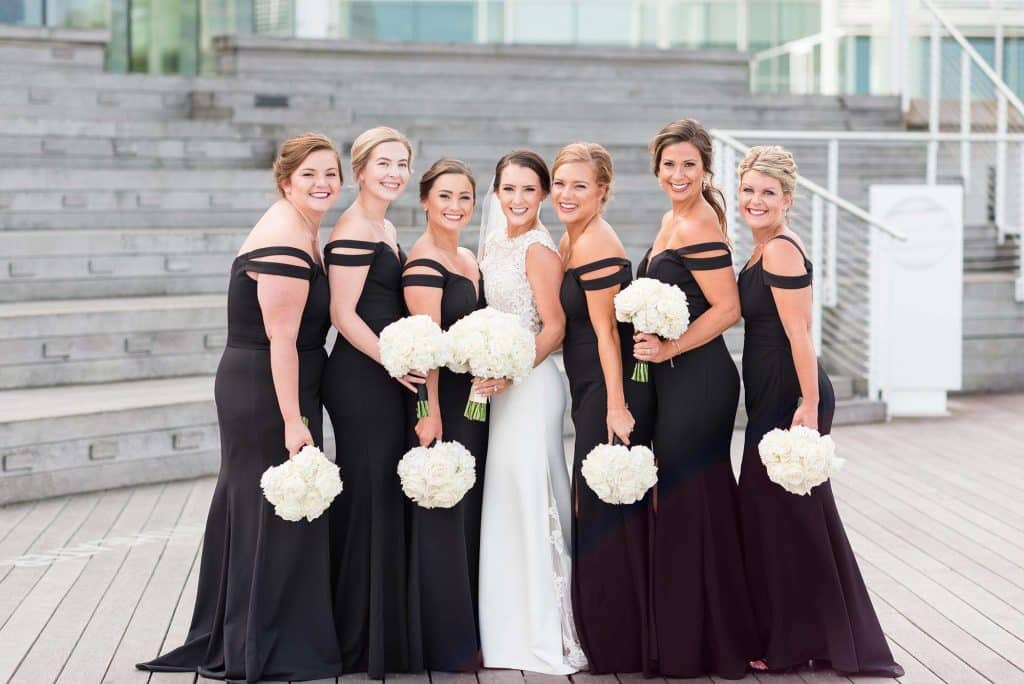 Kyle and Brooklyn picked picture locations that are both special and stunning. The first batch of photos was taken at the bride and groom’s home in Bay View, where the girls were getting ready. The fellas had photos taken at the Kimpton Journeyman Hotel in the Third Ward. Family photos were snapped at Discovery World on the patio. “Kyle and I also snuck away to take some photos on the Reiman Footbridge in front of the Milwaukee Art Museum.”