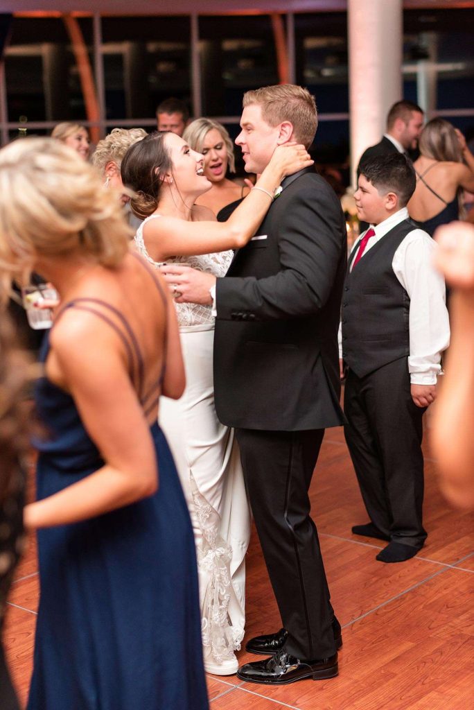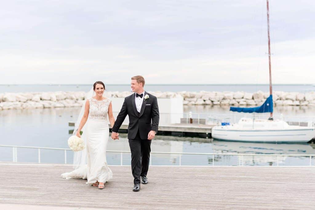 Kyle and Brooklyn decided on an August wedding at Discovery World in downtown Milwaukee. The ceremony was held at Pilot House and the reception in the Great Lakes Exhibit. The style of their wedding was elegant, timeless, and true to themselves as a couple. The two attended the Wonderful World of Weddings show, where they ended up booking their florist, Bank of Flowers.