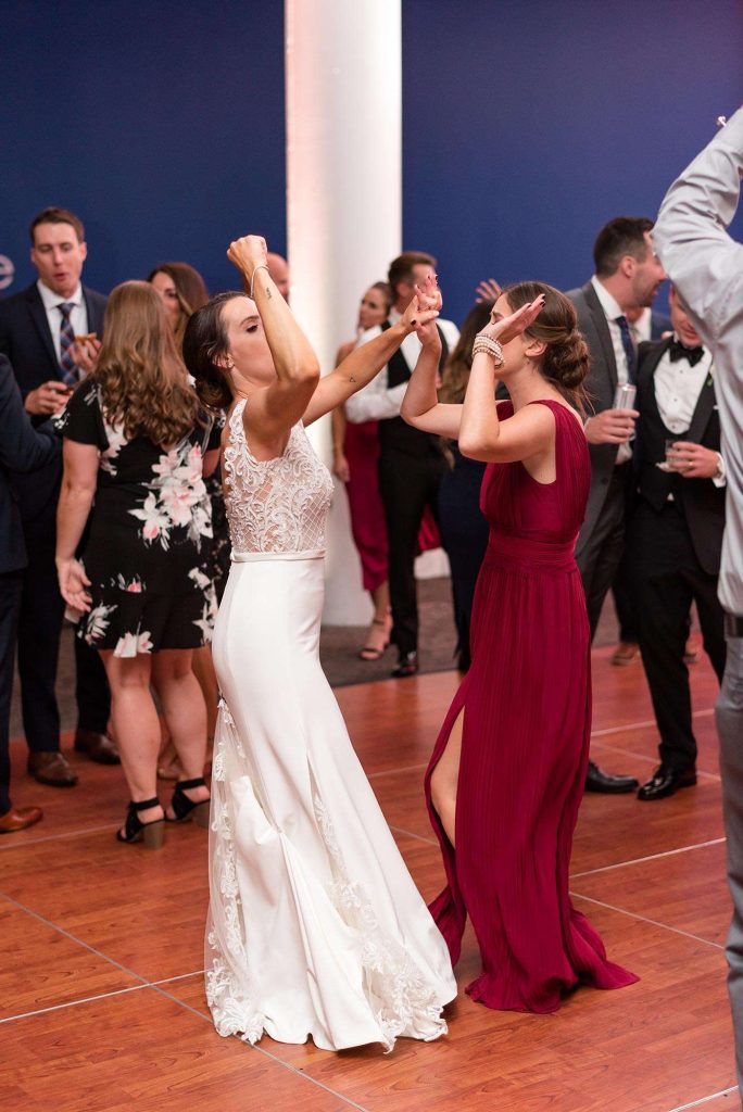 The Discovery World reception began with what Brooklyn calls “an amazing dinner and even better speeches. Seriously, we were so touched by what our loved ones had to say.” That amazing dinner was catered by Bartolotta. It started with an open bar and passed hors d’oeuvres during cocktail hour. For the sit-down meal, there was house salad, dinner rolls, and a choice of filet mignon, chicken, or eggplant rigatoni.