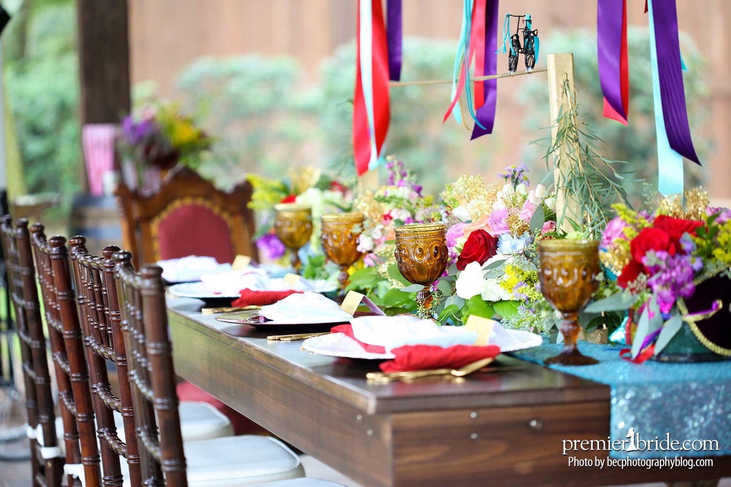 One of the easiest ways to tie in a wedding theme is the table décor. For our “Vintage Carnival” shoot, we had 4 unique and different table scapes . Each table was designed by a team of wedding professionals that consisted of wedding coordinators & florists.