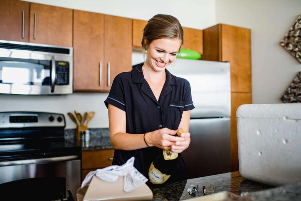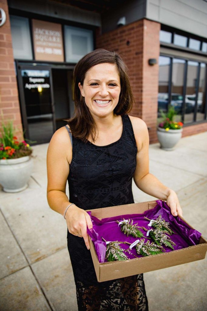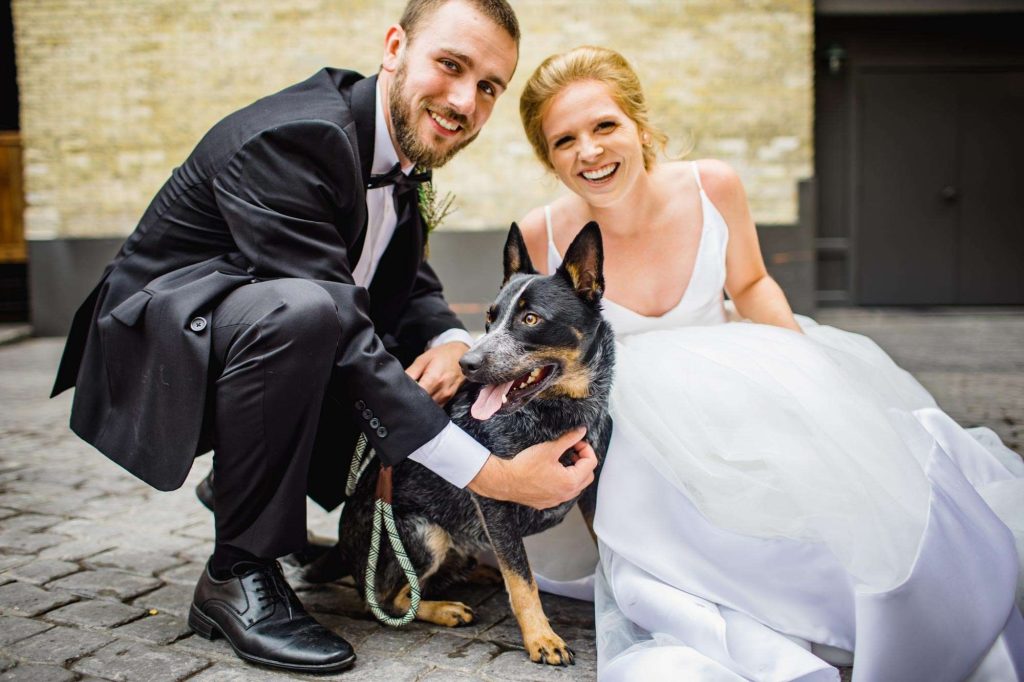 Wisconsinites Courtney and Kevin met at a Summer Fest concert in 2013. Fast-forward five years to when the two were living in Milwaukee’s Third Ward, just a stone’s throw from the festival grounds. “We took our dog for a walk on our five-year anniversary,” Courtney remembers. The grounds were closed that day, so they strolled along the perimeter. “Kevin proposed to me in front of the grounds, where we first met.”