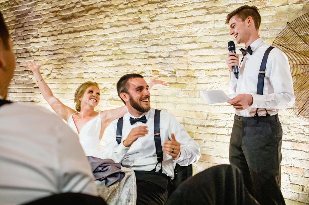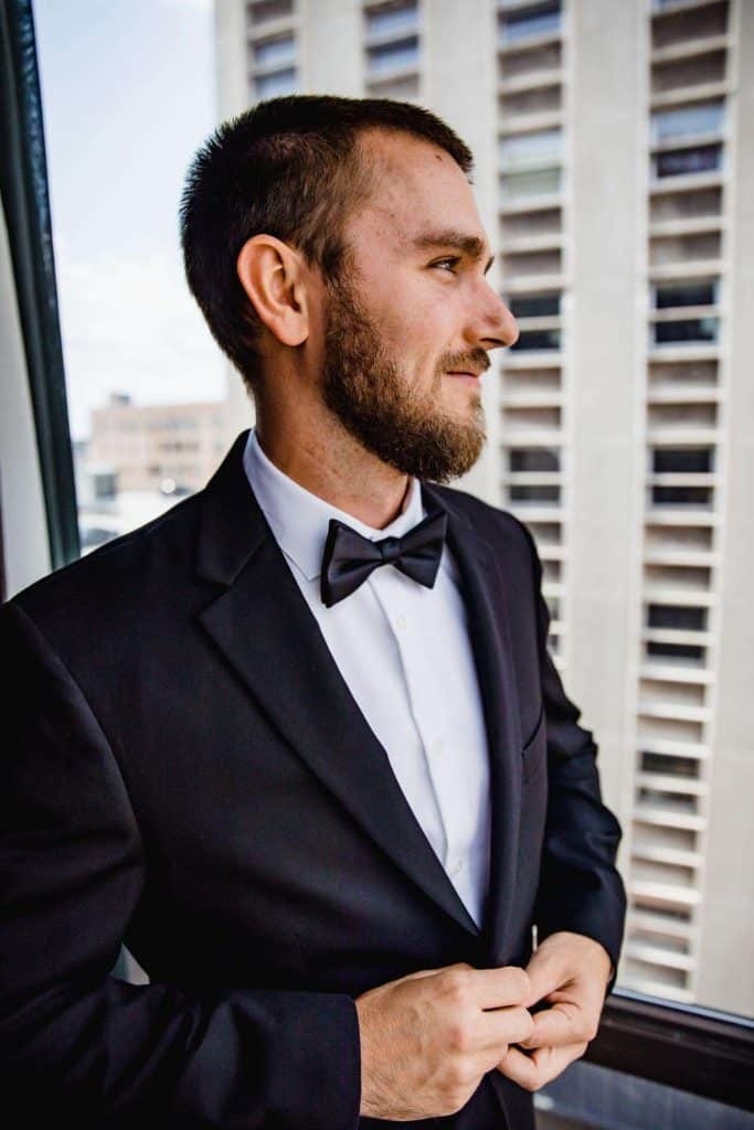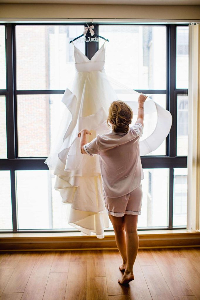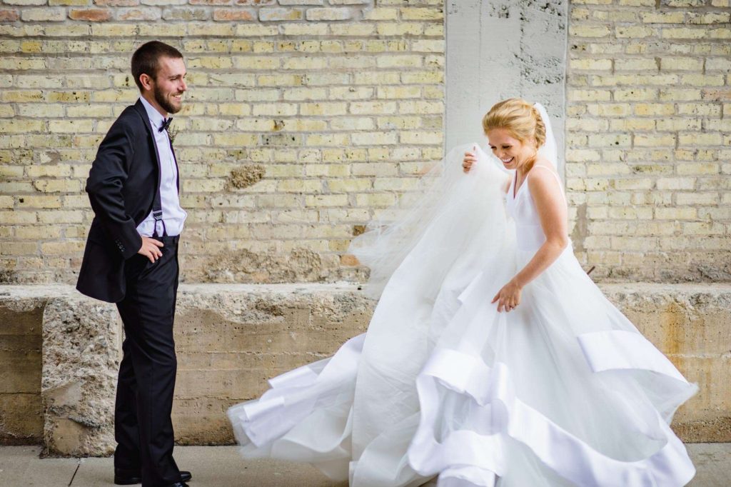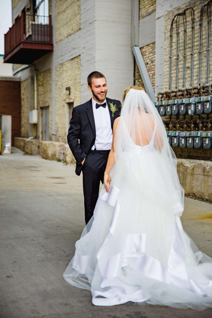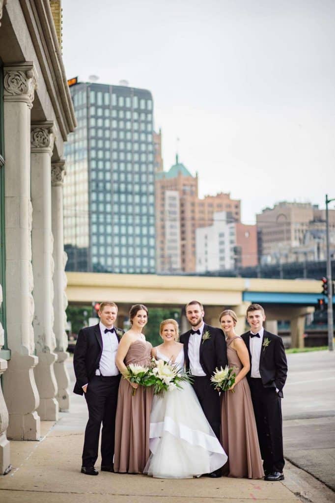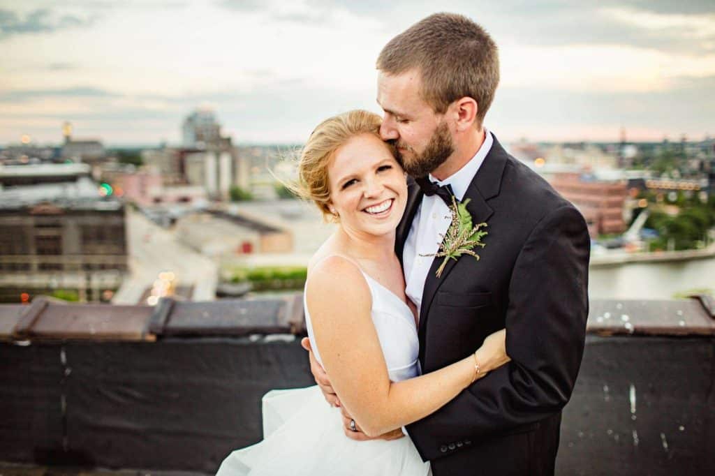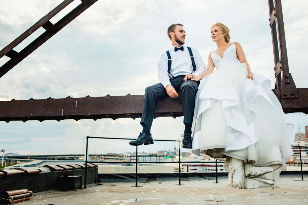 Both the ceremony and reception took place at the Pritzlaff. With the gorgeous building as their backdrop, there was no end to photo-ops. “We took rooftop photos on top of the Pritzlaff Building and throughout the Third Ward.”