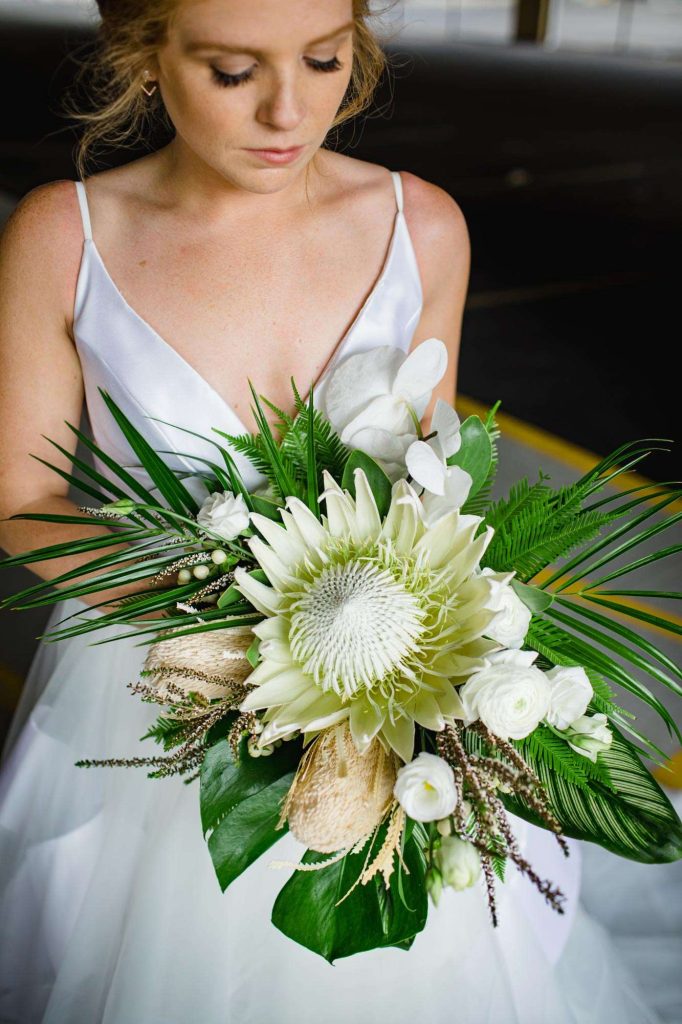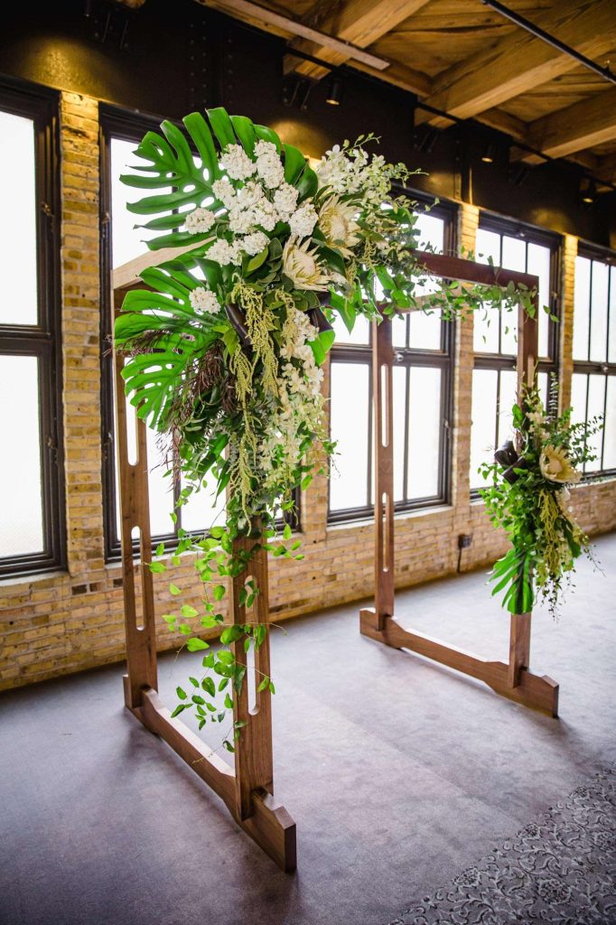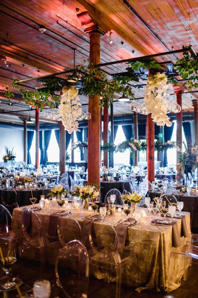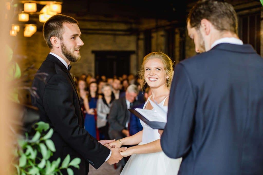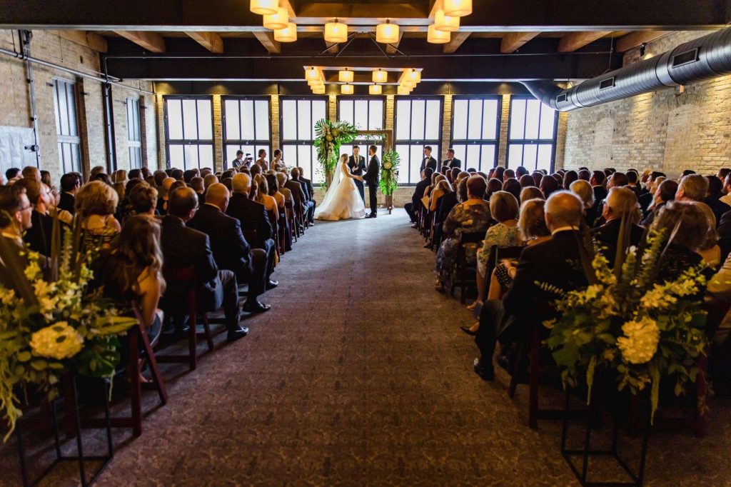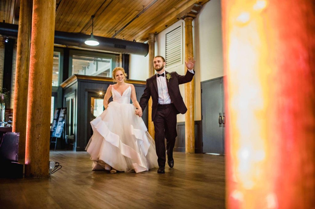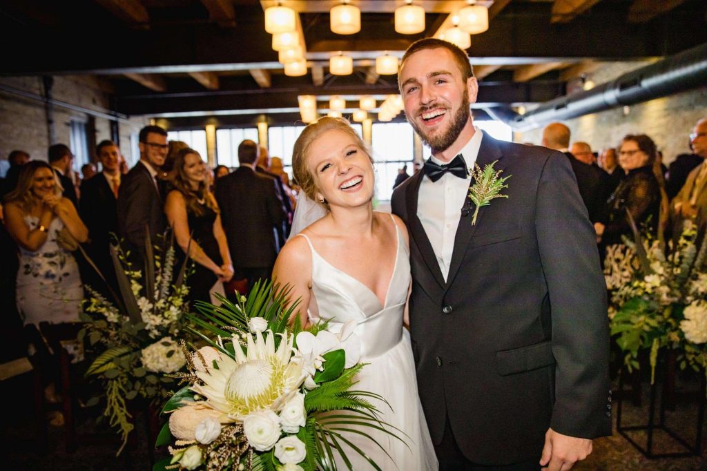 Kevin and Courtney planned a modern and elegant wedding at the Pritzlaff for August 3, 2019. There was no true color scheme, rather lots of neutral flowers, dark greenery, and cool accents of steel and iron. While envisioning the big day, Courtney found inspiration in unique places: “You don’t have to have a cookie-cutter wedding. Instead of searching on Pinterest, try searching hotel lobbies for floral and decorative inspiration! Or look at local stores with unique design elements.”