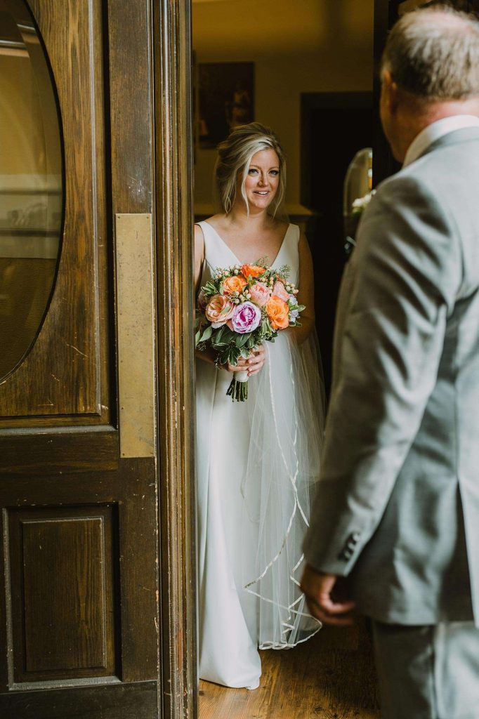 The church ceremony was performed by Pastor Greg Lyon, who is Courtney’s cousin by marriage. “Pastor Greg wrote a beautiful sermon, very appropriate for the times.” Courtney’s twin sister Lauren served as Matron of Honor and Scott’s best friend Josh served as Best Man. The ceremony was made particularly unique by the inclusion of a Digital Usher. “The mutual friend who first connected us, Kristi, broadcast the wedding on Facebook Live. Family and friends had been so supportive and understanding during this pandemic wedding!”
