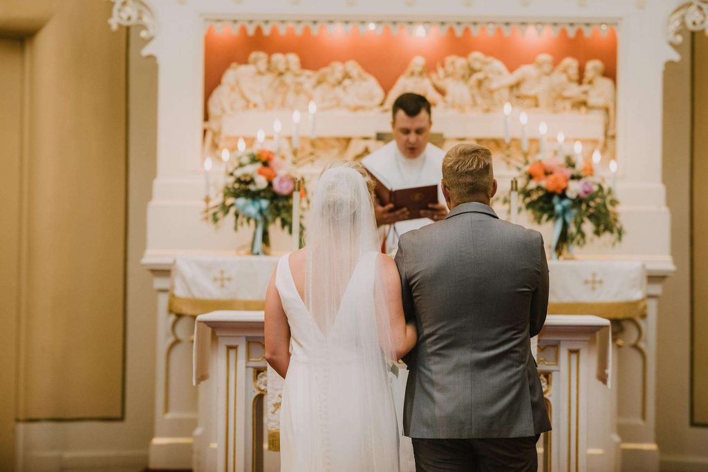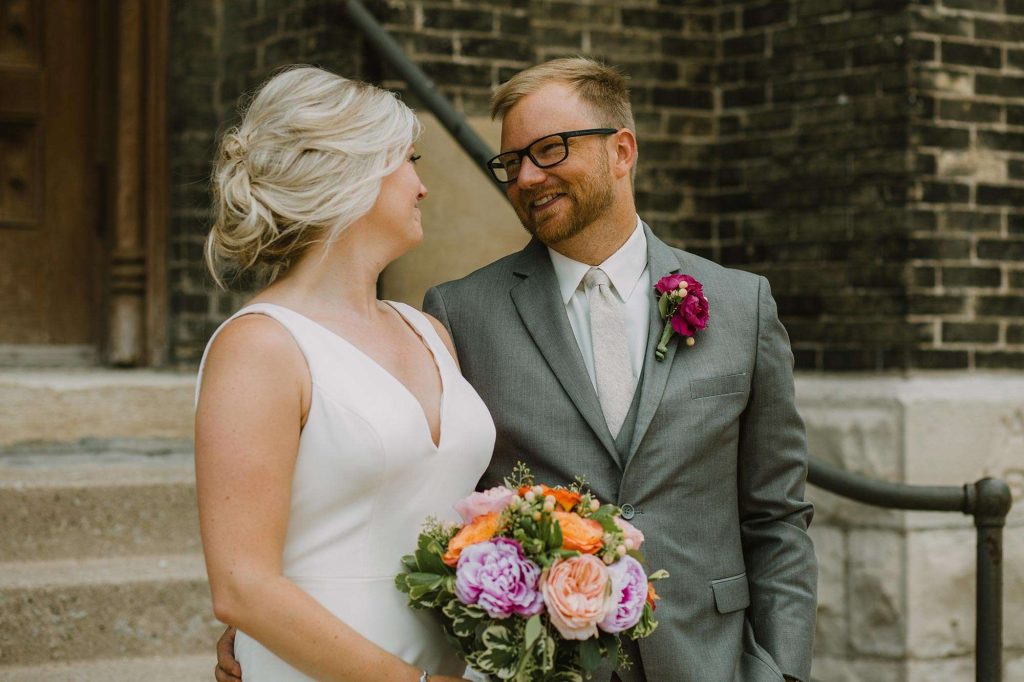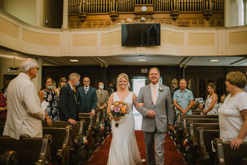 Courtney and Scott planned a July wedding, which hit mid-pandemic. “Our plans changed so many times due to the pandemic. We were excited to not only get married on the original date we had planned, but to also be married in the church we love with a good portion of the people we had originally invited.”