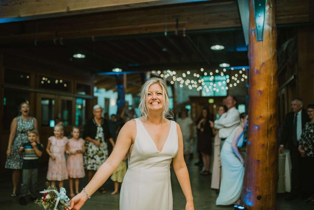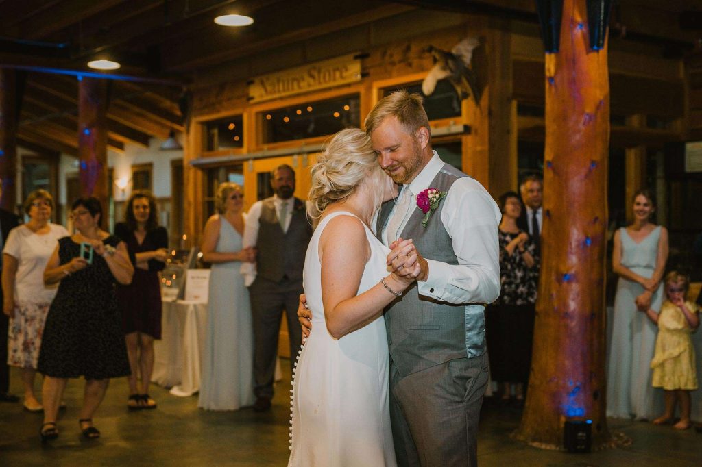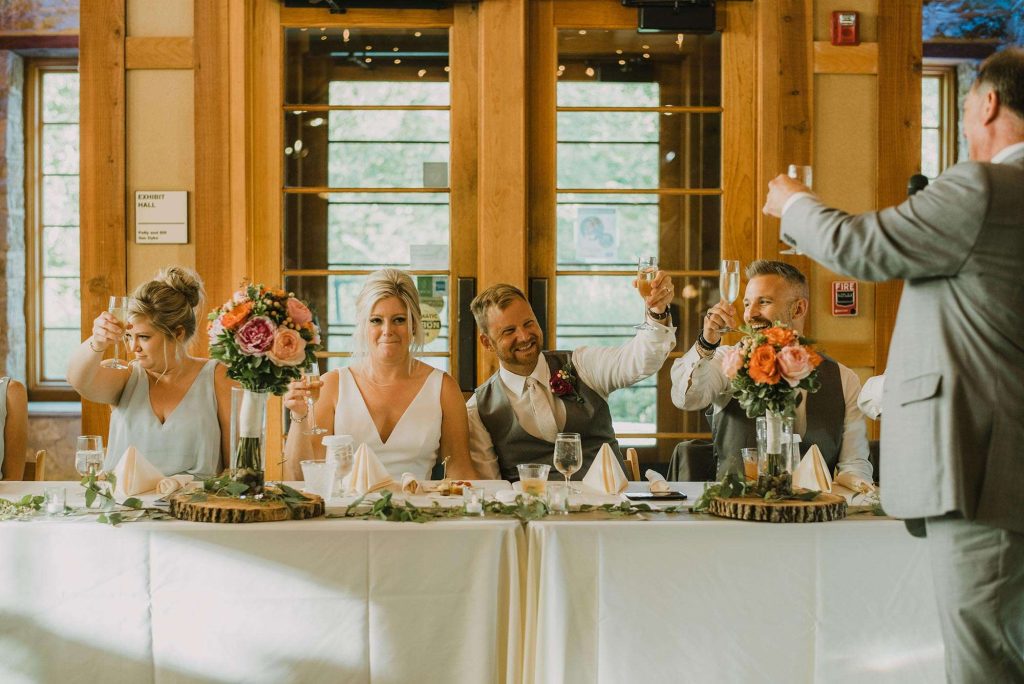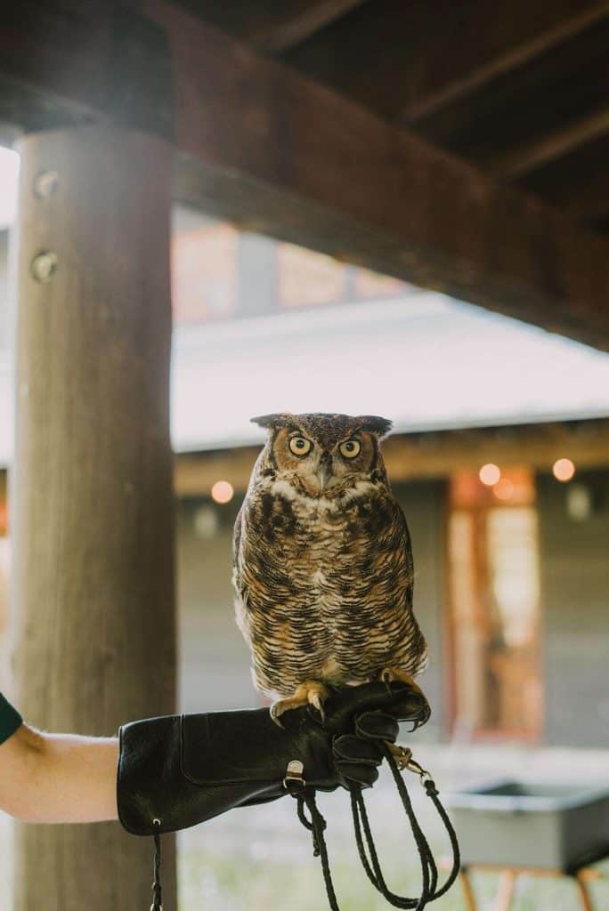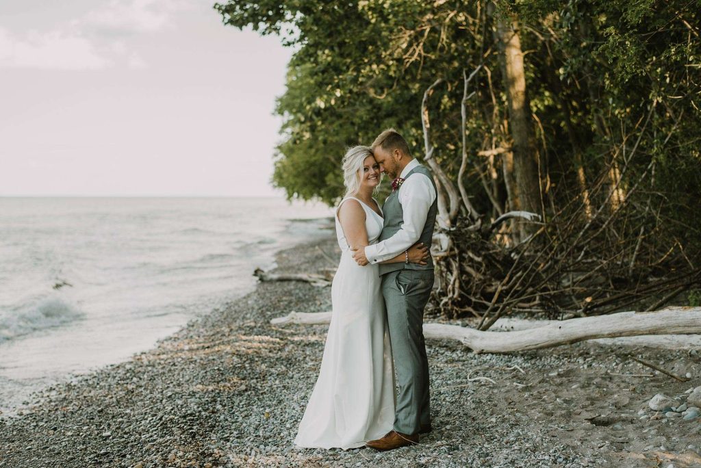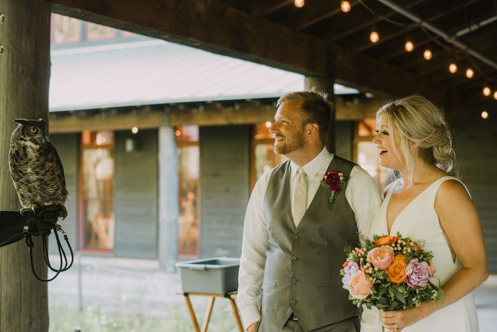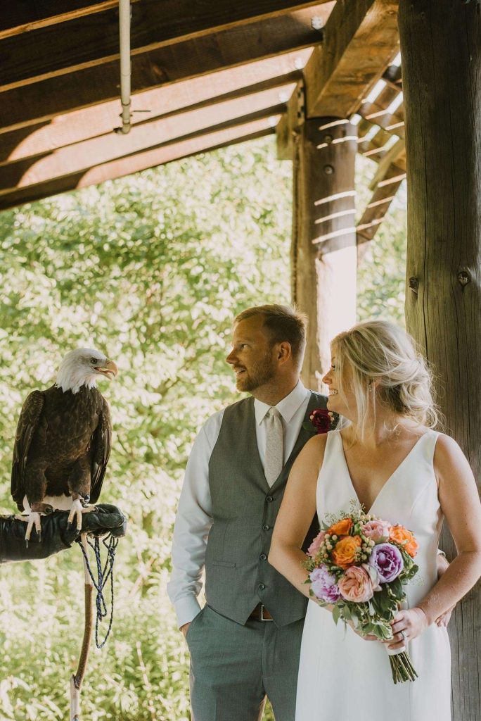 The reception was held at the Schlitz Audubon Nature Center. “The birds of prey were the highlight of cocktail hour! The bald eagle was beautiful! We love America, so to have the bald eagle there to socialize with our guests just made the evening even more amazing.” The couple used DeGroot Film Co. for their wedding photos and were beyond pleased. The bride and groom agree that the photos down by the beach and the beautiful Nature Center hall are two of their favorite things about their wedding day.