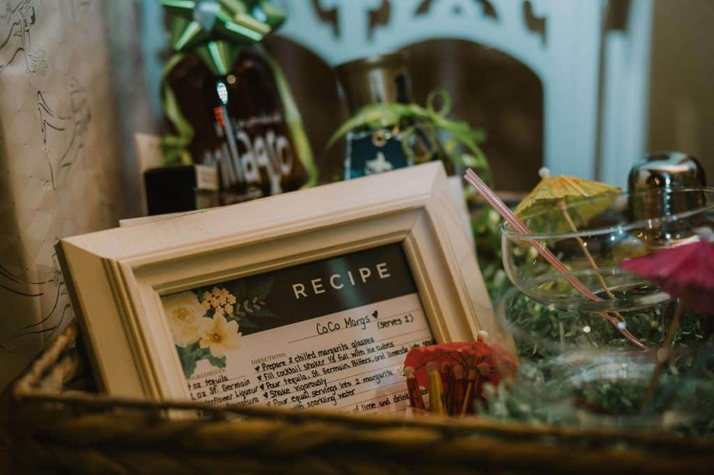 For dessert, Simma’s provided mini European-style desserts. There was also a coffee bar and a late-night snack of barbecue pulled pork sandwiches and potato chips. To outfit the space with furniture and flowers, blooms hailed from Creative Floral Designs while vintage accent pieces and linens came courtesy of Something Borrowed and More. “Huge shout-out to Jen for sending flowers to aunts and uncles who couldn’t be there with us!”