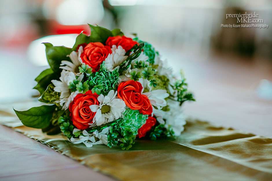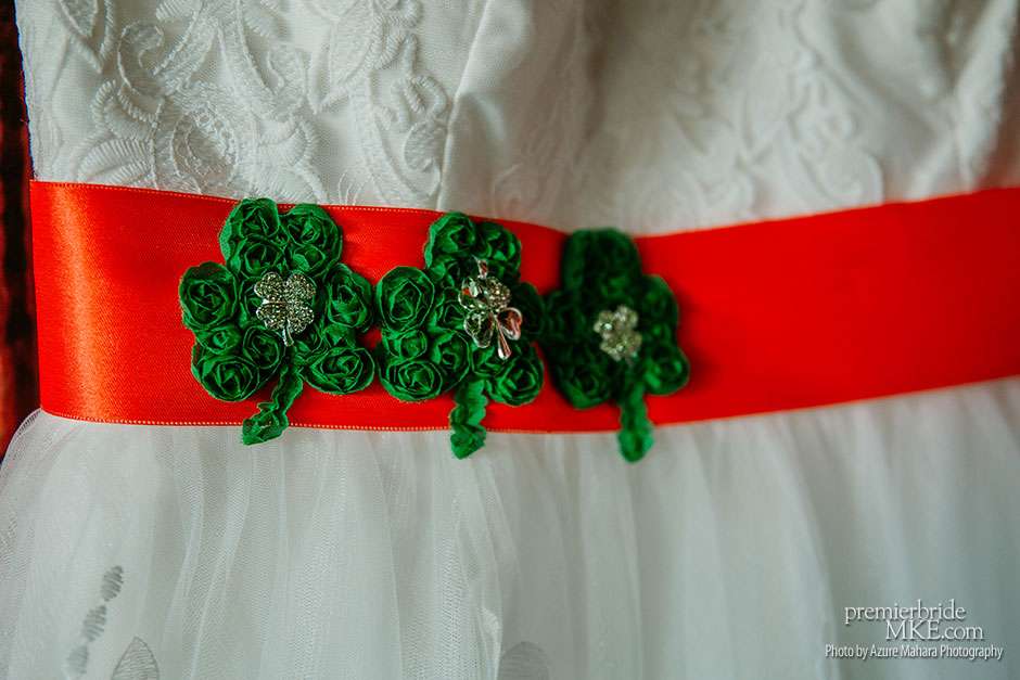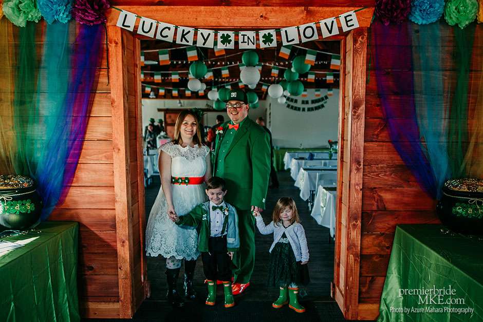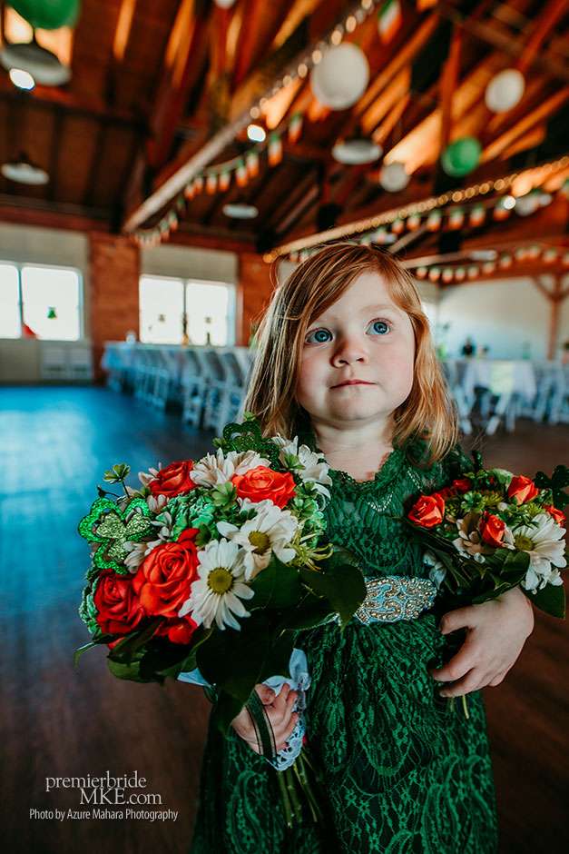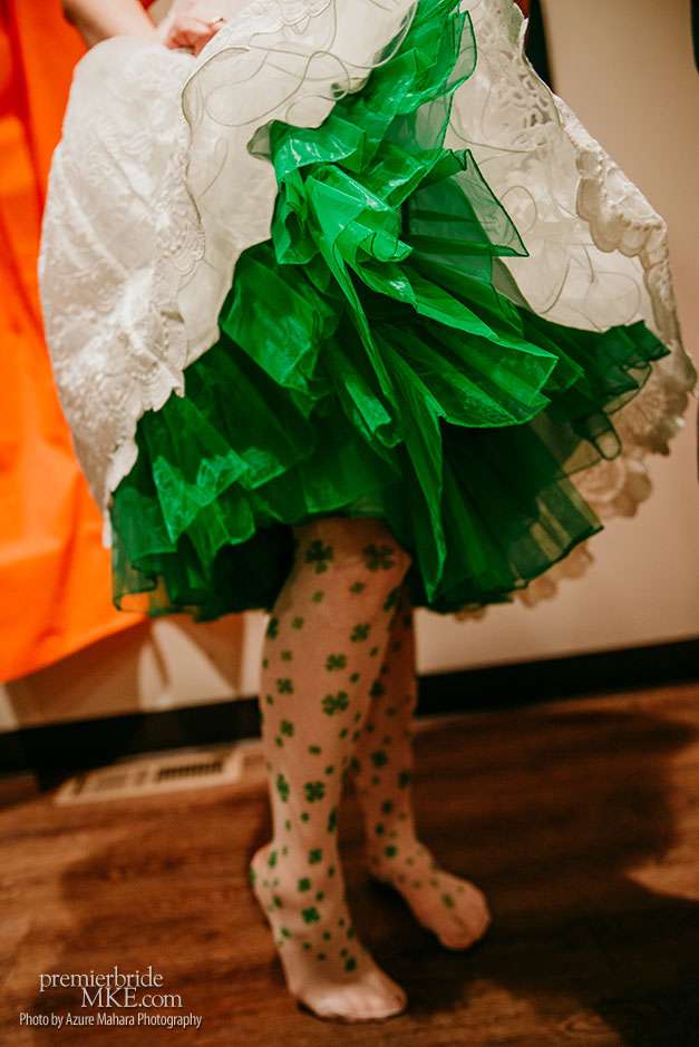 The couple attended the Wonderful World of Weddings show in January for a bit of inspiration. While the Bright and festive bouquets were provided by Creative Floral by Something Borrowed, a gift from Crystal’s Aunt Kathy. The reception took place at Glacier Hills County Park Pavilion, where guests enjoyed traditional Irish fare such as corned beef, cabbage, potatoes, and carrots, prepared by Crystal’s father, with help from the Sussex Inn. The spirited and joyous wedding brimmed with personal touches and festivity.