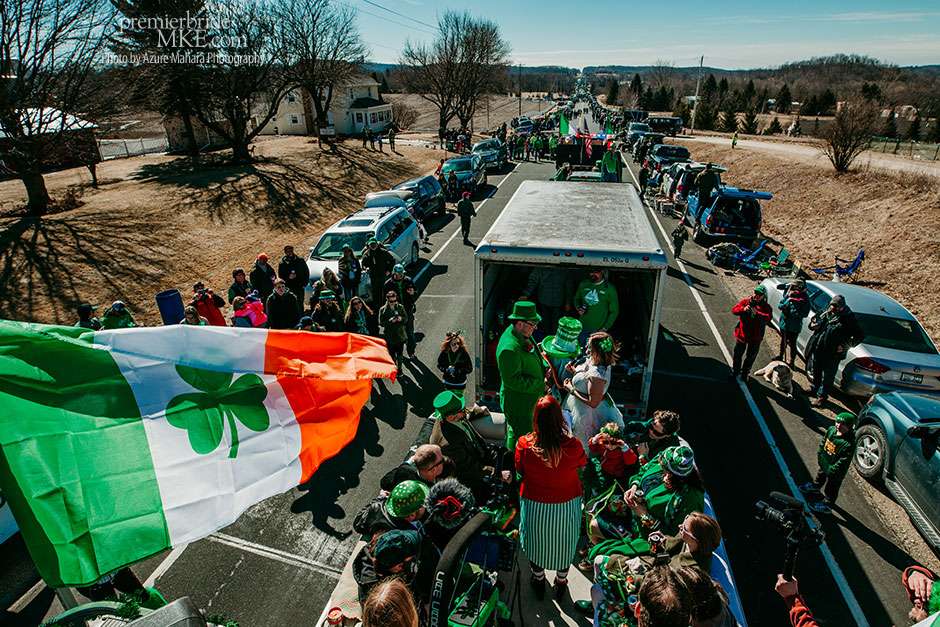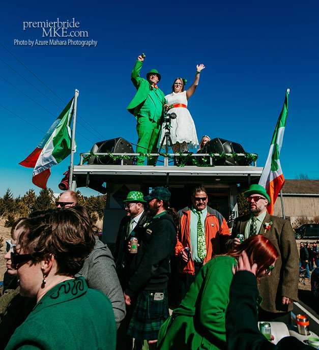 Crystal and Dan were married on March 17th, 2018 and shared a festive celebration with their family and friends. The lively and cheerful ceremony took place atop a float at the Town of Erin Annual St Patrick’s Day Parade. The float was set up by Audio Therapy DJ Services, and featured a pontoon boat decorated with St. Patrick’s Day flare!