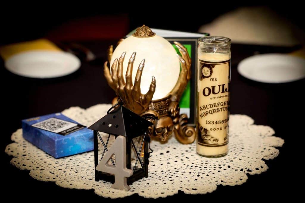 During dinner, every table was given cards to fill out for the newlyweds to read on the year that corresponds to their table number—for example, Table 8 wrote cards for Brittany and Dimitrios to open on their eight-year wedding anniversary. For tables who had tarot cards, the couple created a custom QR code that guests could scan to learn how to use and read the cards.