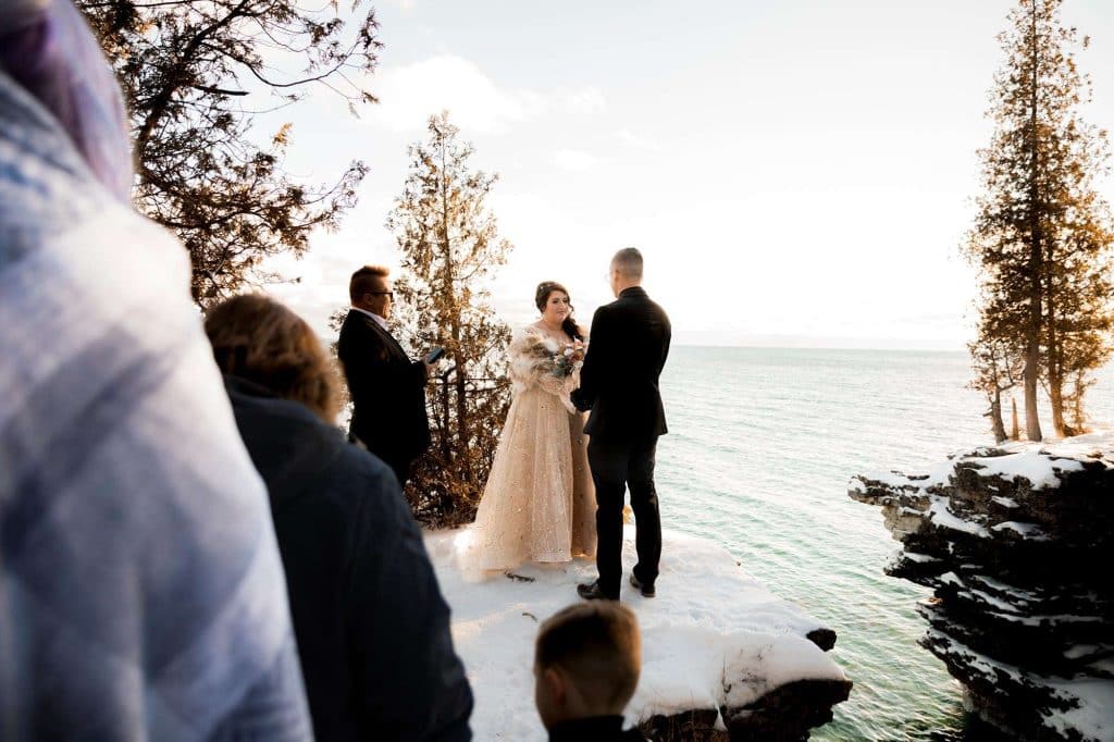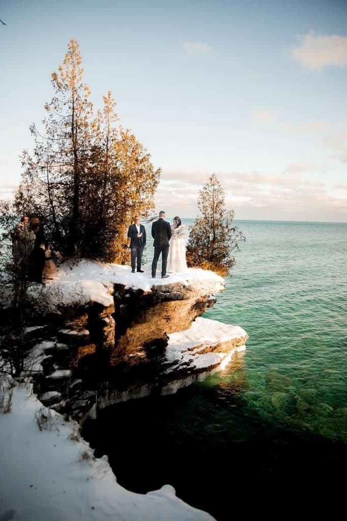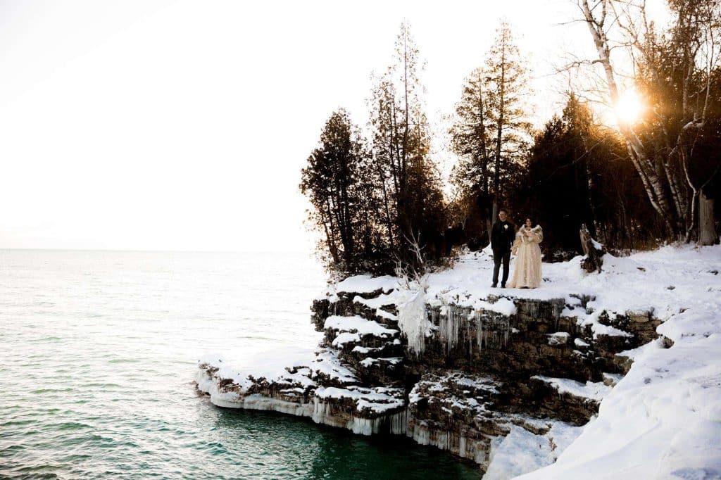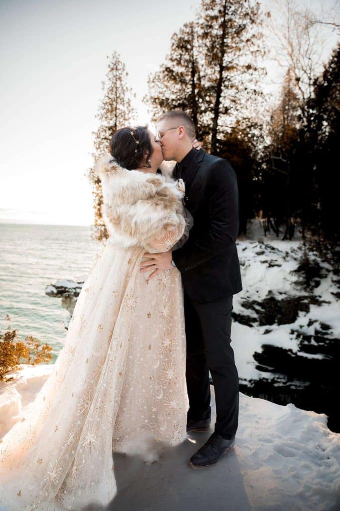 In an elegant, celestial ceremony at Cave Point County Park in Sturgeon Bay the day after Christmas, Jenn and James renewed their vows, which they had written themselves, with a few close family members present. James’s brother carried out the duties as the officiant, and the twins were able to witness their mother and father reaffirm their everlasting bond. Stunning photographs were captured at all angles of the romantic moments by Wild Elegance Photography. After the ceremony, the couple hosted a celebratory dinner with the people who mean the world to them.