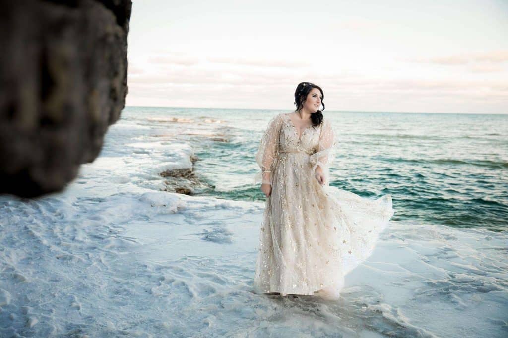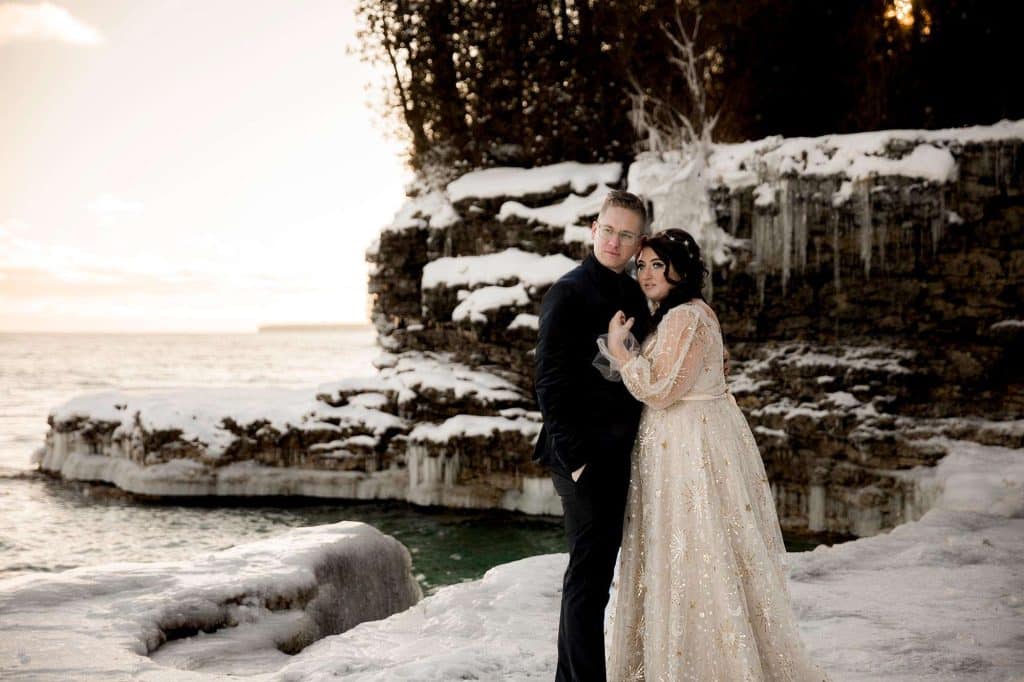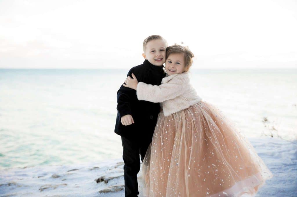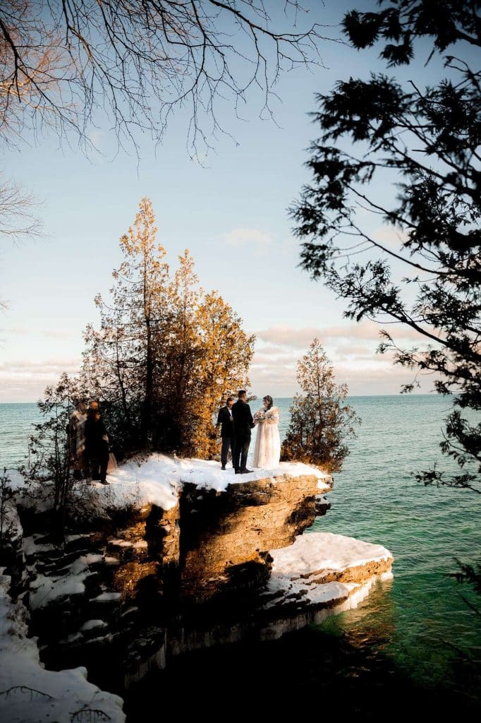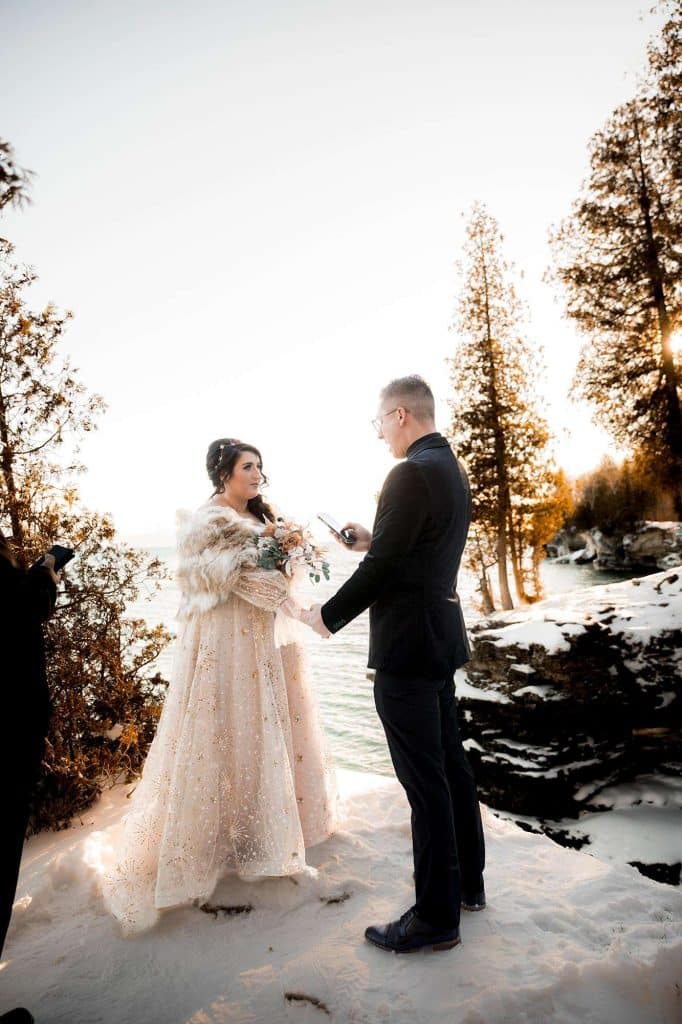 In an elegant, celestial ceremony at Cave Point County Park in Sturgeon Bay the day after Christmas, Jenn and James renewed their vows, which they had written themselves, with a few close family members present. James’s brother carried out the duties as the officiant, and the twins were able to witness their mother and father reaffirm their everlasting bond. Stunning photographs were captured at all angles of the romantic moments by Wild Elegance Photography. After the ceremony, the couple hosted a celebratory dinner with the people who mean the world to them.