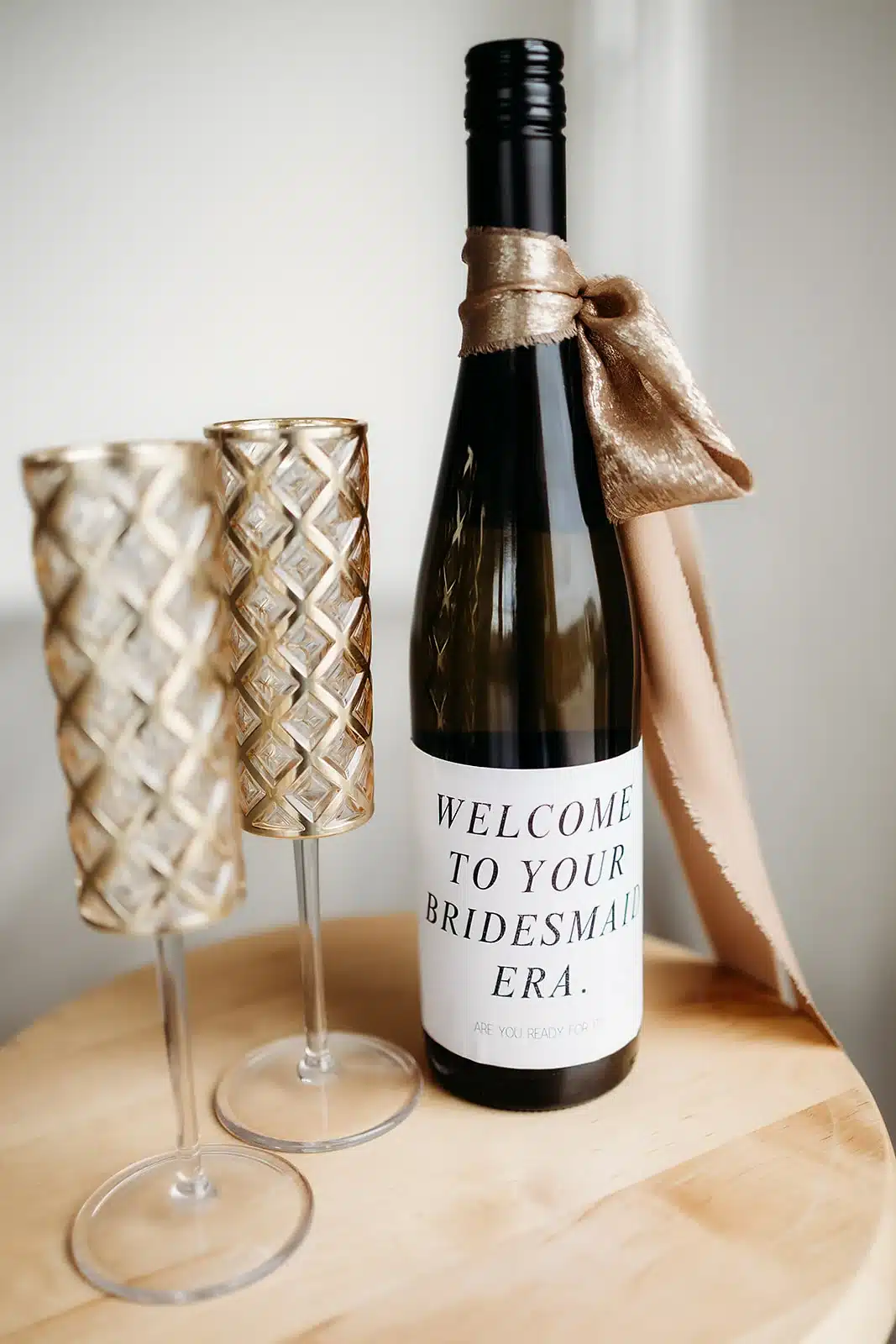 Another crowd favorite is a custom bottle of wine or champagne with a label that says something fun like “Welcome to Your Bridesmaid Era” or “Pop the Champagne — You’re a Bridesmaid!” Pair it with a cute note and you’ve got an instant celebration.