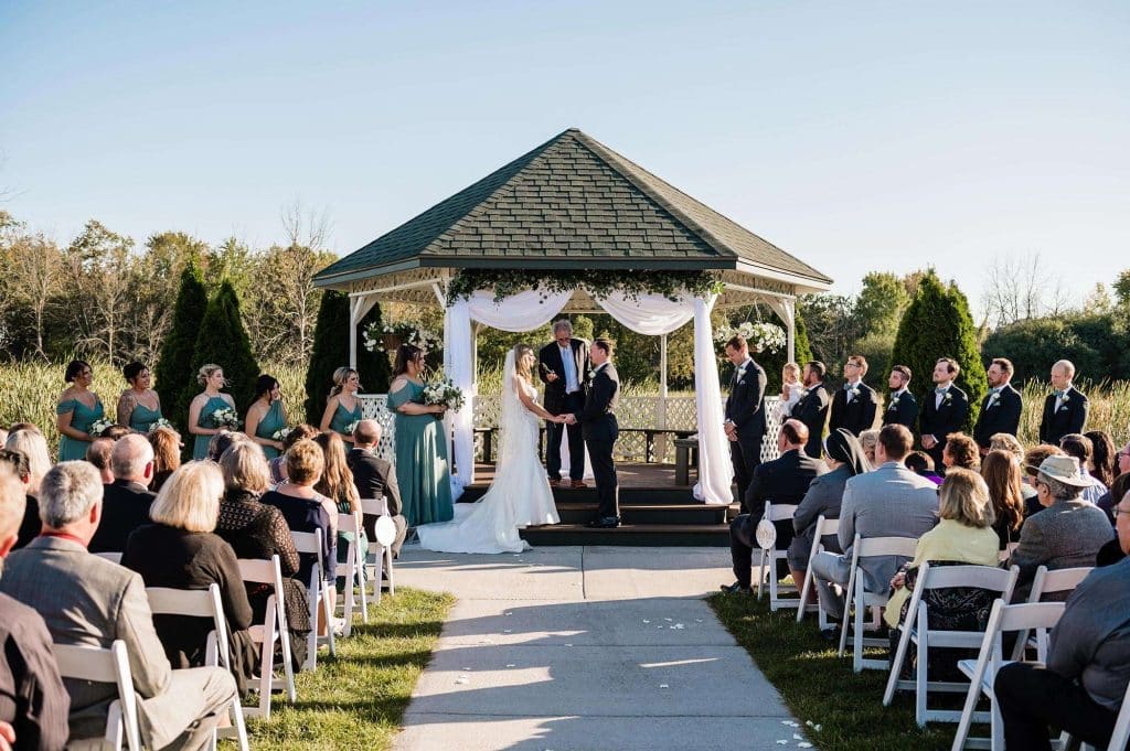 Hannah and Paul and their guests enjoyed a cocktail hour, plated dinner, and individual cakes on each and every table. The meals and drinks were all catered by The Florian, and the cakes were designed and baked by Simma’s Bakery in Wauwatosa. Conveniently, the cakes even doubled as the centerpieces and cut down on the time to serve the cake.