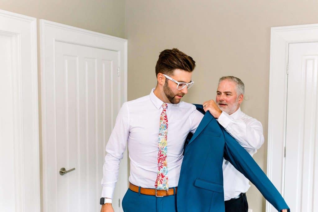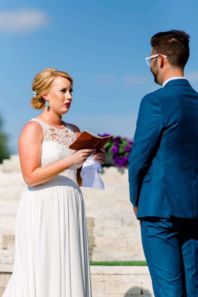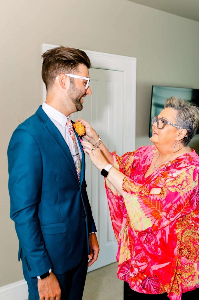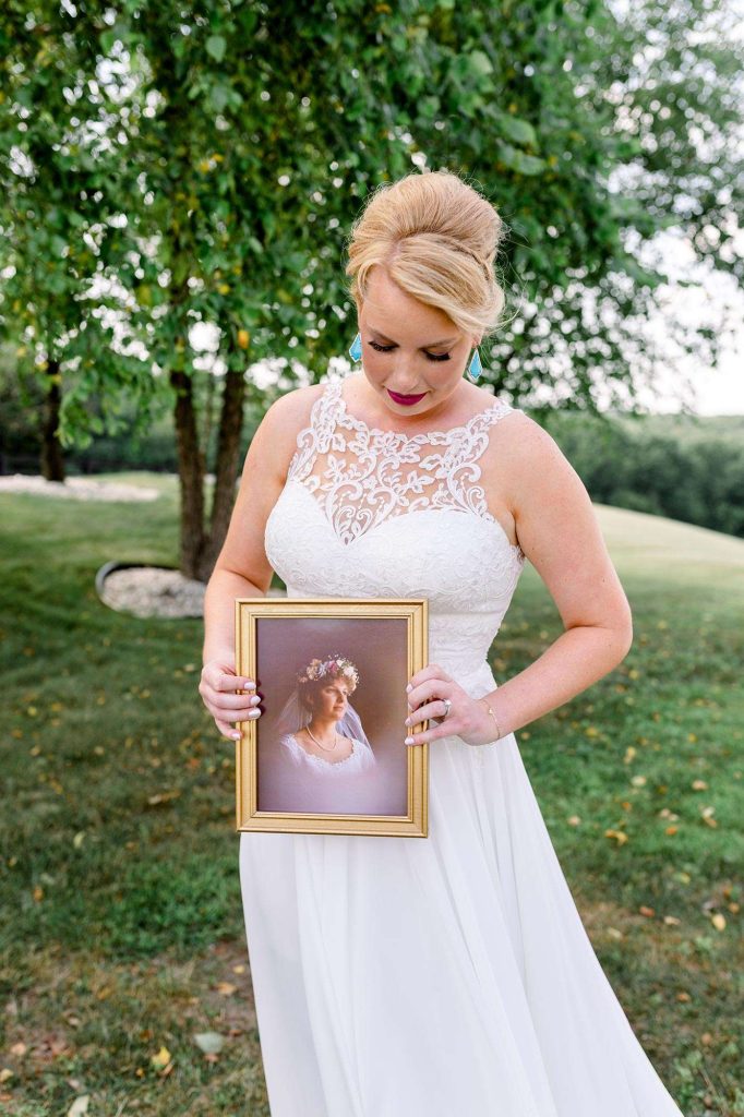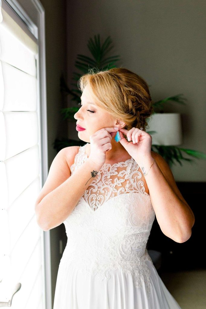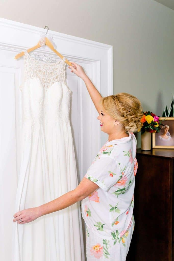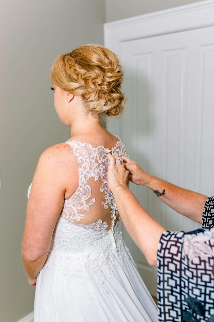 Because Grace’s mom passed away a number of years ago, they made sure to keep her memory close throughout the wedding day. There was a large photo of her just to the side of the ceremony, so she was present for that. Grace kept a photo of her mom nearby while getting ready, and she also added lace from her mom’s wedding garter to her bouquet. Lastly, her mom’s engagement ring was made into a bracelet for Grace’s “something old.”