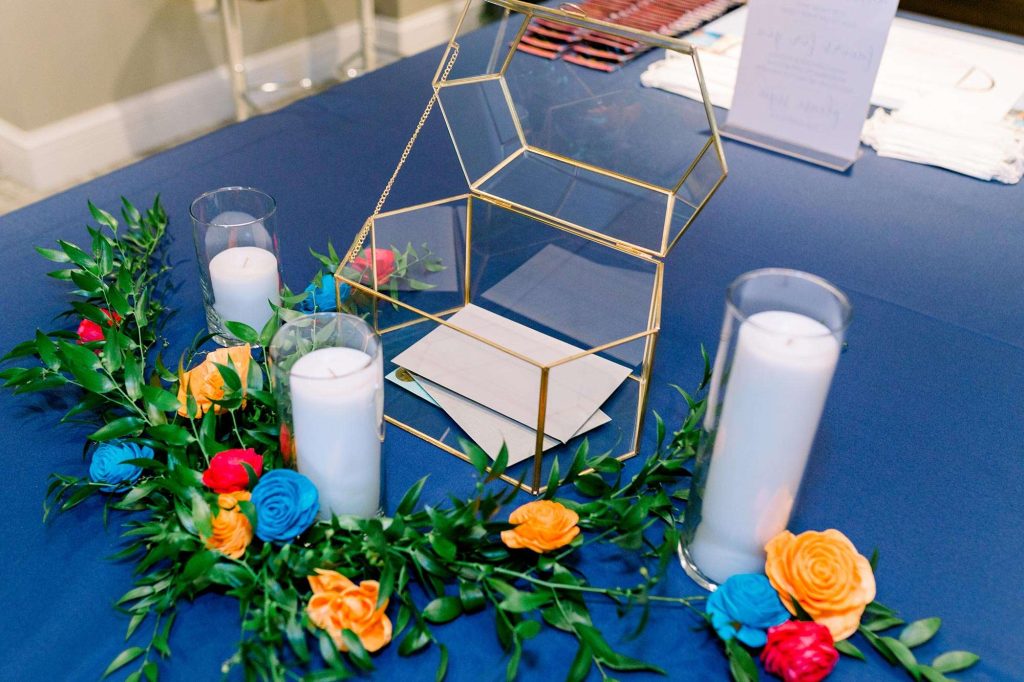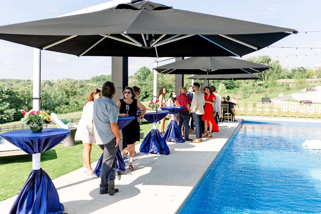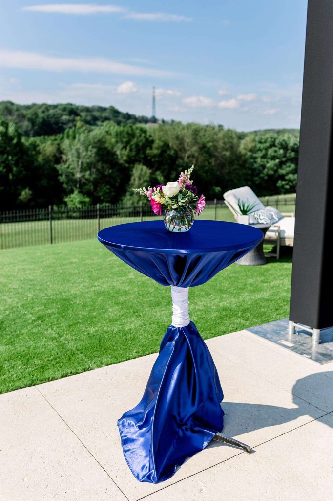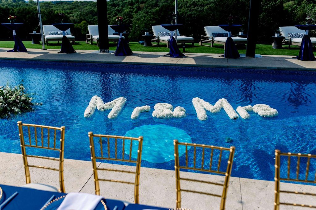 | Flowers | Ambrosia Events did the floating flowers in the pool along with the greenery on the food table. The flower centerpieces on the high-top tables came from Sendik’s. The bride’s bouquet and the colored flowers in the greenery were wood and came from Southern Blooms Co (online) |