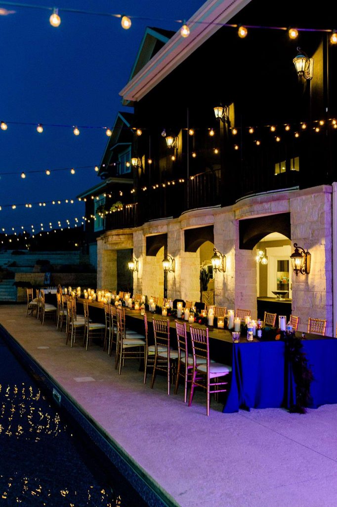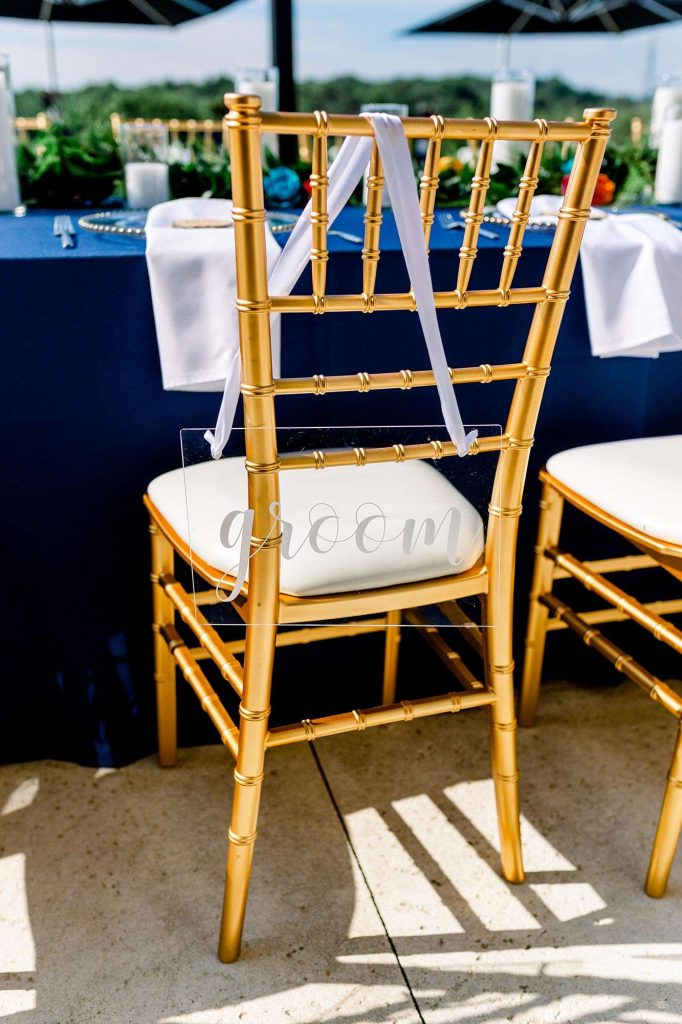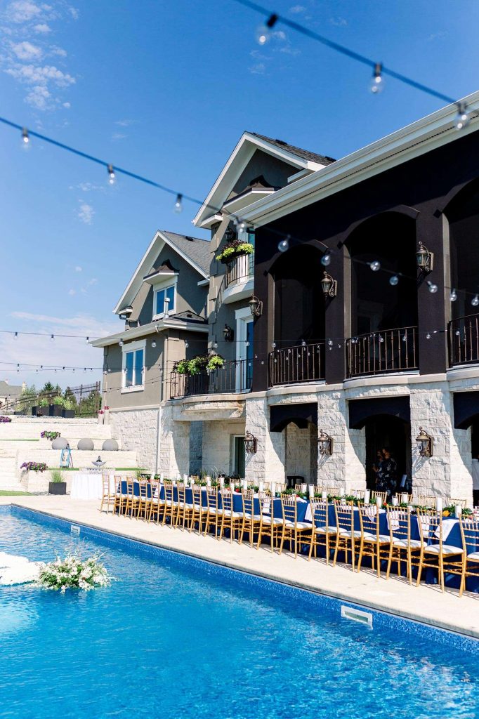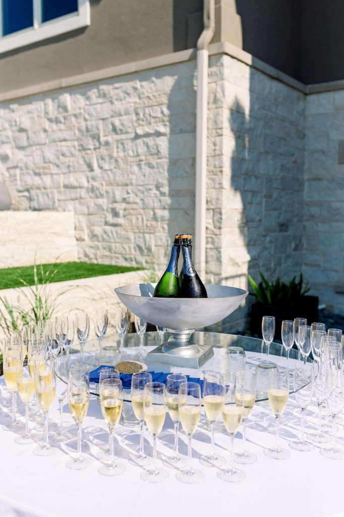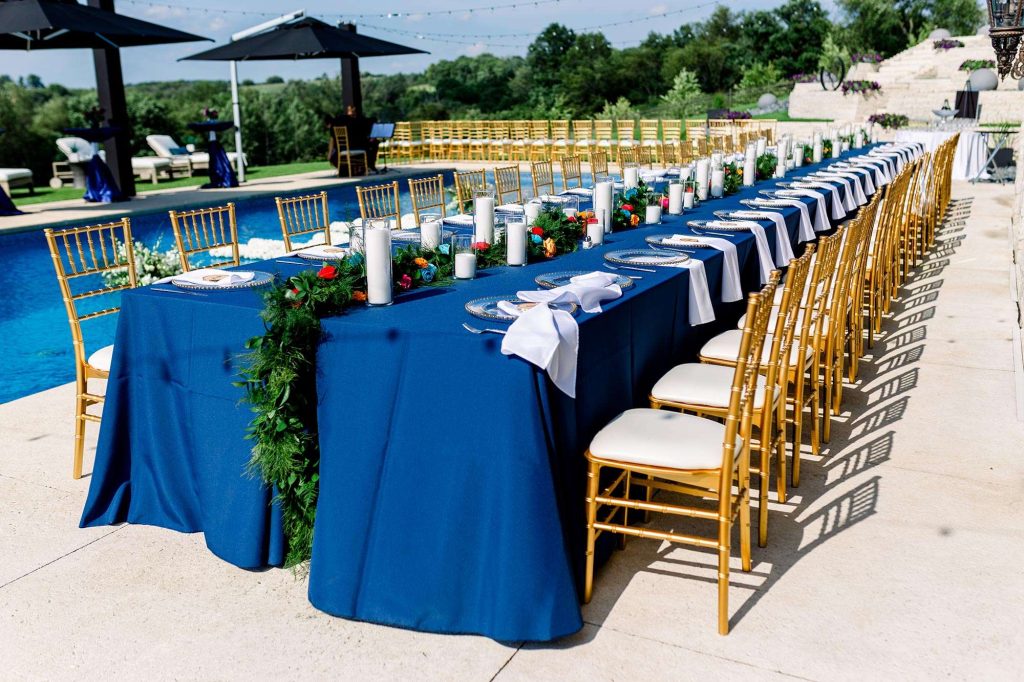 To help bring the backyard wedding day together, Grace’s stepmom turned to Oscar Sanchez from Ambrosia Events. “Oscar helped with everything from the start of the planning to the day-after clean up. He was great.” Ambrosia Events also provided linens, chairs, and decor such as greenery and floating flowers in the pool.