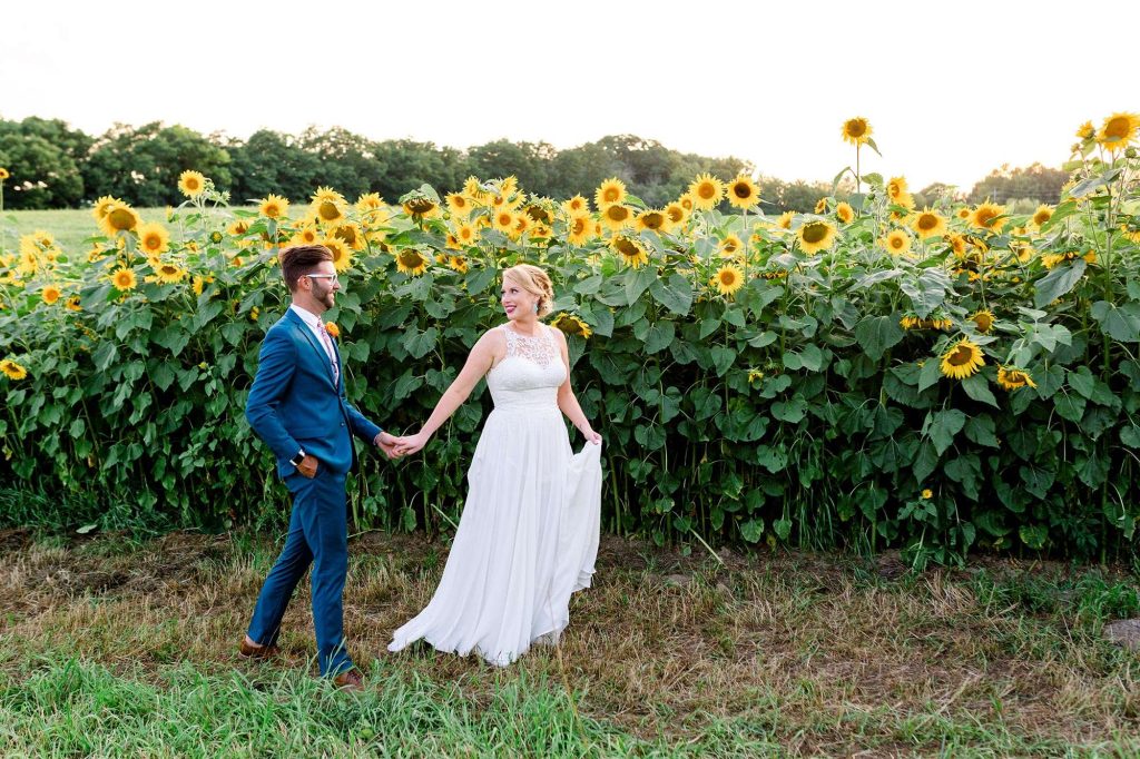 While most of the photos were taken at Grace’s family home, the newlyweds did visit a nearby sunflower field for some unforgettable portraits. “When we got there, there was a group of high schoolers taking photos too. They saw us and started playing Bruno Mars’ ‘Marry You.’ Our photographer invited them over to dance with us for a moment, so we got some fun photos from that experience!” Grace particularly loved getting away to the sunflower field: “We felt like ourselves, not at a wedding. No pressure, just us in each other’s presence, having fun.”