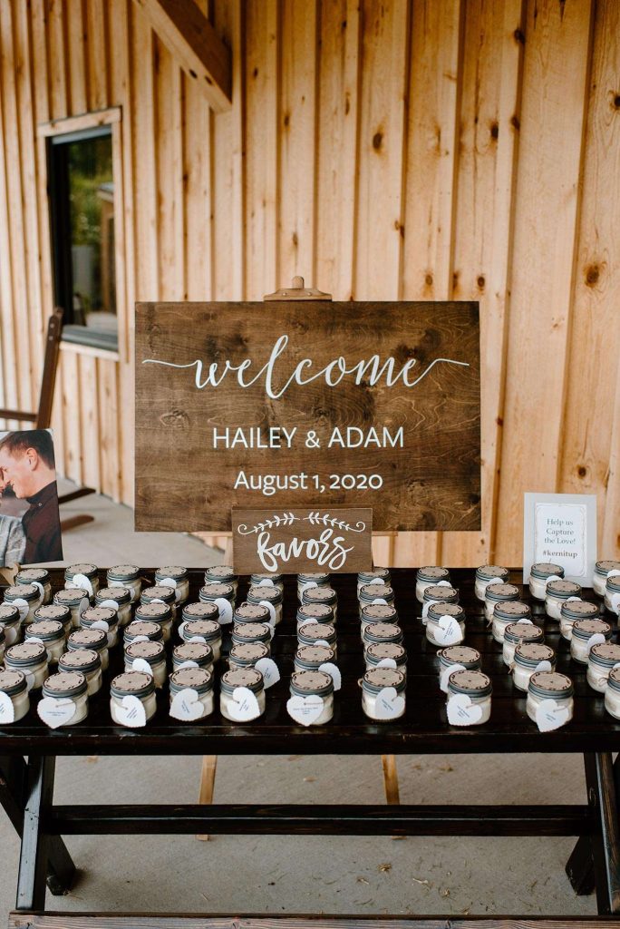 For wedding favors, guests were given candles from Riverside Soy Candles, which is based out of Hailey’s home town of Duluth, Minnesota. “We personalized them, and they were the perfect gift to fit our theme.”