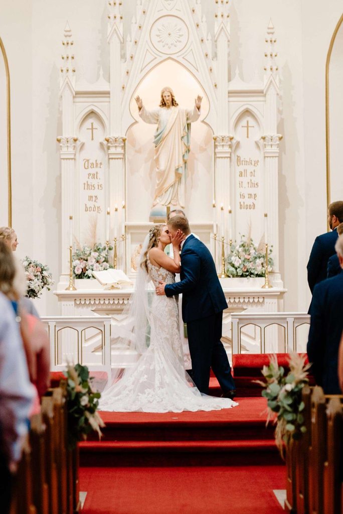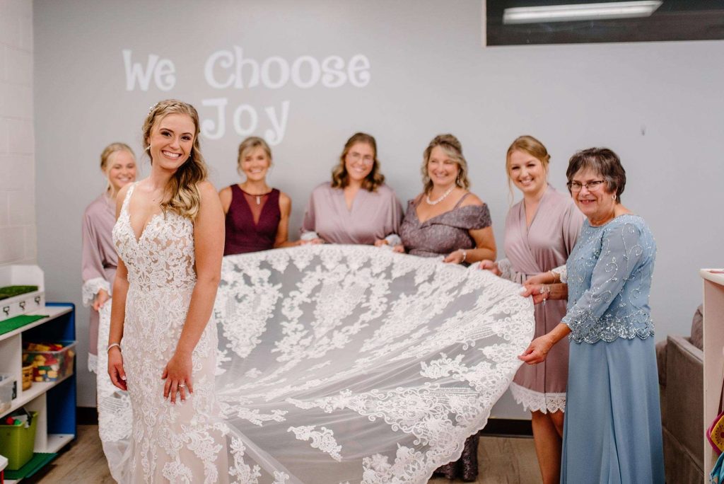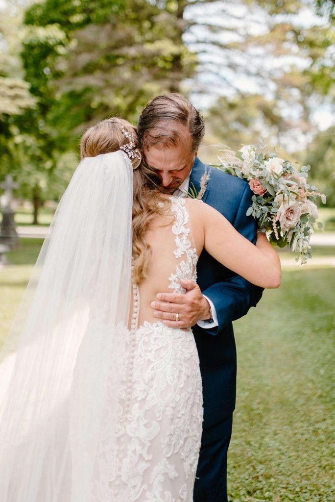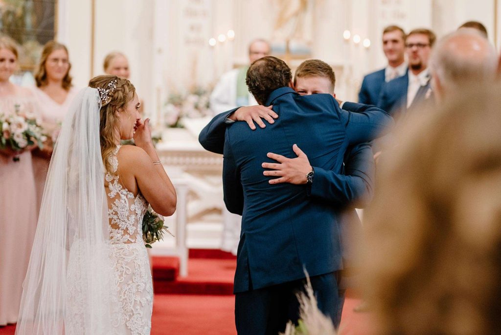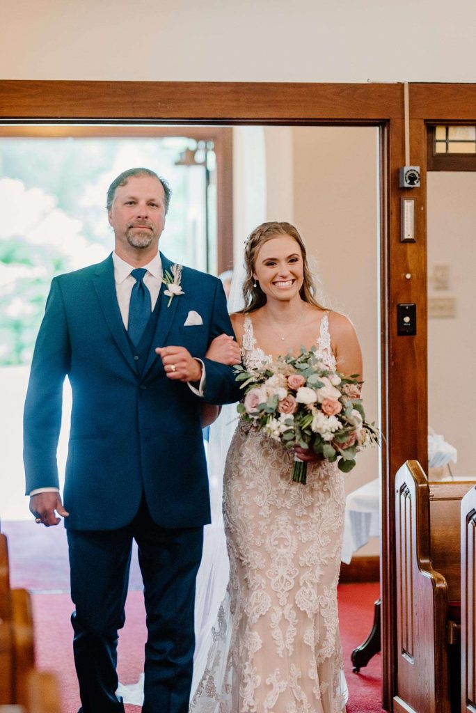 The ceremony took place at Trinity Lutheran Church of Freistadt in Mequon, Wisconsin. “It’s not only my grandparent’s church, it’s also the oldest church in Wisconsin,” Hailey says. “It’s absolutely beautiful with historic grounds.” Hailey’s favorite moment was her first look with her dad and her younger brother. “He’s only 14 and such a softy — he started bawling.”