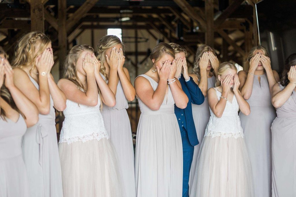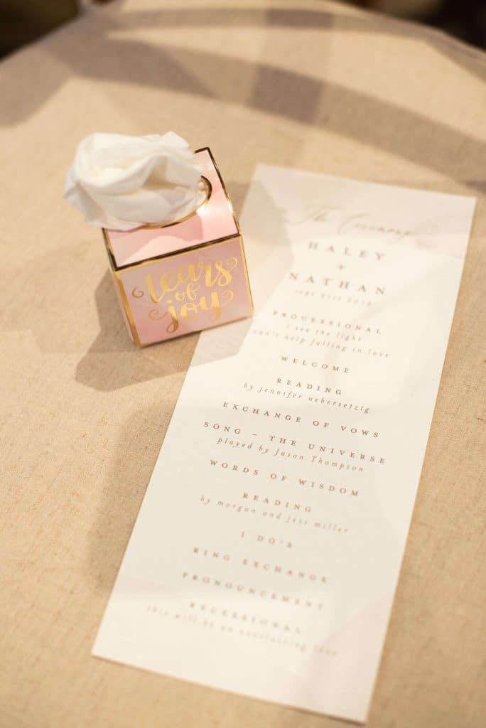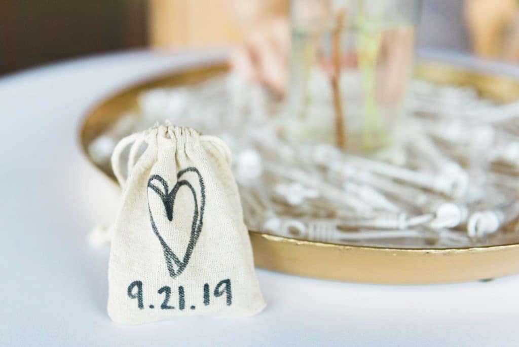 In addition to building the ceremony arch, Nate, Haley, and their families took on a bunch of DIY projects to make their wedding day as special as can be. The bride and groom built a polaroid picture frame stand for the photo booth. Haley made small tic-tac-toe bags for guests to play while seated. Her aunt made the flower girls’ skirts and also sewed Haley’s mother’s veil under the bride’s own veil for a personal touch. Haley made a bracelet for her mother using one of her grandmother’s earrings as a centerpiece.