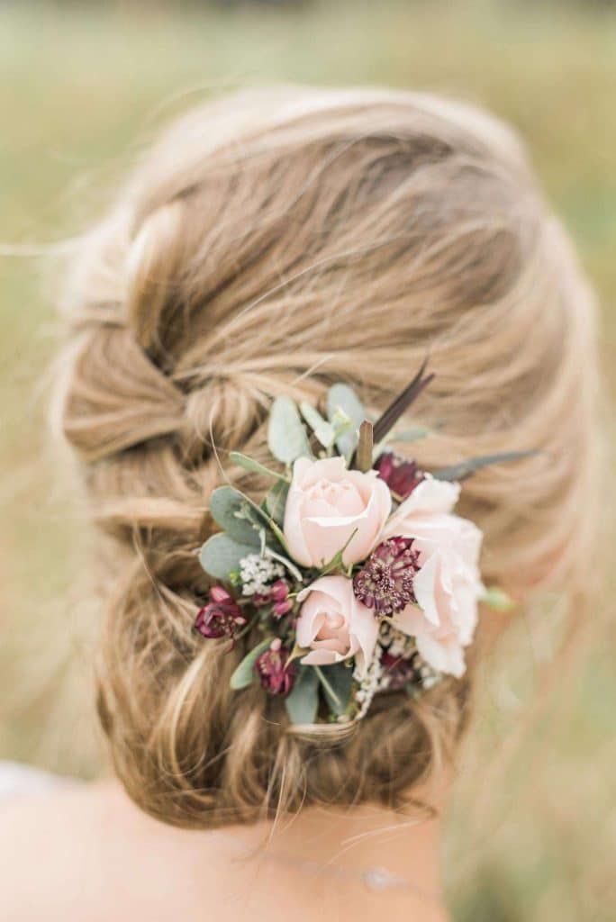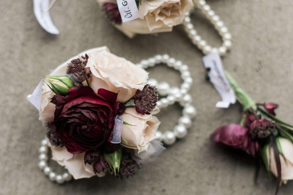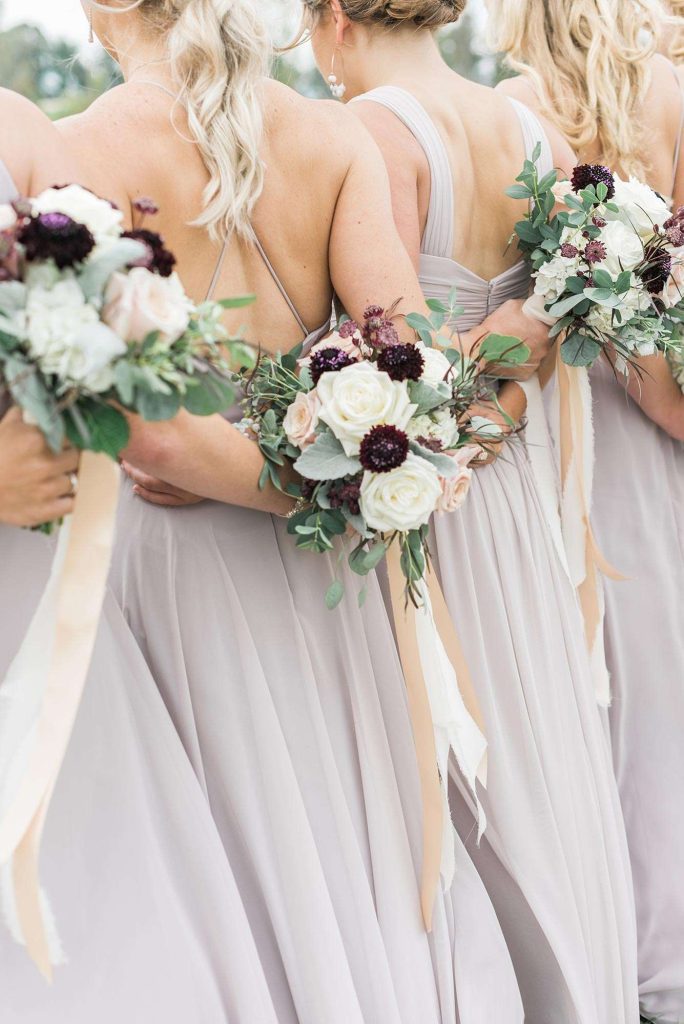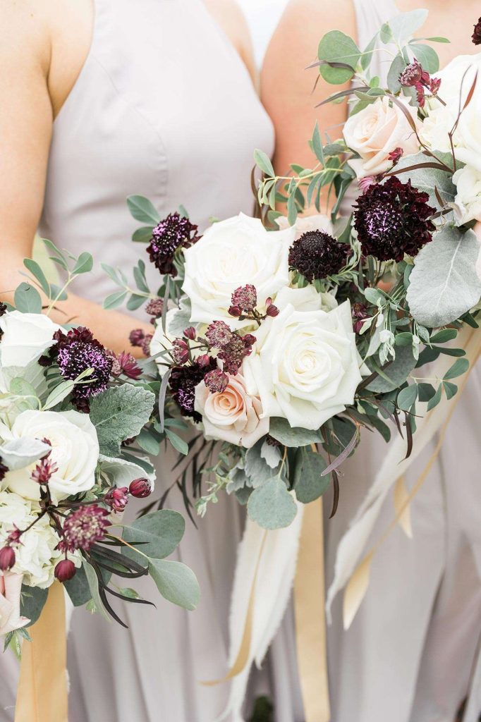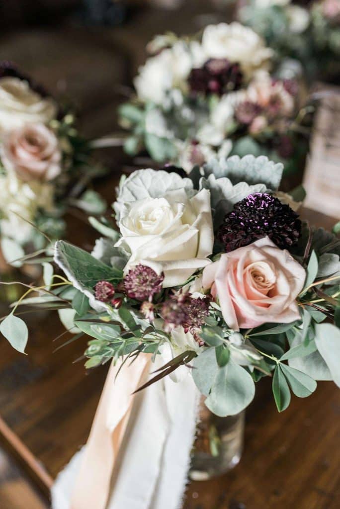 The arrangements were mostly greens with blooms in shades of white and cream with pops of plum- and wine-colored flowers. Nate and Haley worked with Bank of Flowers for all their arrangements. “We can’t recommend them highly enough. They went above and beyond!” Haley says owner Melissa was especially helpful: “I wanted bouquets that had a lot of texture and dimension. I showed Melissa pictures of what I liked and described things I wanted to change, as well as my overall vision for the wedding. Our arch pieces looked outstanding and I audibly gasped when I saw my gorgeous bouquet.