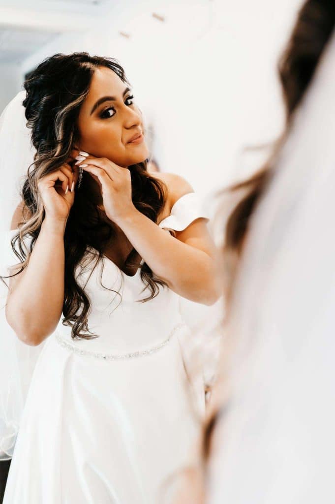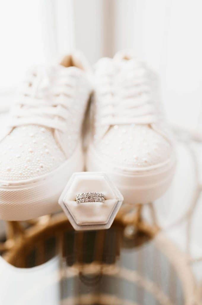 For Jess’ birthday in October of 2019, Scott got her plane tickets to Denver for a trip in January 2020. “He made it seem like it was going to be just us two,” Jess says. “But in reality, he had reserved an Airbnb and invited my sisters, brother, and our closest friends.” During a hike at Red Rocks, Jess realized there were roses leading to the spot Scott picked to propose. “He hired a photographer and all! After he proposed, everyone came out of hiding.”