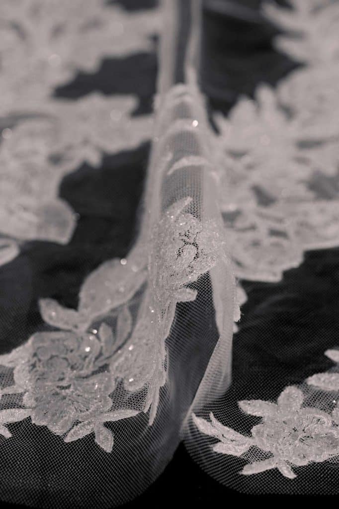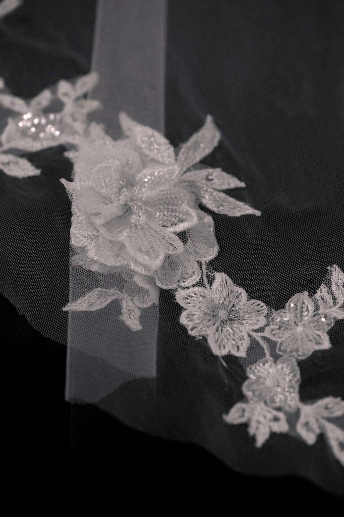 Each of the 25 veil designs are inspired by their own feminine personality, featuring embroidered shimmer lace, 3D embellishments and luxurious tulle. Available mostly in cathedral length with traditional blushers (for grand entrances and “unveiling” moments), each veil is custom made and ranges in price from $450-$1,300. Visit Rita Vinieris’ website for more information
