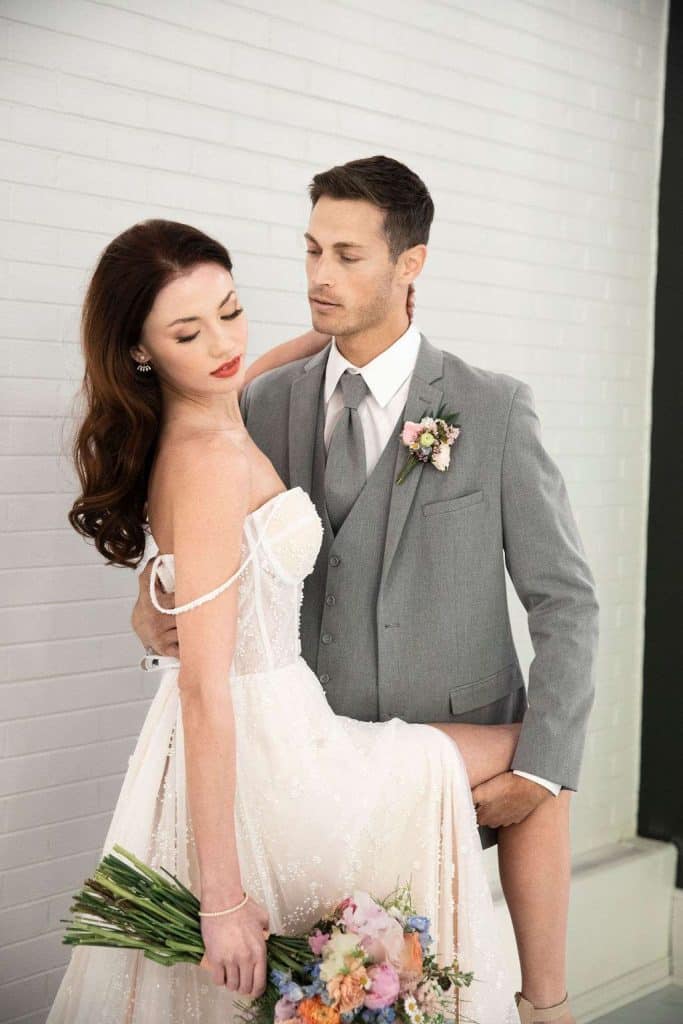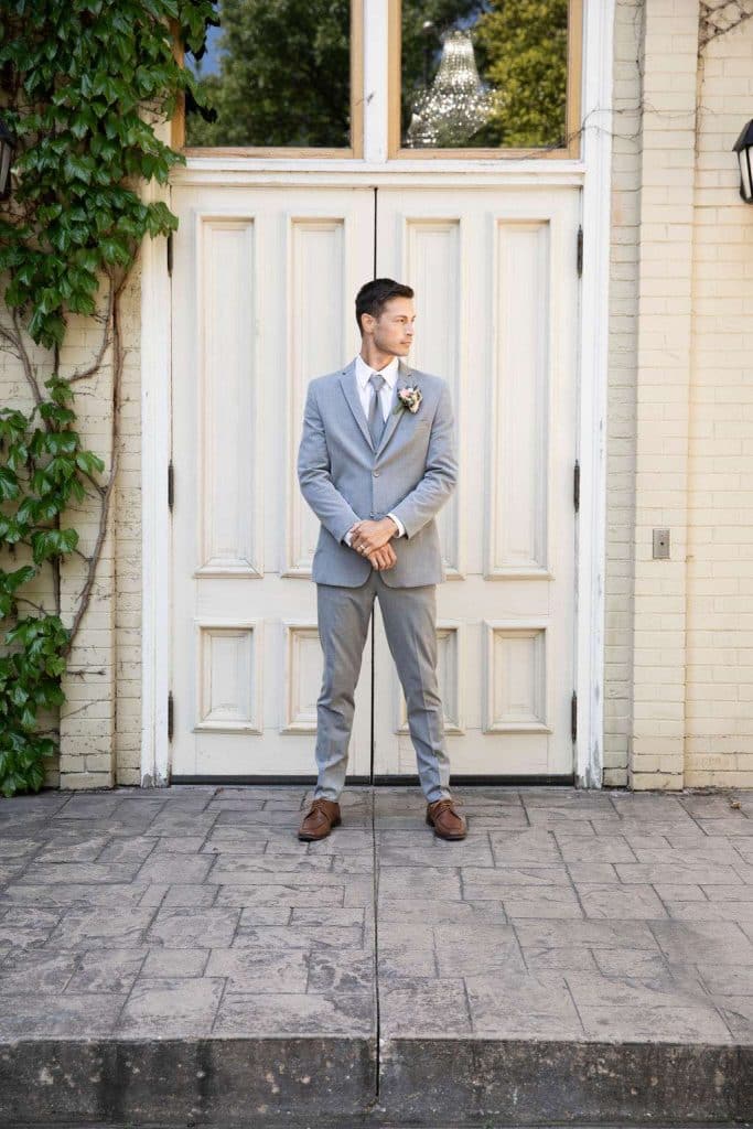 A well suited groom stands out. DuBois Formalwear offers a wide variety of options from tuxedos to suits in all different colors. We showed off how a variety of colors can accent your wedding style. Some of our favorites for this shoot were a vibrant navy, soft grey and light tan.