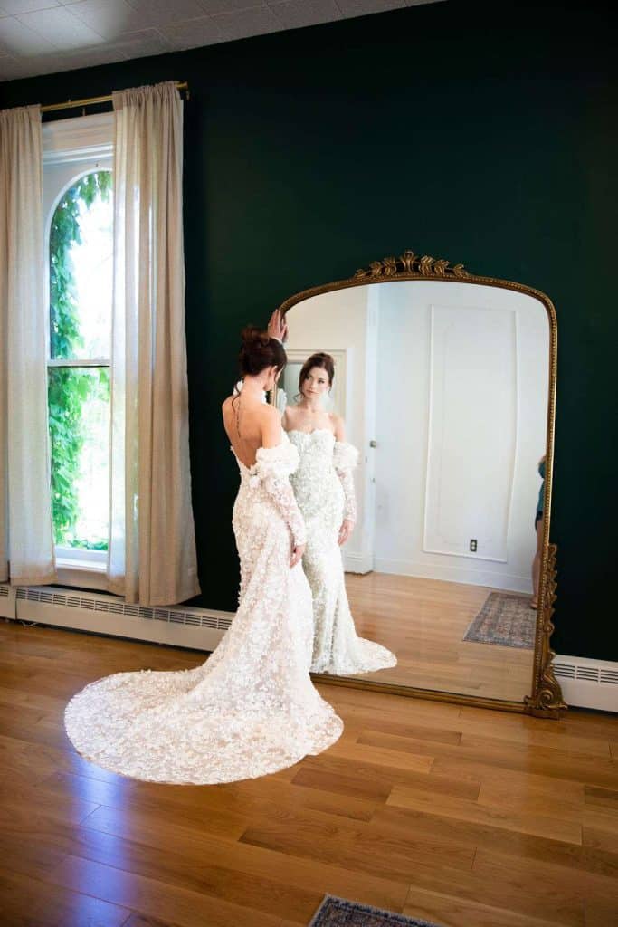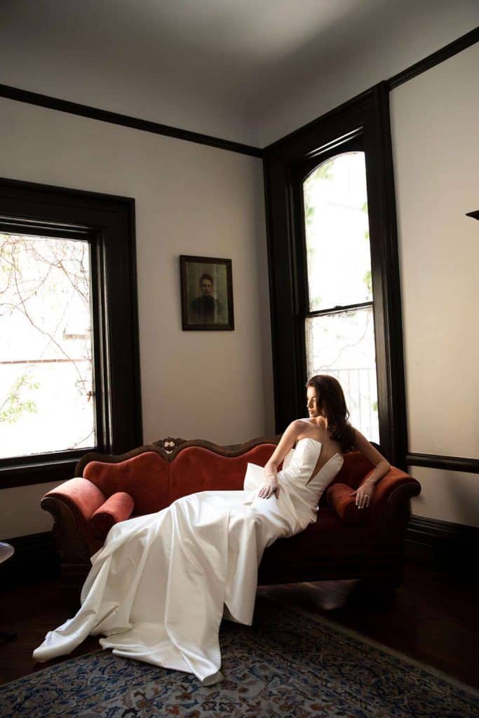 We were excited to pull a wide variety of gowns for this shoot. Soft and romantic, with bits of flair. Wedding gowns were compliments of Bliss Bridal in Brookfield, WI. They offer a wide variety of wedding gowns for all styles and shapes. We showed off wedding gowns with bell sleeves, sparkle, colorful accents, rosettes and more! Miss Ruby Bridal Boutique, located in Milwaukee, provided gorgeous bridesmaids dresses as well as a sexy short bridal gown that was perfect for the reception scene.