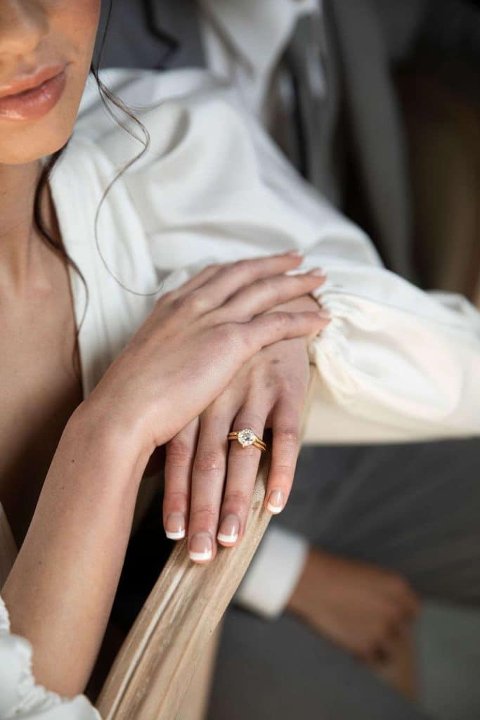 A wedding ring represents so much in your love story. It symbolizes eternal love and commitment, so you want to be sure it defines your style and character. Craig Husar Fine Diamonds & Jewelry Designs showed off some of the most current popular styles. The classic gold band and solitaire round diamond was accented with a unique shaped simple gold wedding band. As well as an antique looking white gold engagement ring with a halo. Also provided were men’s wedding bands, a favorite of ours being a gold band with a black accent through the center.