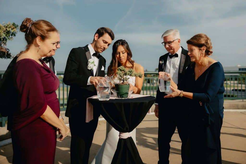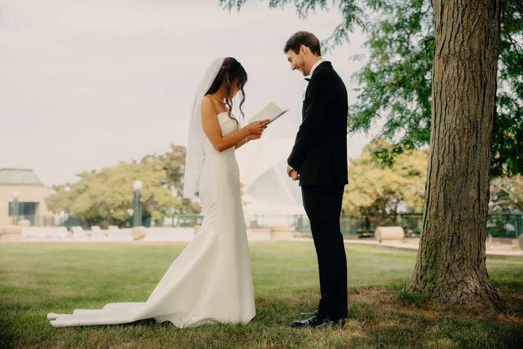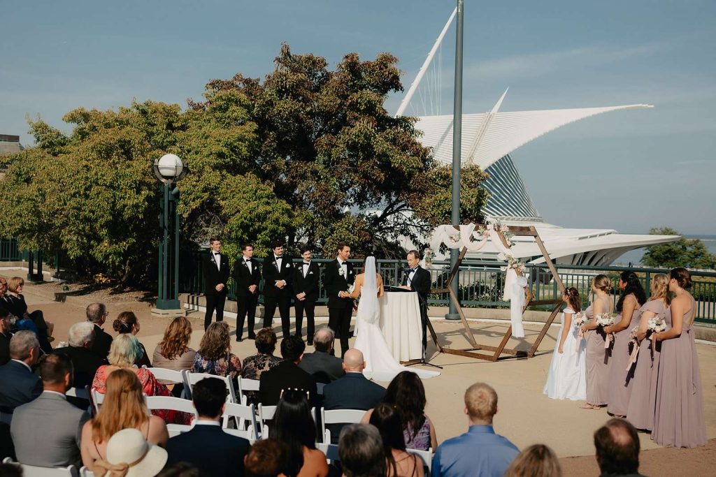 “We actually randomly toured the Miller Room as a joke because we thought it would be funny to be the Millers at the Miller Room in the home city of Miller Brewing Company! We loved that it highlighted Milwaukee’s downtown high rises, the iconic art museum, and breathtaking lake! We ended up loving the venue and it was perfectly located downtown for our many out of town guests!”