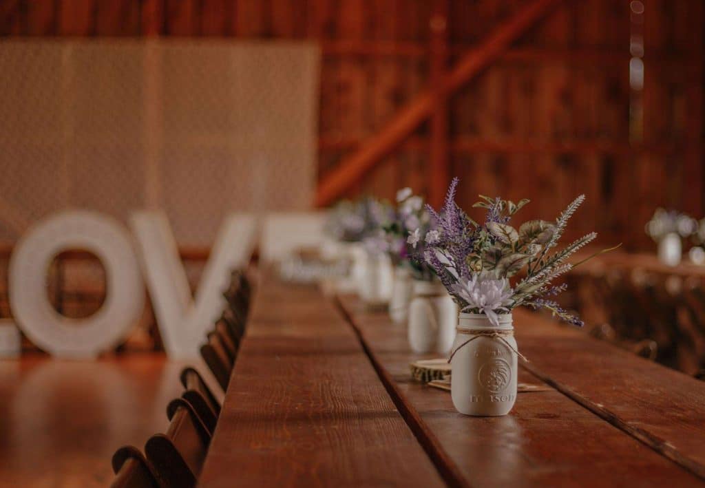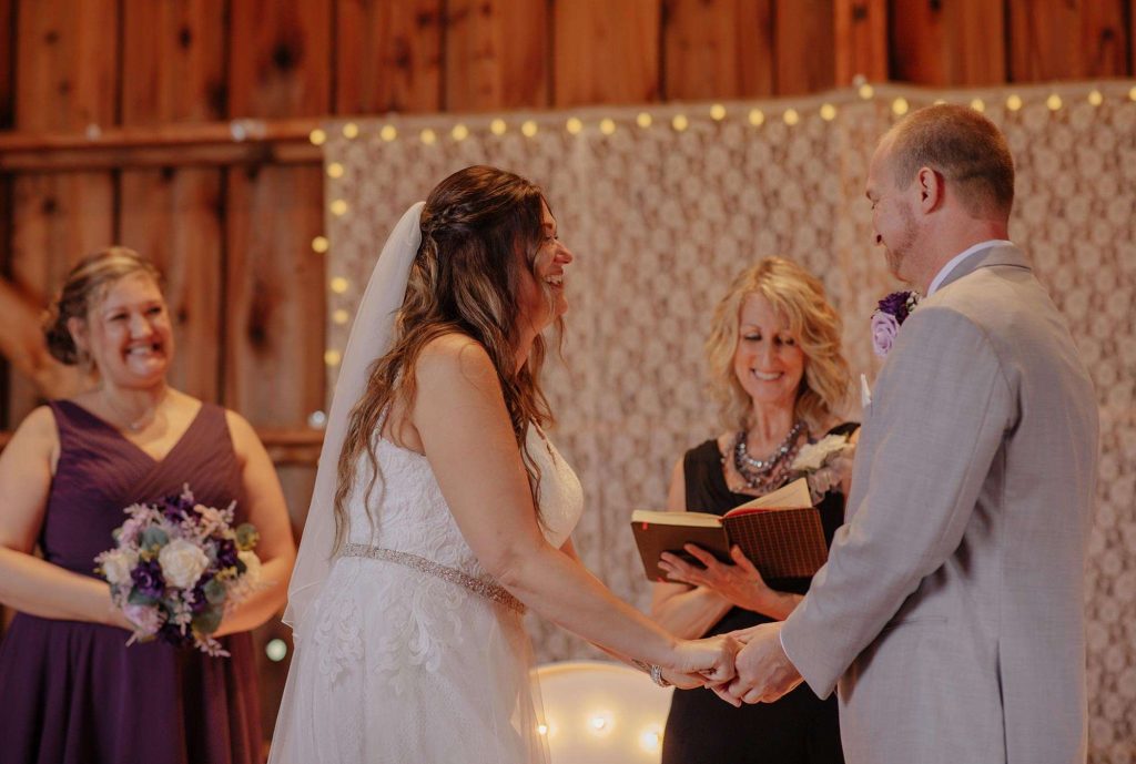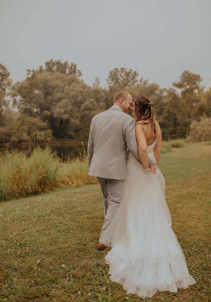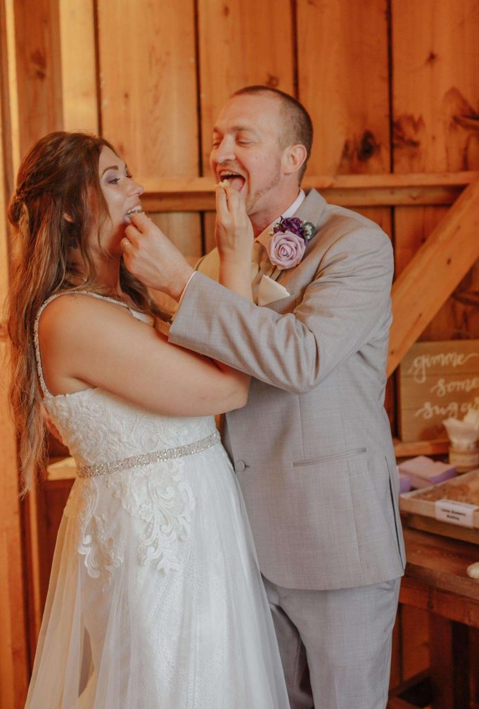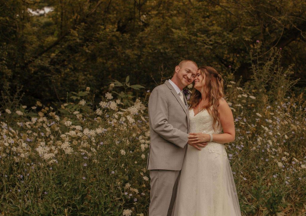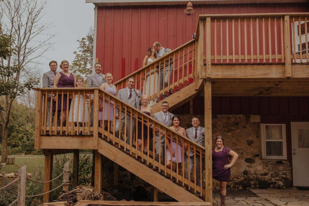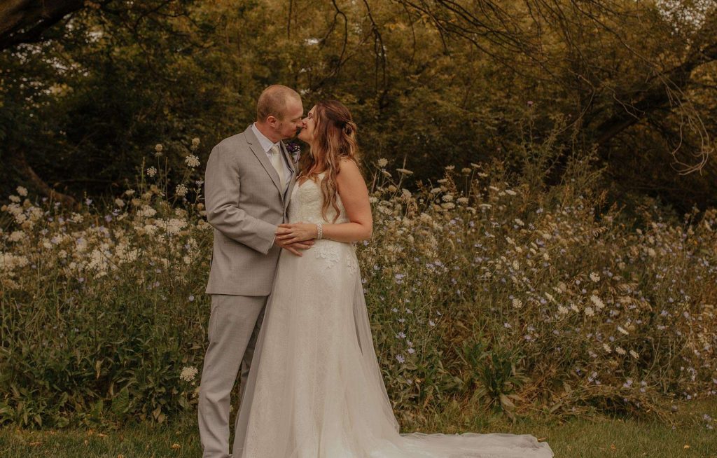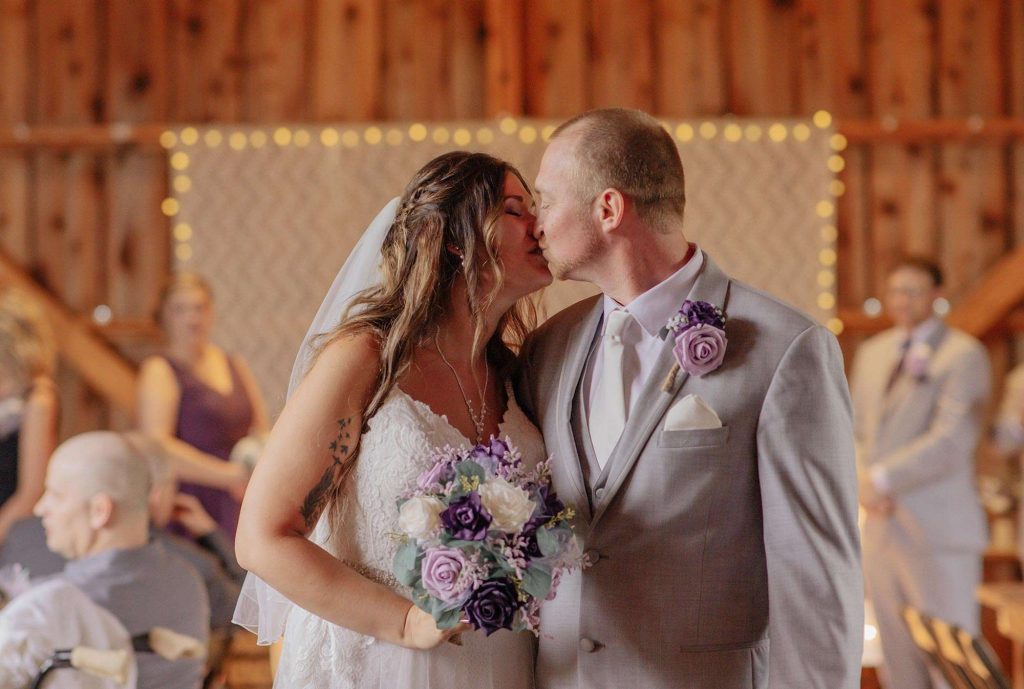 Dan and Jessica planned a rustic wedding for August of 2021. For both the ceremony and reception, the couple chose The Barn at Homestead Hollow in Germantown. Jessica found her gown at Bliss Bridal in Brookfield and landed on a color palette of plum, lavender, and grey.