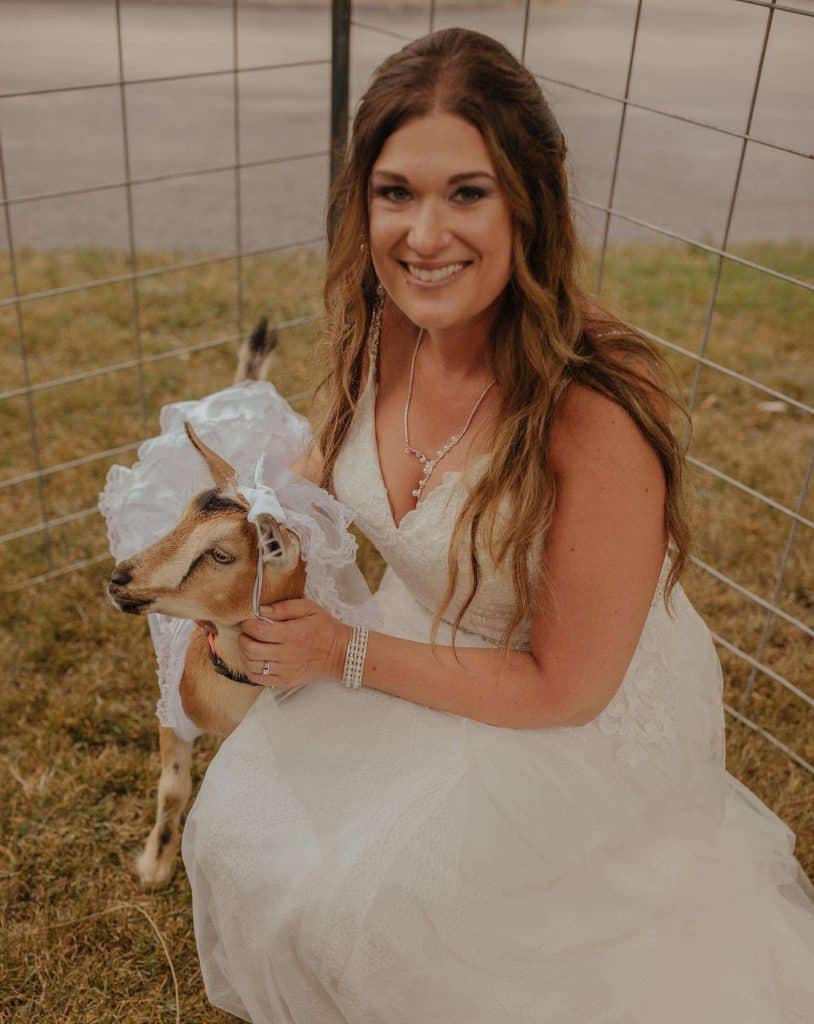 Jessica had been asking her now-husband Dan to buy her a baby goat for years. “They are so cute!” she gushes. Because of Jessica’s obsession, Dan always knew he wanted his proposal to include goats. In October of 2020, Jessica’s day started with a scavenger hunt planned by Dan that included a massage, a mani-pedi, Jessica’s favorite cocktail, a gorgeous bouquet of flowers, and, finally, a 5-course wine dinner at a local farm.