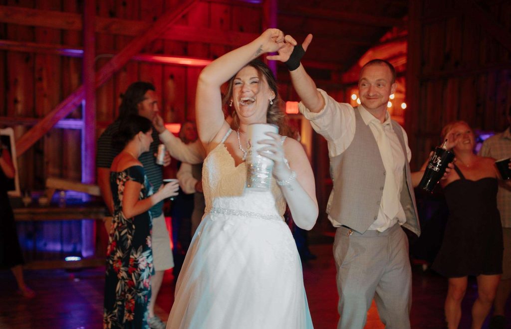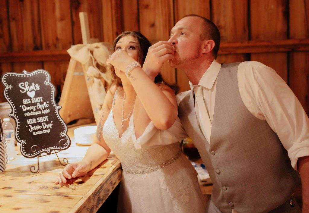 At the reception, dinner was a BBQ buffet and signature shots of the “Jessie Drop” and “Danny Apple,” which both were a big hit with guests. Looking back on the day, Jessica admits she would have highly considered having a day-of coordinator. “Having someone there to worry about the little things would have been great.”