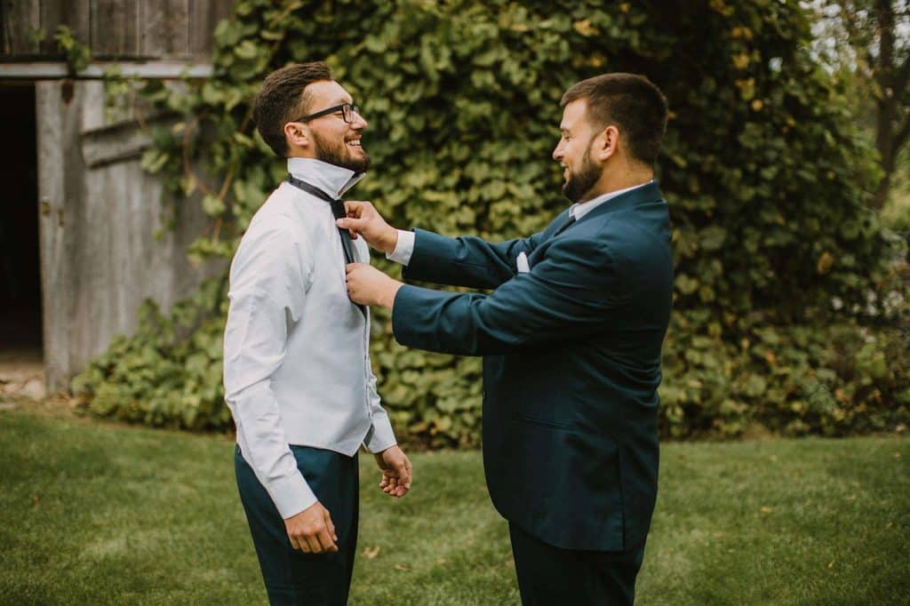 The ceremony started at 3:15. “We had the ceremony outside right before it rained! It was short and simple. We read our own vows.” Jessica says one of her favorite moments of the day was taking photos alone with Justin, captured by DeGroot Film Co.