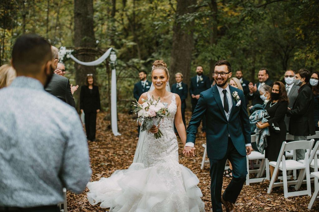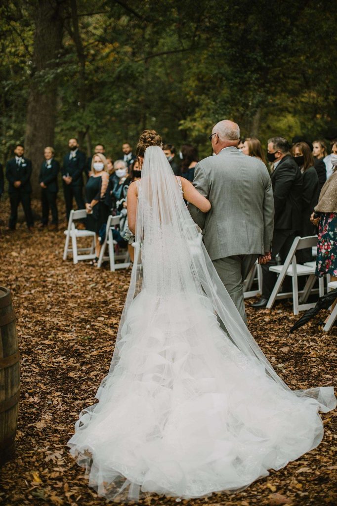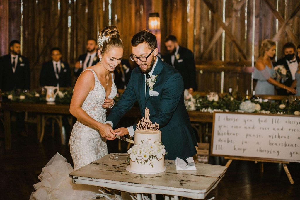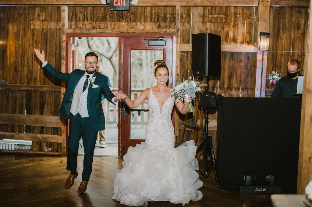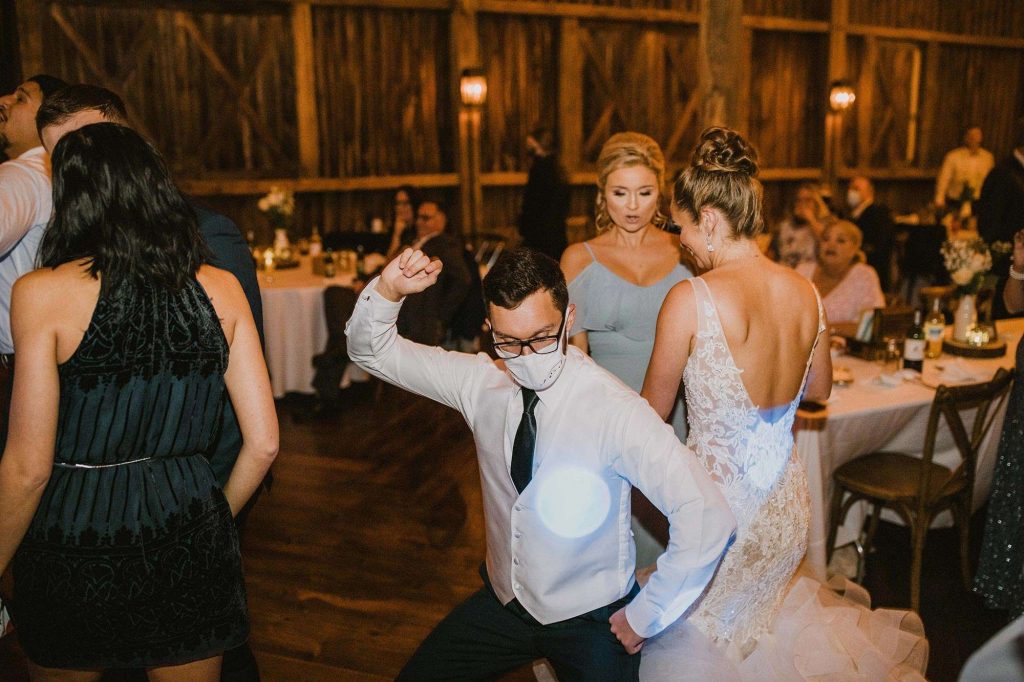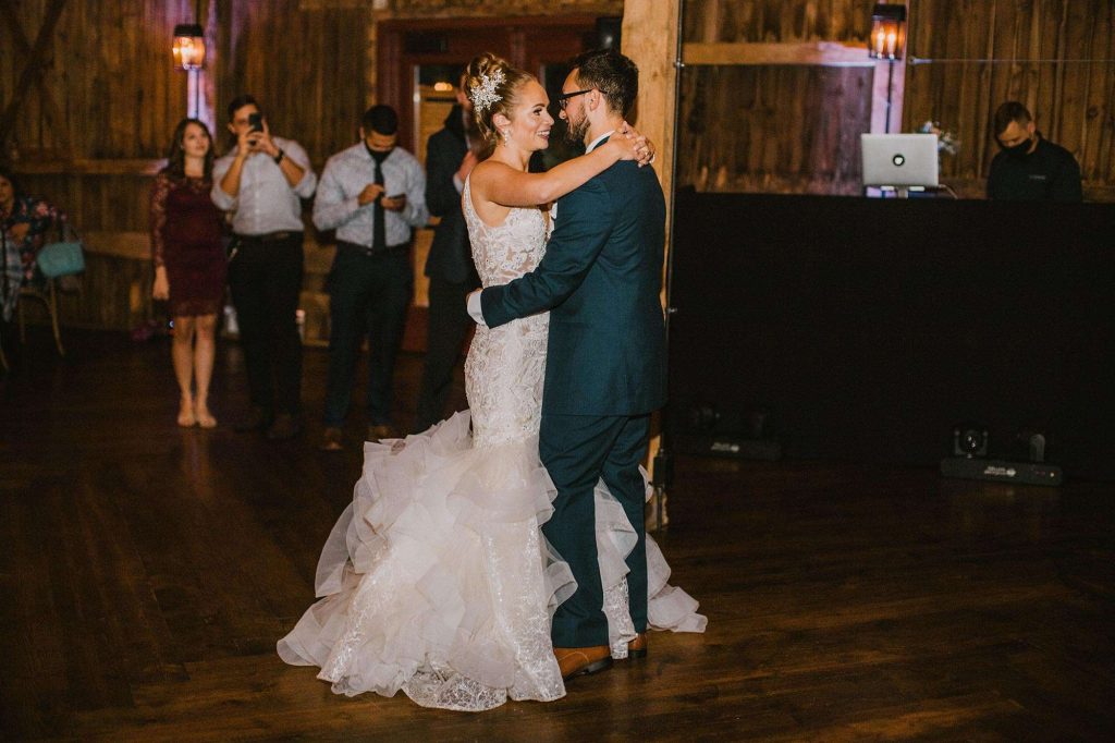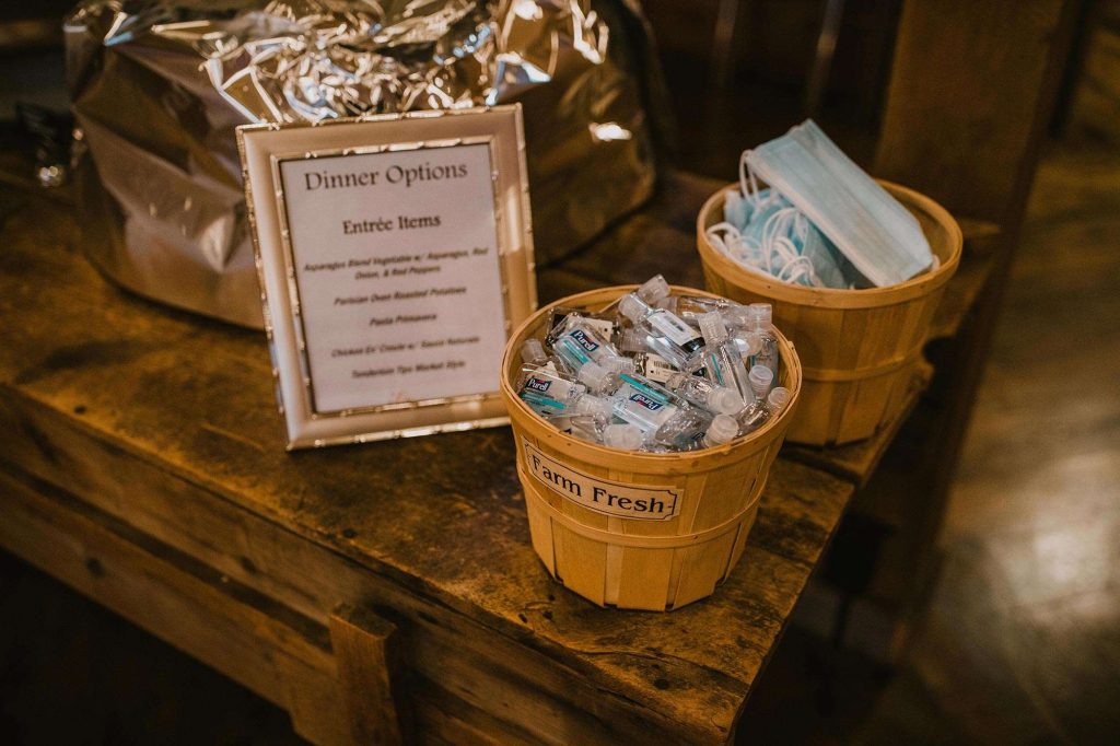 In addition to dresses being delayed, wedding planning was even more stressful than usual thanks to Covid. “We had to worry about safety in every aspect,” Jessica says. “We ordered medical masks for guests, sat people in groups we knew they’d be interacting with throughout the night, supplied hand sanitizer, and had to be flexible with planning as things were constantly evolving and changing.”