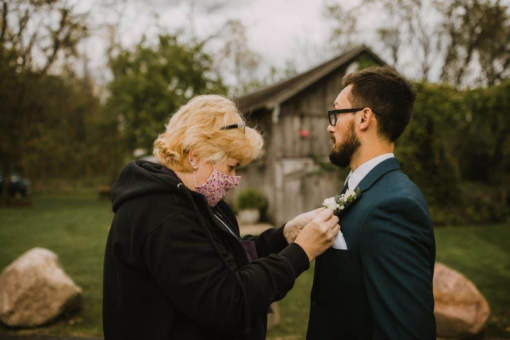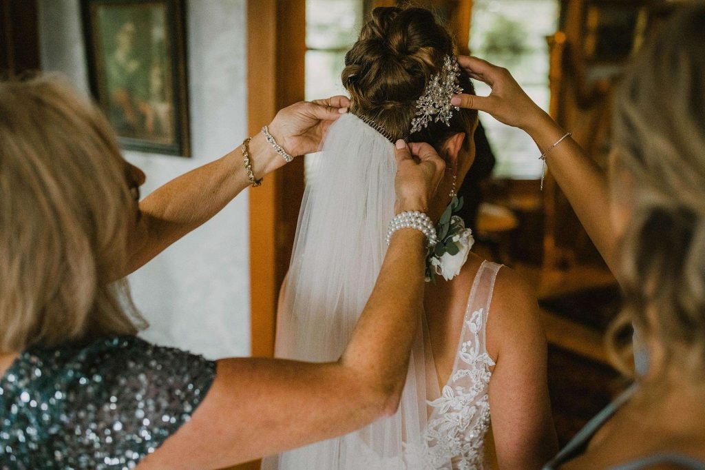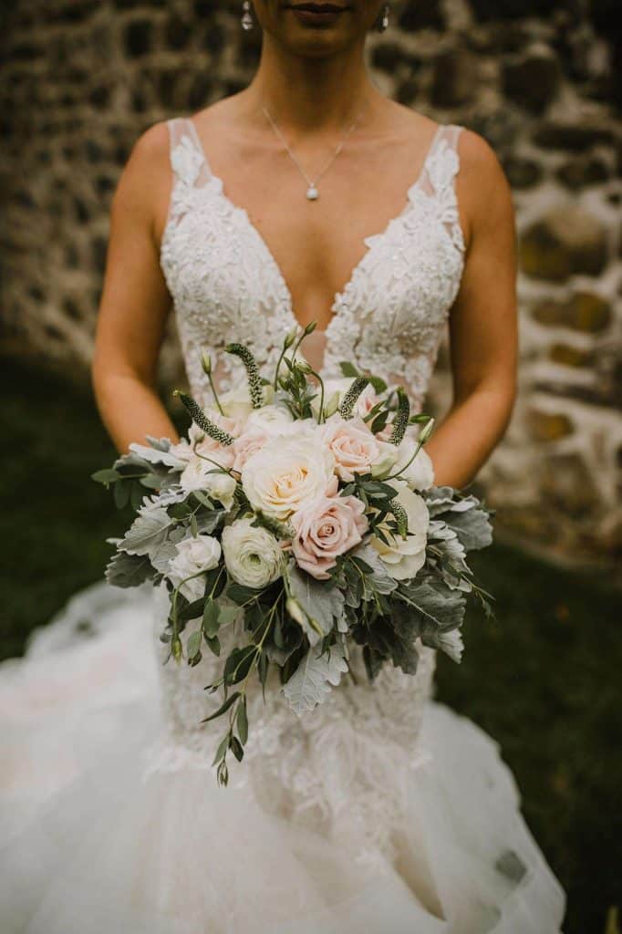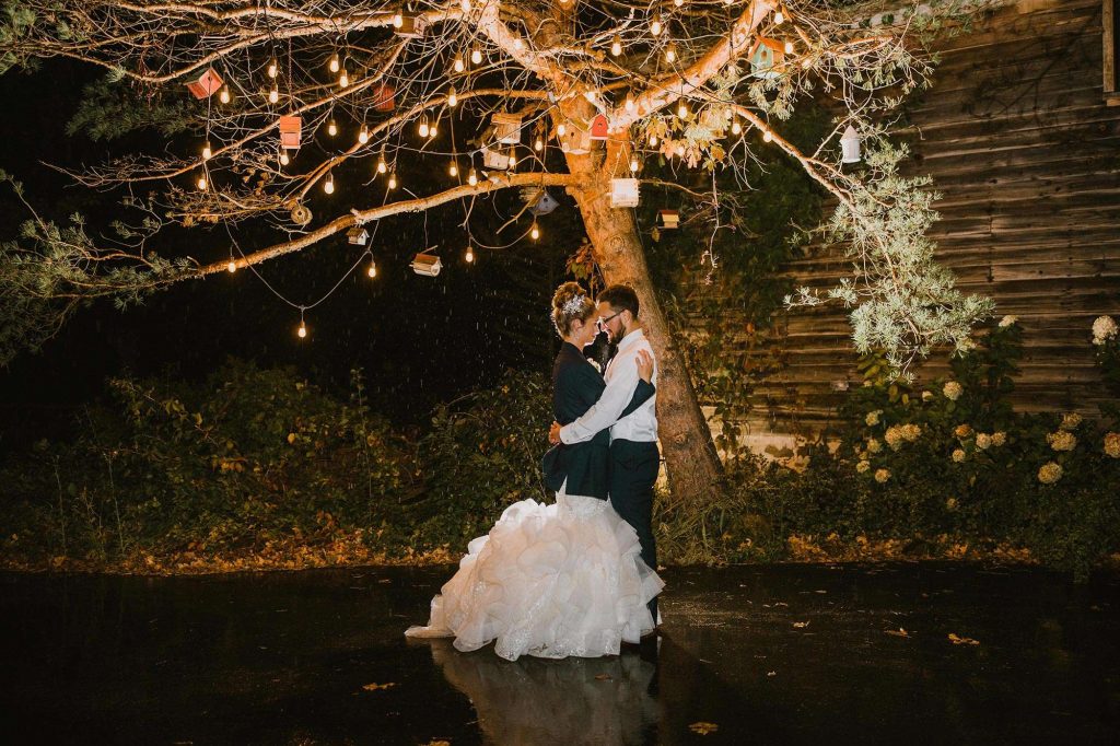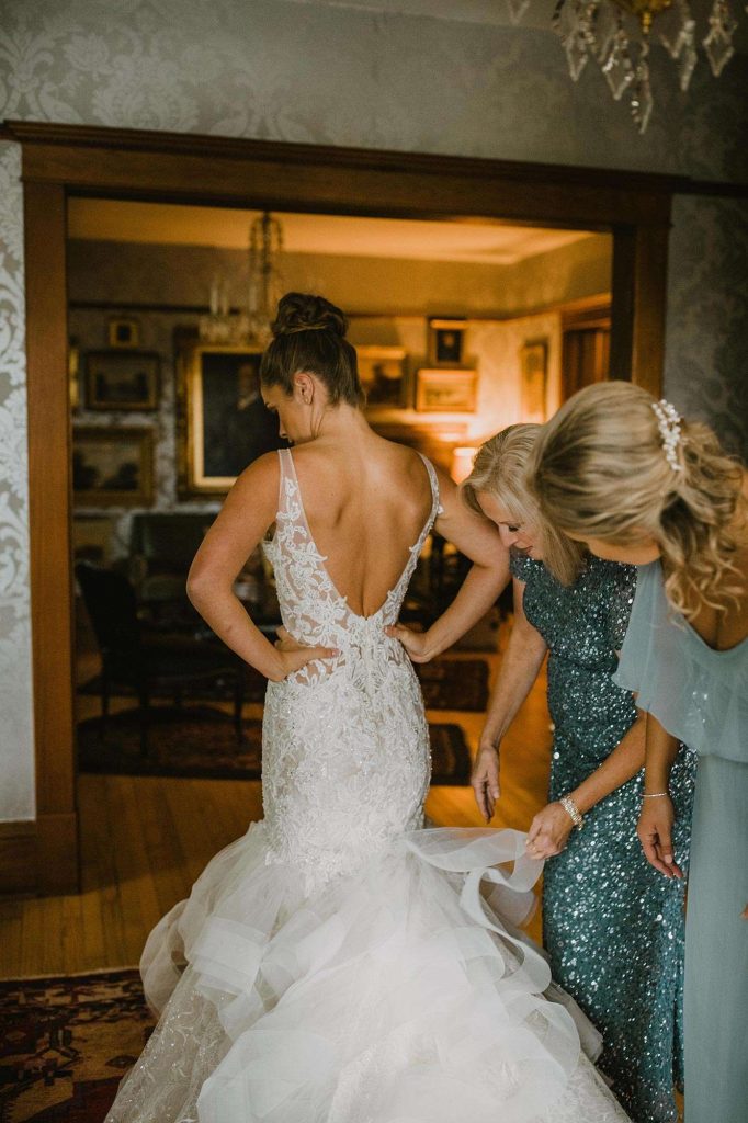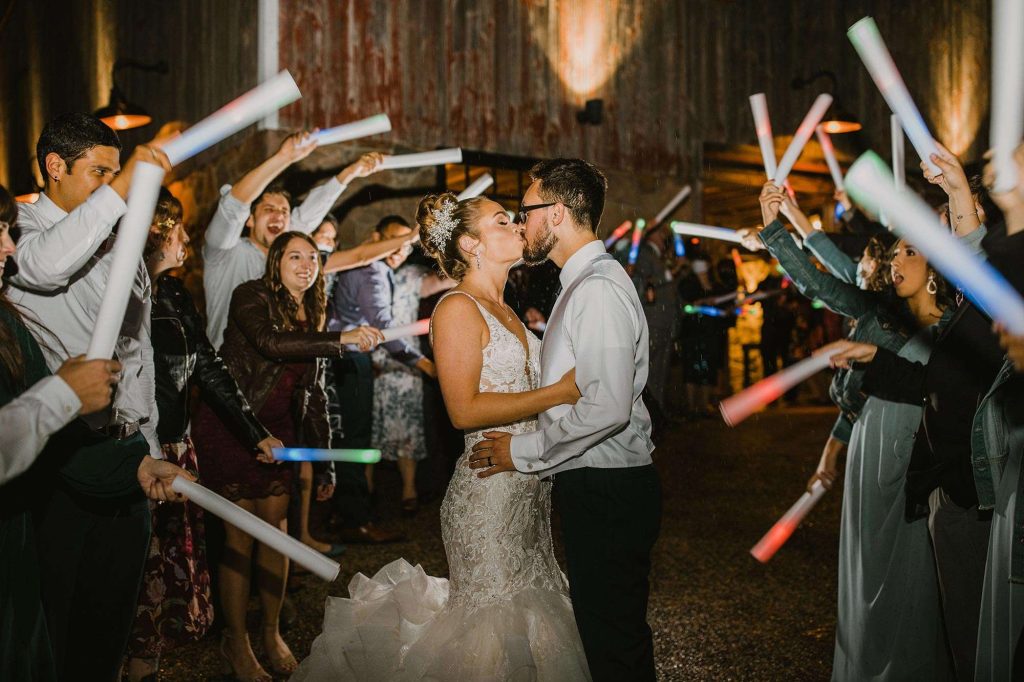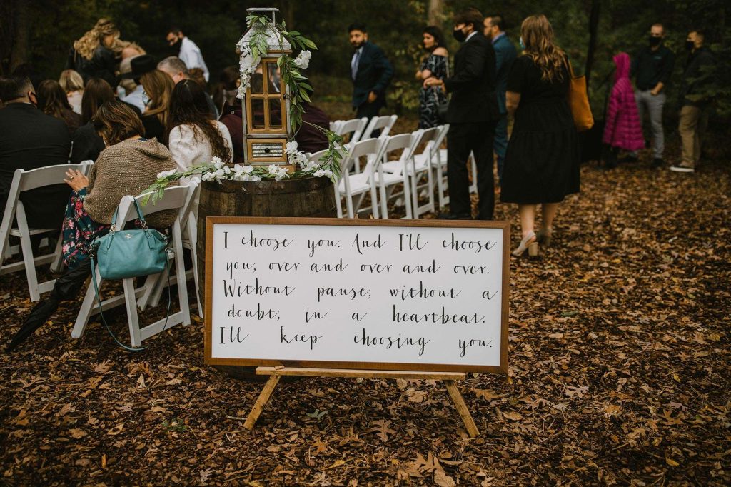 In addition to dresses being delayed, wedding planning was even more stressful than usual thanks to Covid. “We had to worry about safety in every aspect,” Jessica says. “We ordered medical masks for guests, sat people in groups we knew they’d be interacting with throughout the night, supplied hand sanitizer, and had to be flexible with planning as things were constantly evolving and changing.”